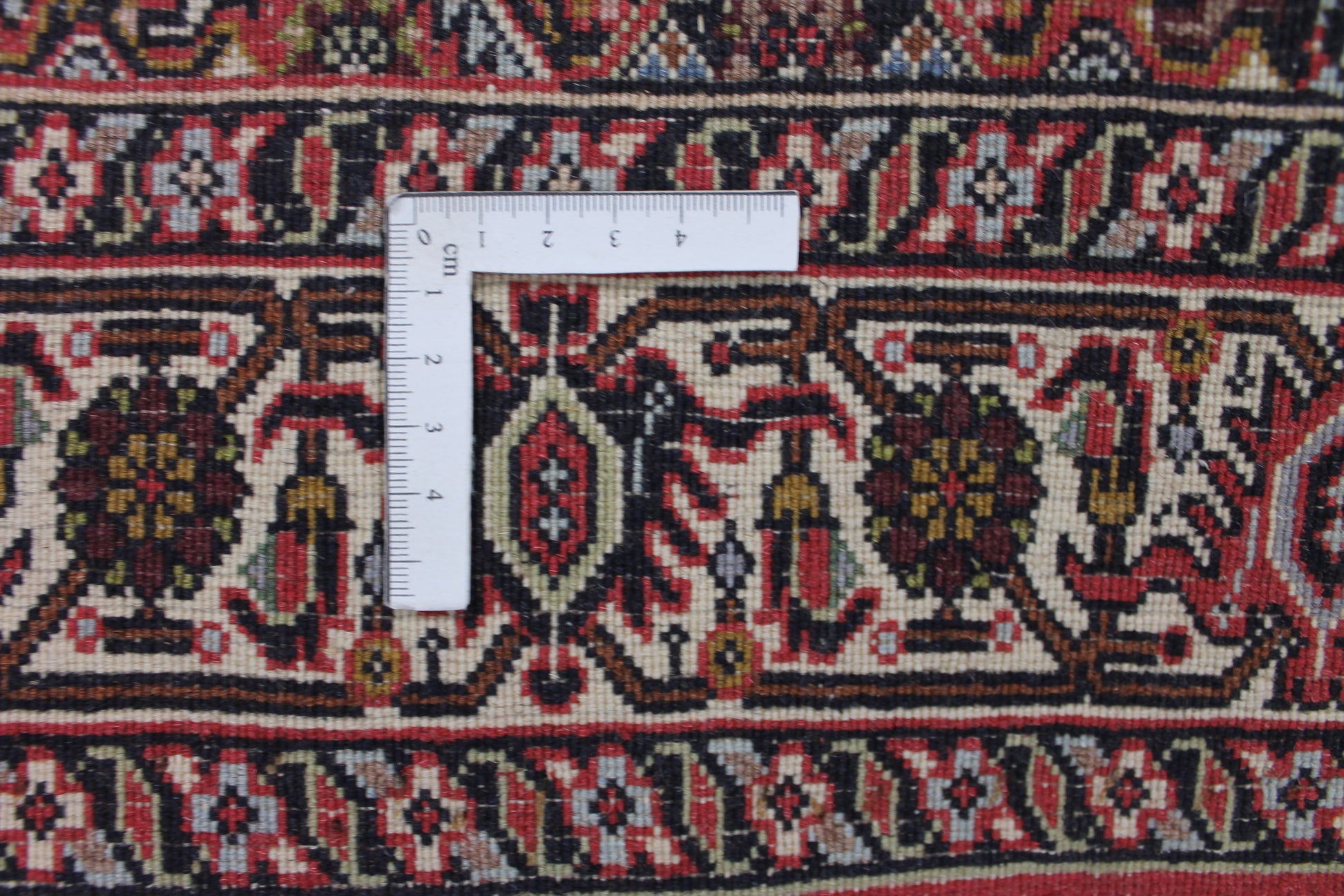Bei der Knüpfung wird der im Teppich quer verlaufende Schussfaden angefeuchtet und mit einem Eisenkamm fest eingeschlagen. Dadurch wird die Knüpfung so dicht und fest, dass Schmutzpartikel kaum die Chance haben, sich festzusetzen. Das ist eine kraftaufwendige Arbeit und daher werden Bidjar-Teppiche meist von Männern geknüpft.