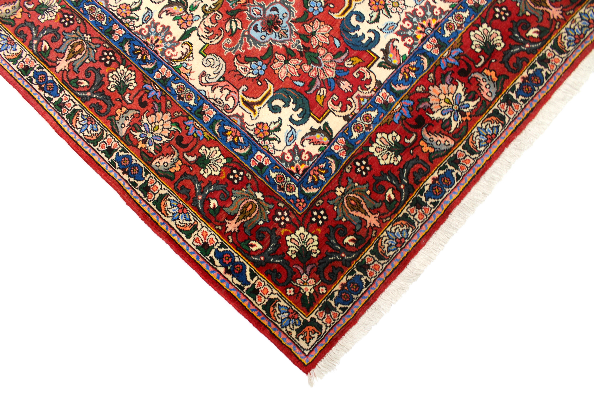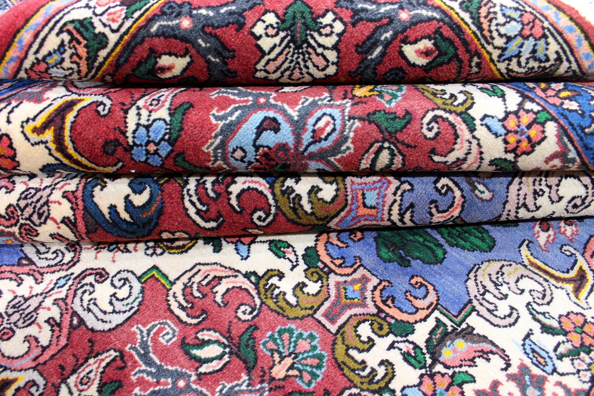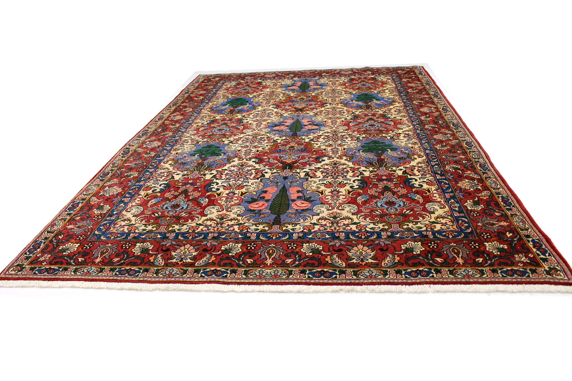 Dieser Bakhtiari Perserteppich wurde aus hochwertiger Schafwolle von Hand geknüpft. Sie ist das am häufigsten verwendete Material in der Teppichknüpfkunst und bringt eine Reihe beeindruckender Eigenschaften mit sich: