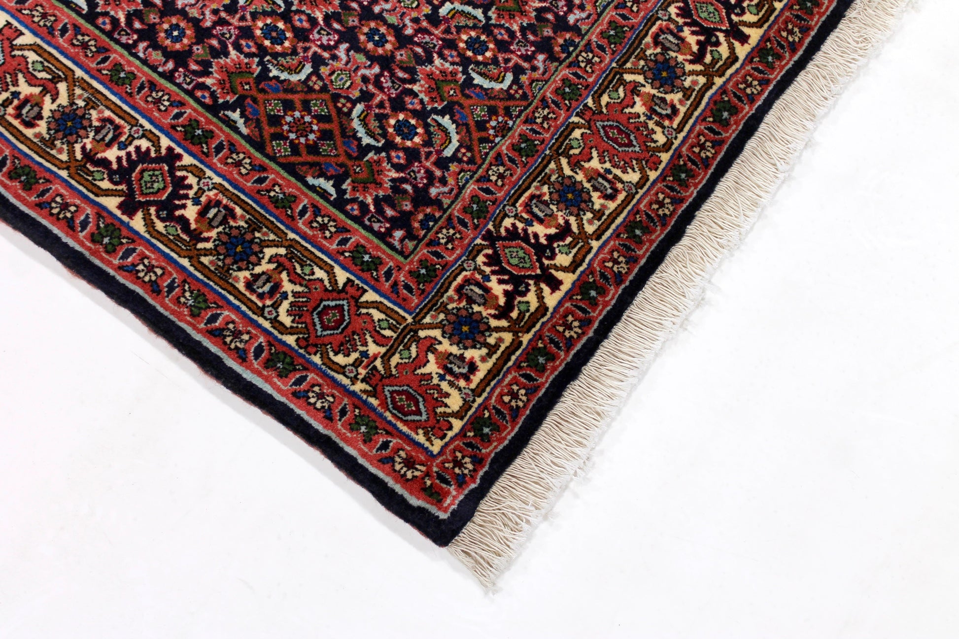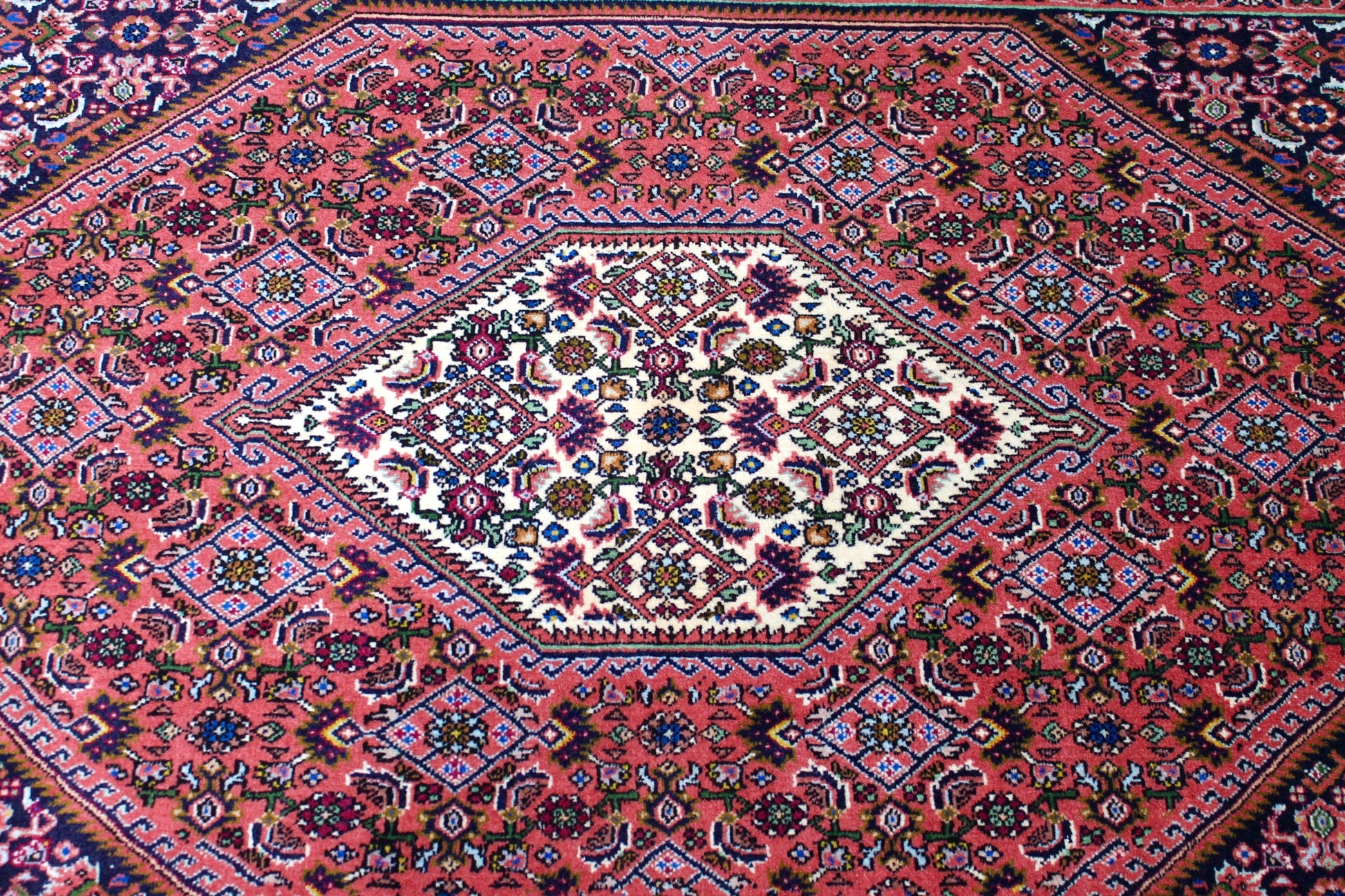 Bidjar-Teppiche stammen aus der gleichnamigen Region im Nordwesten Irans. Bidjar ist bekannt für seine außergewöhnliche Strapazierfähigkeit und dichten Flor. Diese Teppiche zeichnen sich durch eine hohe Knotendichte und ein charakteristisches Rauten- oder Medaillonmuster aus, das in kräftigen Blau- und Rottönen gehalten ist.