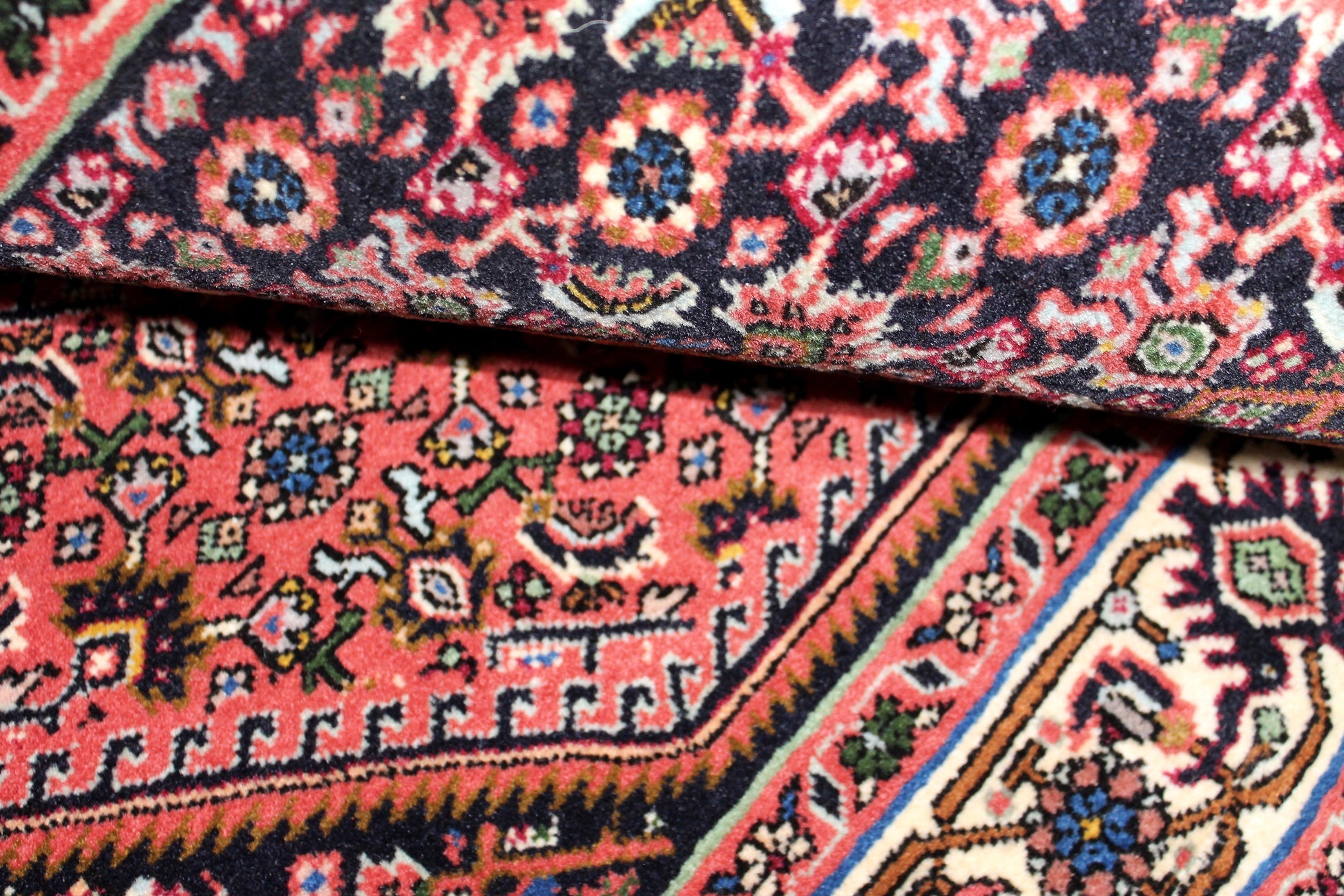 Ein Bidjar-Teppich wird traditionell aus hochwertiger Bergschafwolle handgeknüpft. Die Wolle stammt von Schafen, die in den kühlen Höhenlagen der Zagrosgebirgsketten weiden, und bietet dadurch eine besonders feste, widerstandsfähige Struktur.