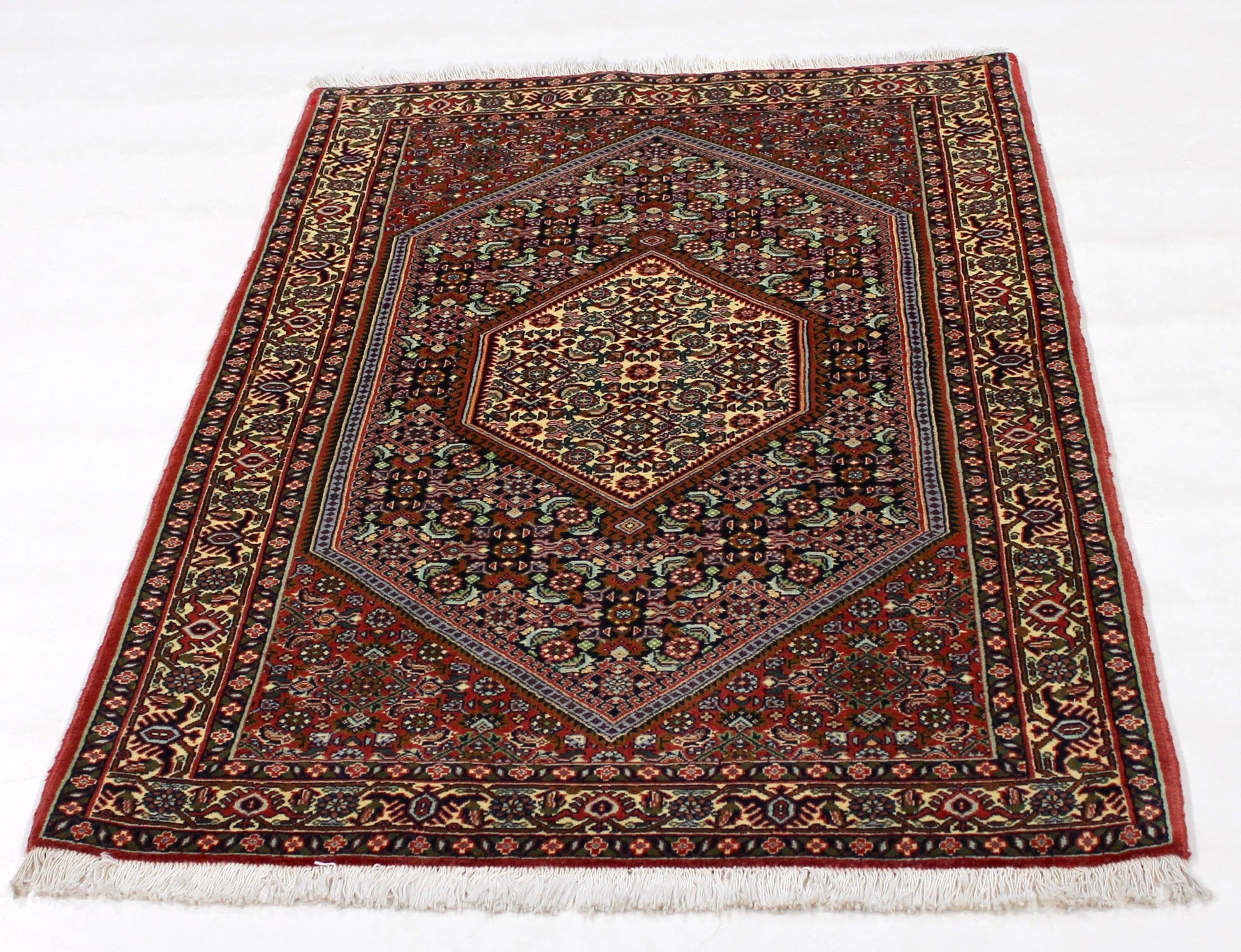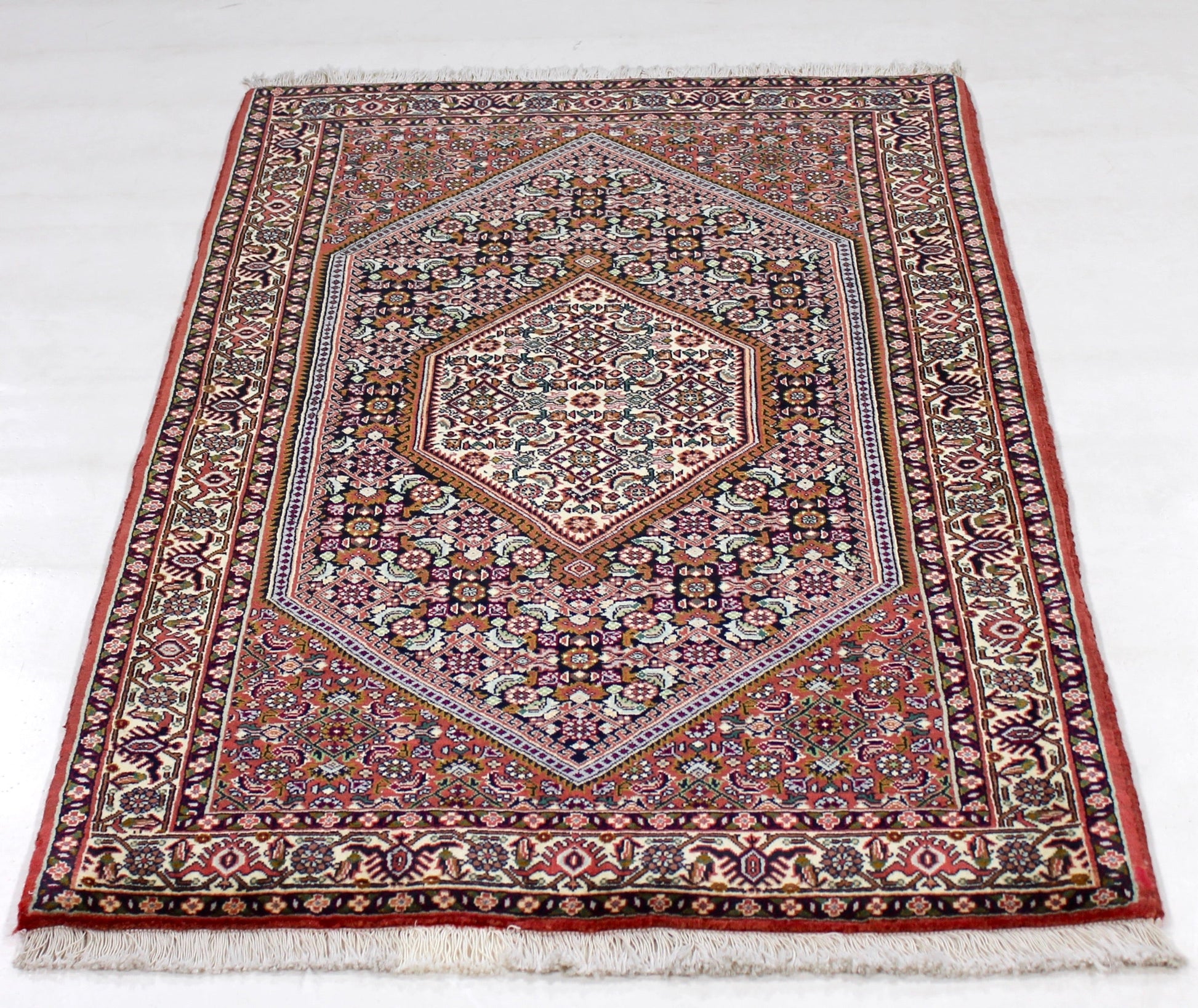 Bidjar-Teppiche stammen aus der gleichnamigen Region im Nordwesten Irans. Bidjar ist bekannt für seine außergewöhnliche Strapazierfähigkeit und dichten Flor. Diese Teppiche zeichnen sich durch eine hohe Knotendichte und ein charakteristisches Rauten- oder Medaillonmuster aus, das in kräftigen Blau- und Rottönen gehalten ist.