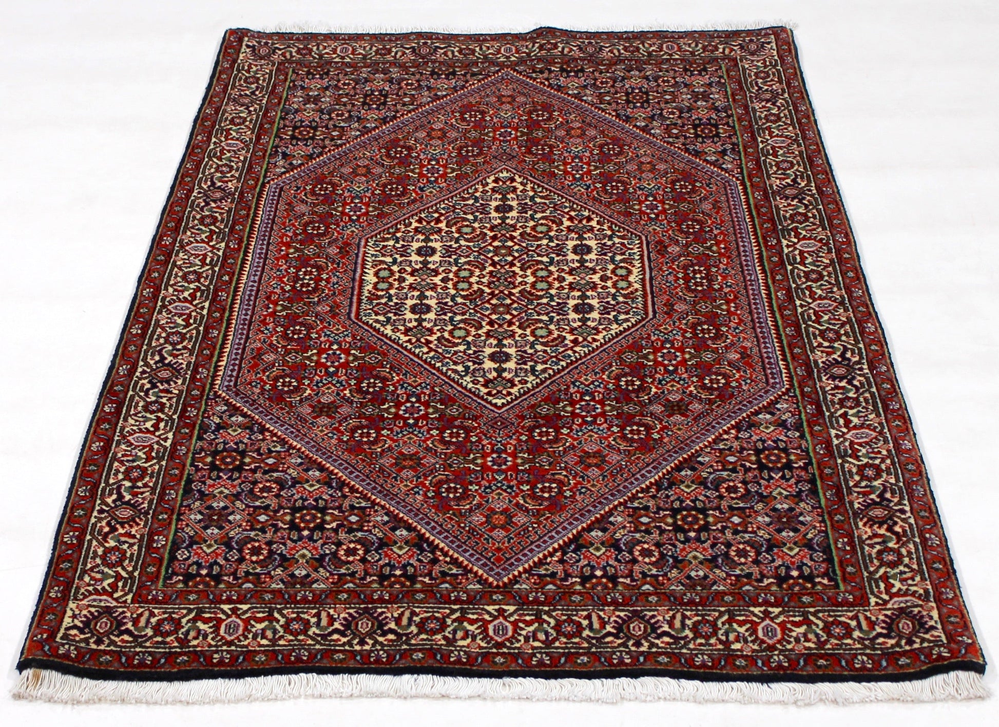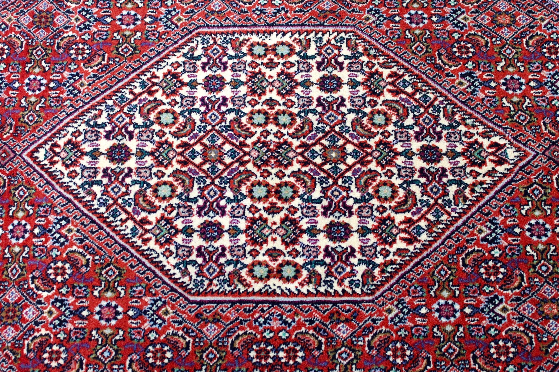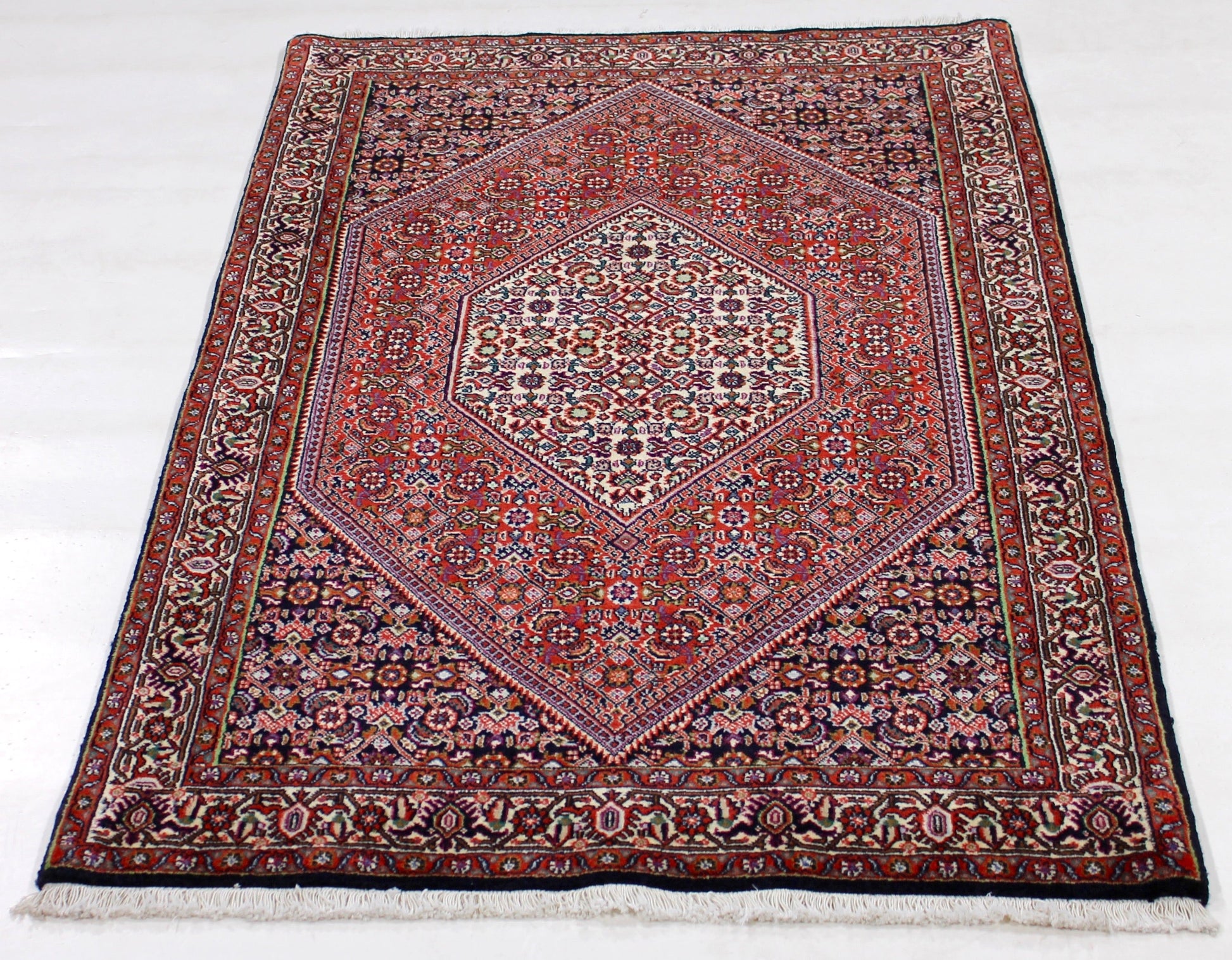 Bidjar-Teppiche stammen aus der gleichnamigen Region im Nordwesten Irans. Bidjar ist bekannt für seine außergewöhnliche Strapazierfähigkeit und dichten Flor. Diese Teppiche zeichnen sich durch eine hohe Knotendichte und ein charakteristisches Rauten- oder Medaillonmuster aus, das in kräftigen Blau- und Rottönen gehalten ist.