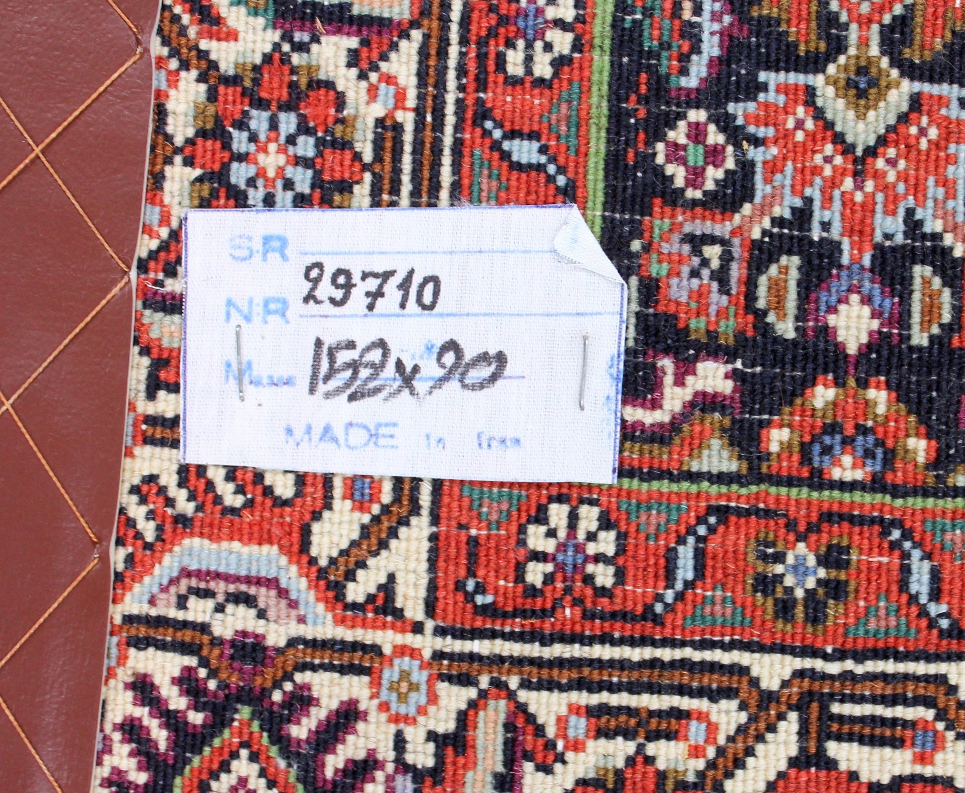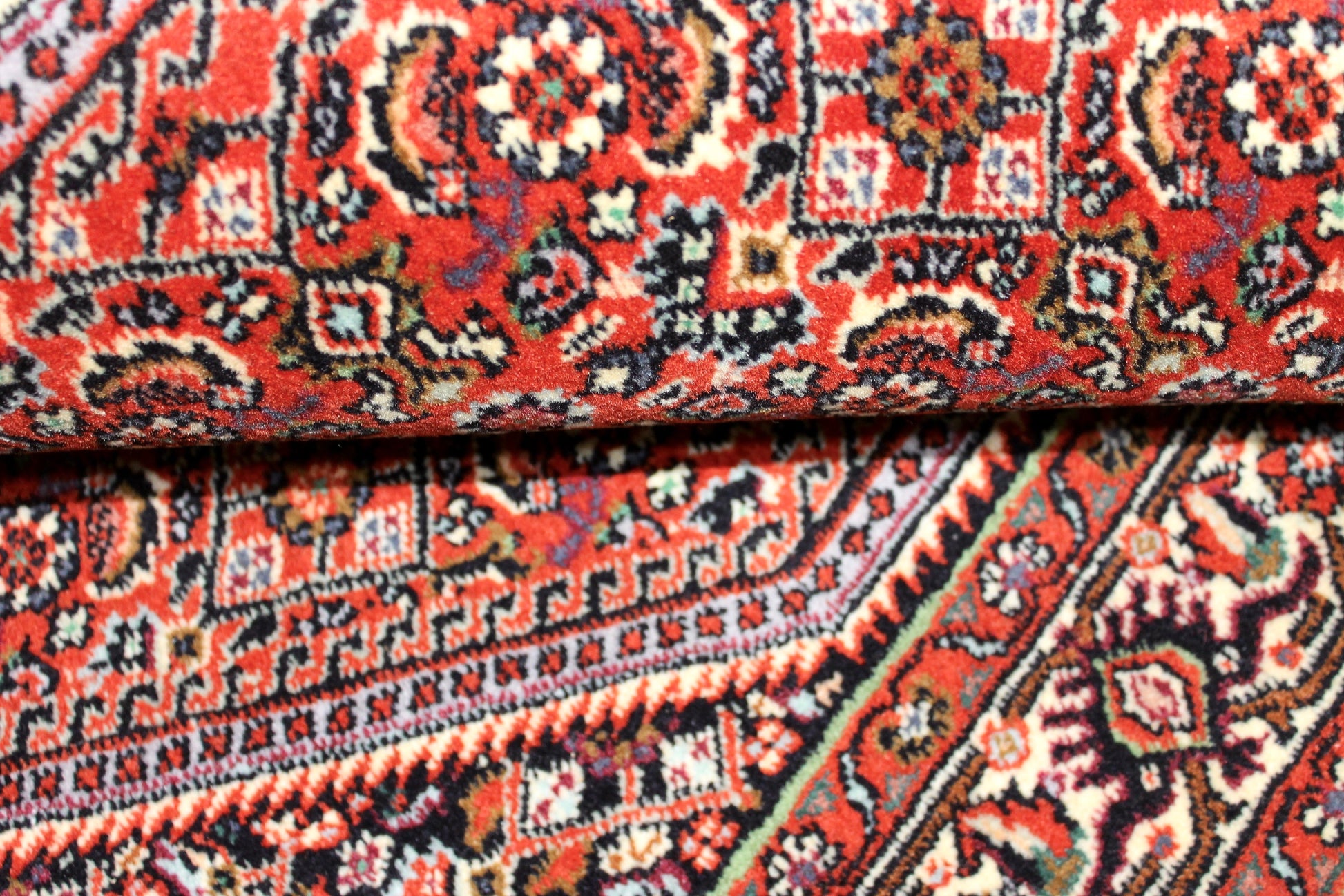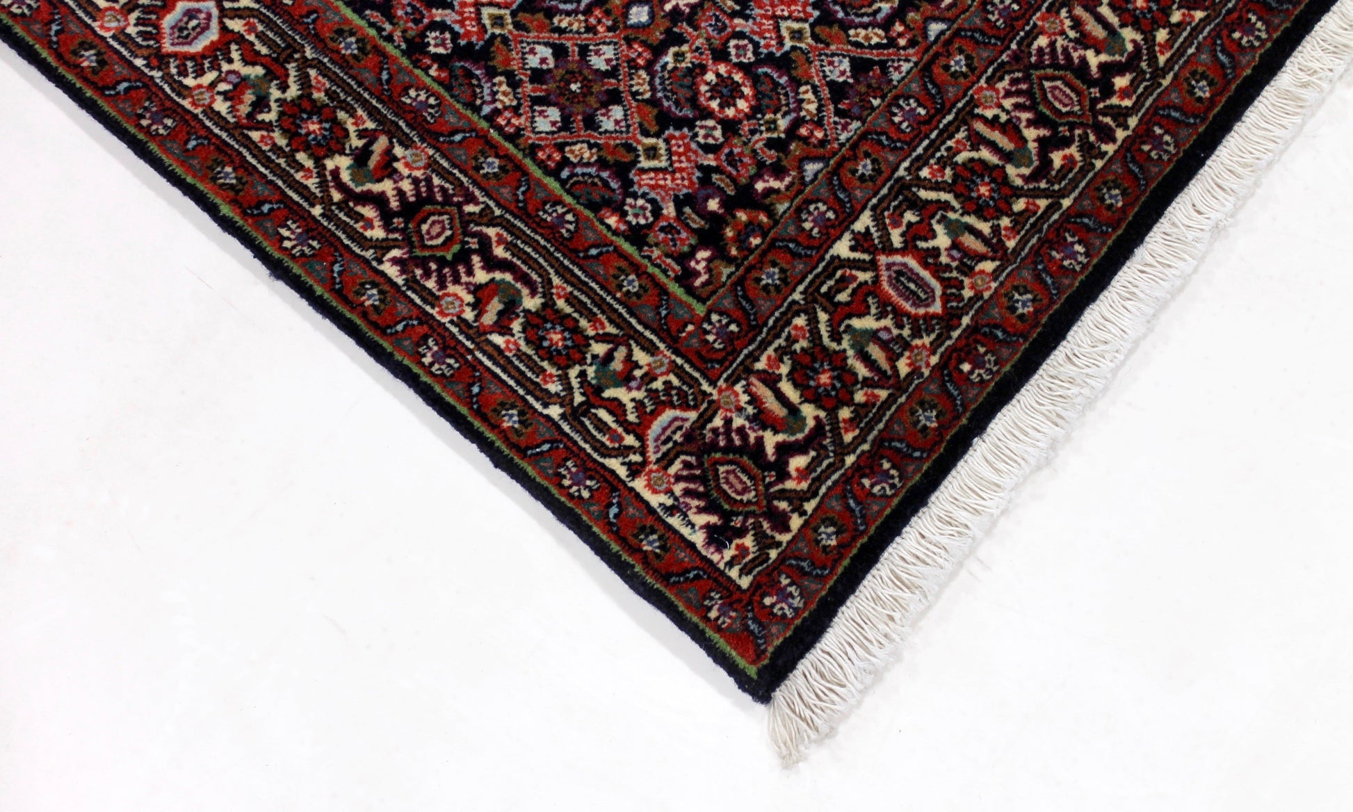 Bidjar-Teppiche stammen aus der gleichnamigen Region im Nordwesten Irans. Bidjar ist bekannt für seine außergewöhnliche Strapazierfähigkeit und dichten Flor. Diese Teppiche zeichnen sich durch eine hohe Knotendichte und ein charakteristisches Rauten- oder Medaillonmuster aus, das in kräftigen Blau- und Rottönen gehalten ist.