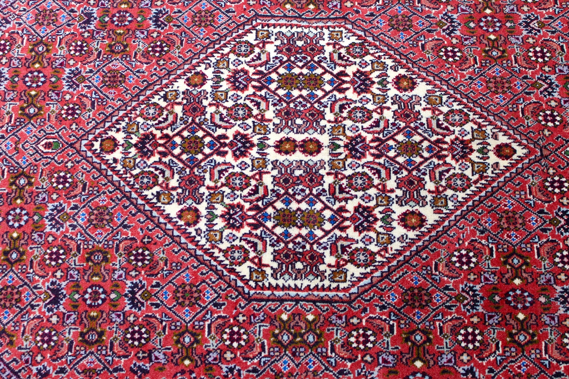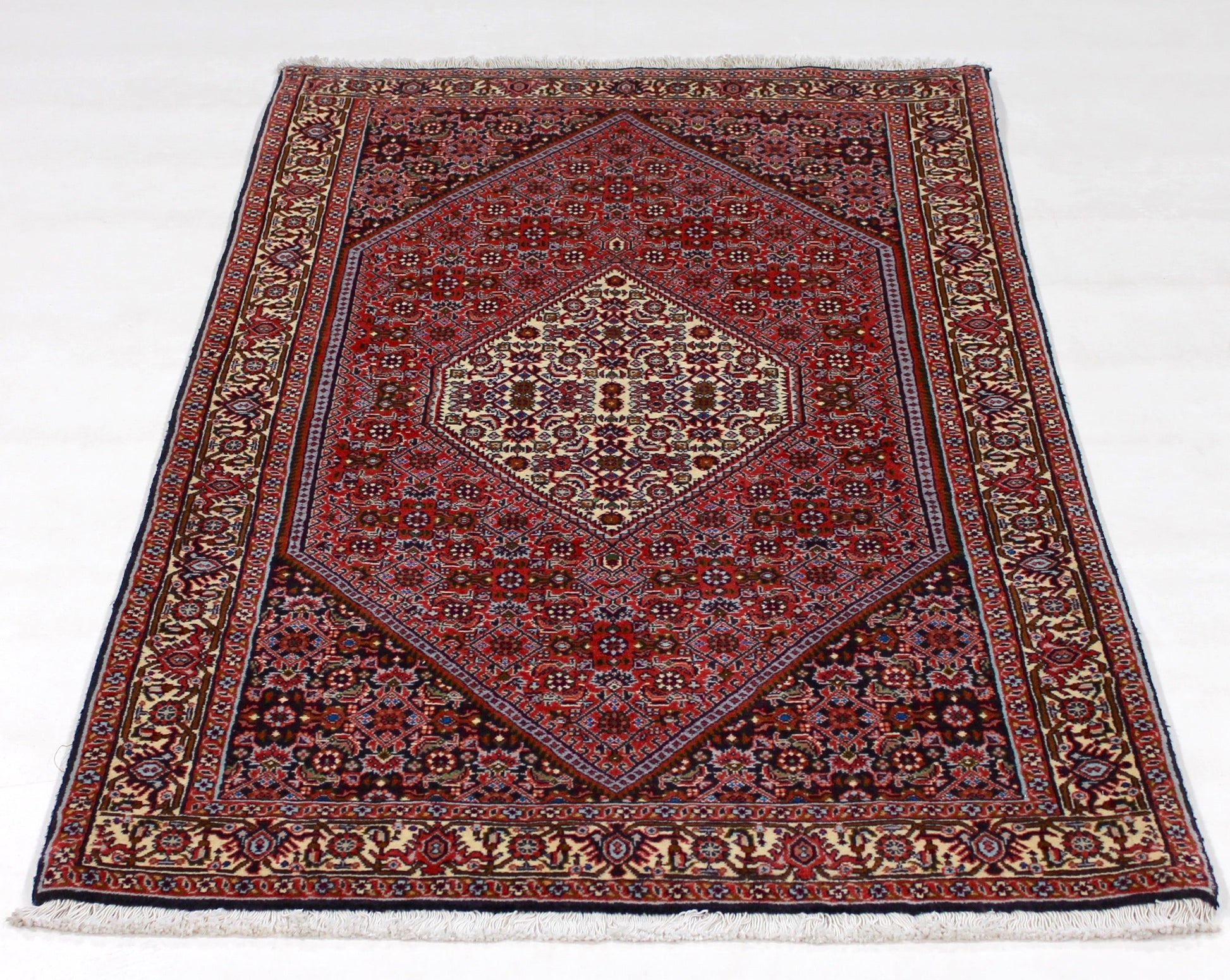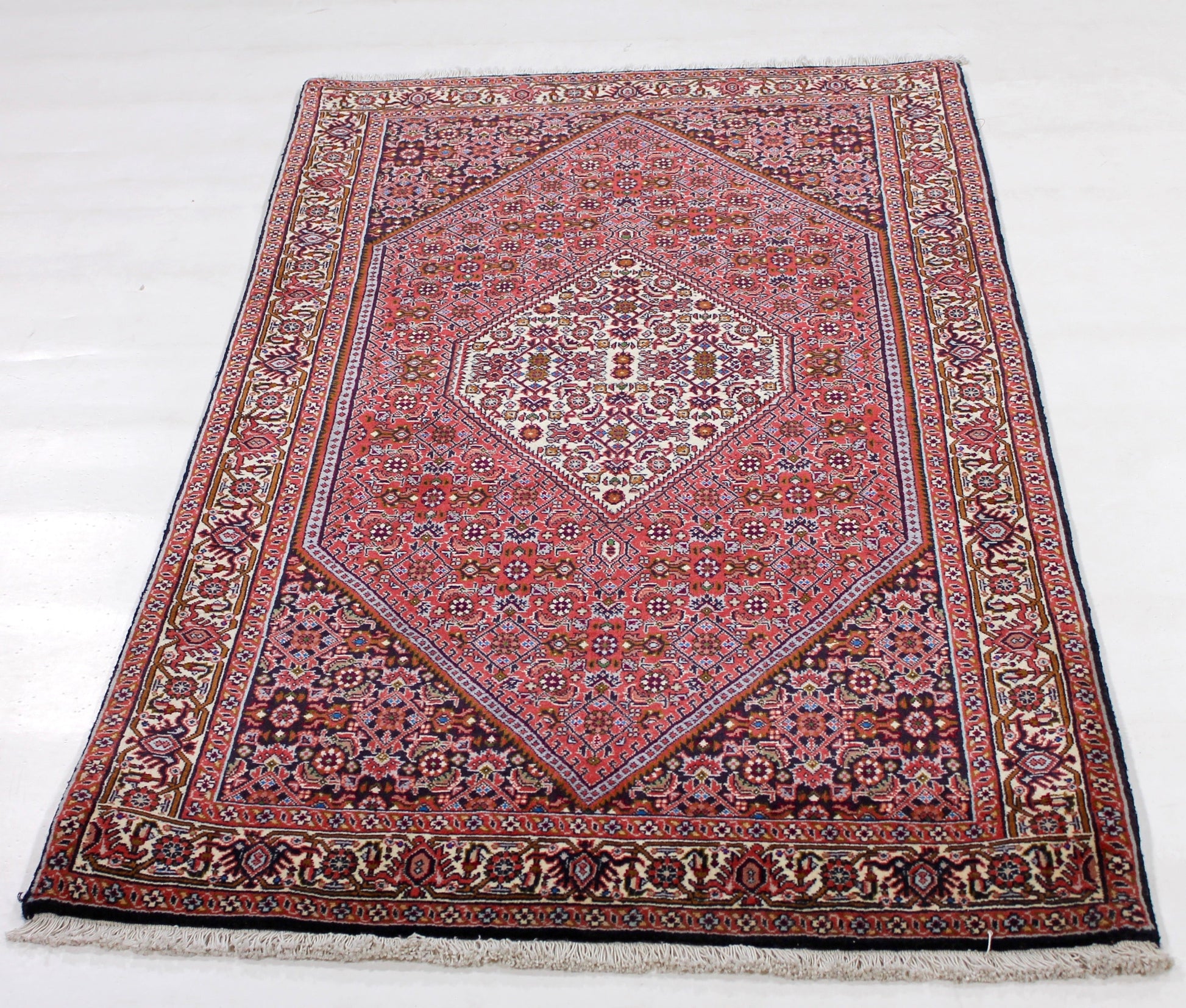 Bidjar-Teppiche stammen aus der gleichnamigen Region im Nordwesten Irans. Bidjar ist bekannt für seine außergewöhnliche Strapazierfähigkeit und dichten Flor. Diese Teppiche zeichnen sich durch eine hohe Knotendichte und ein charakteristisches Rauten- oder Medaillonmuster aus, das in kräftigen Blau- und Rottönen gehalten ist.