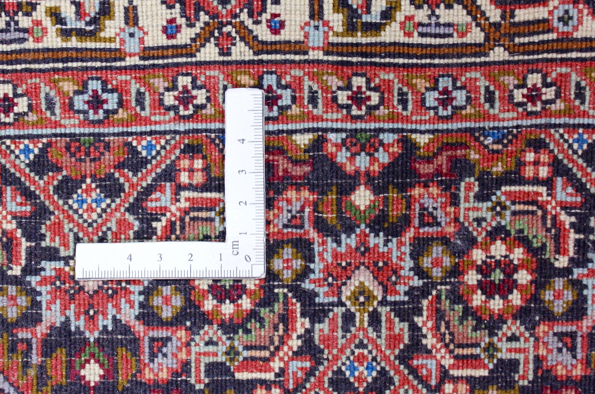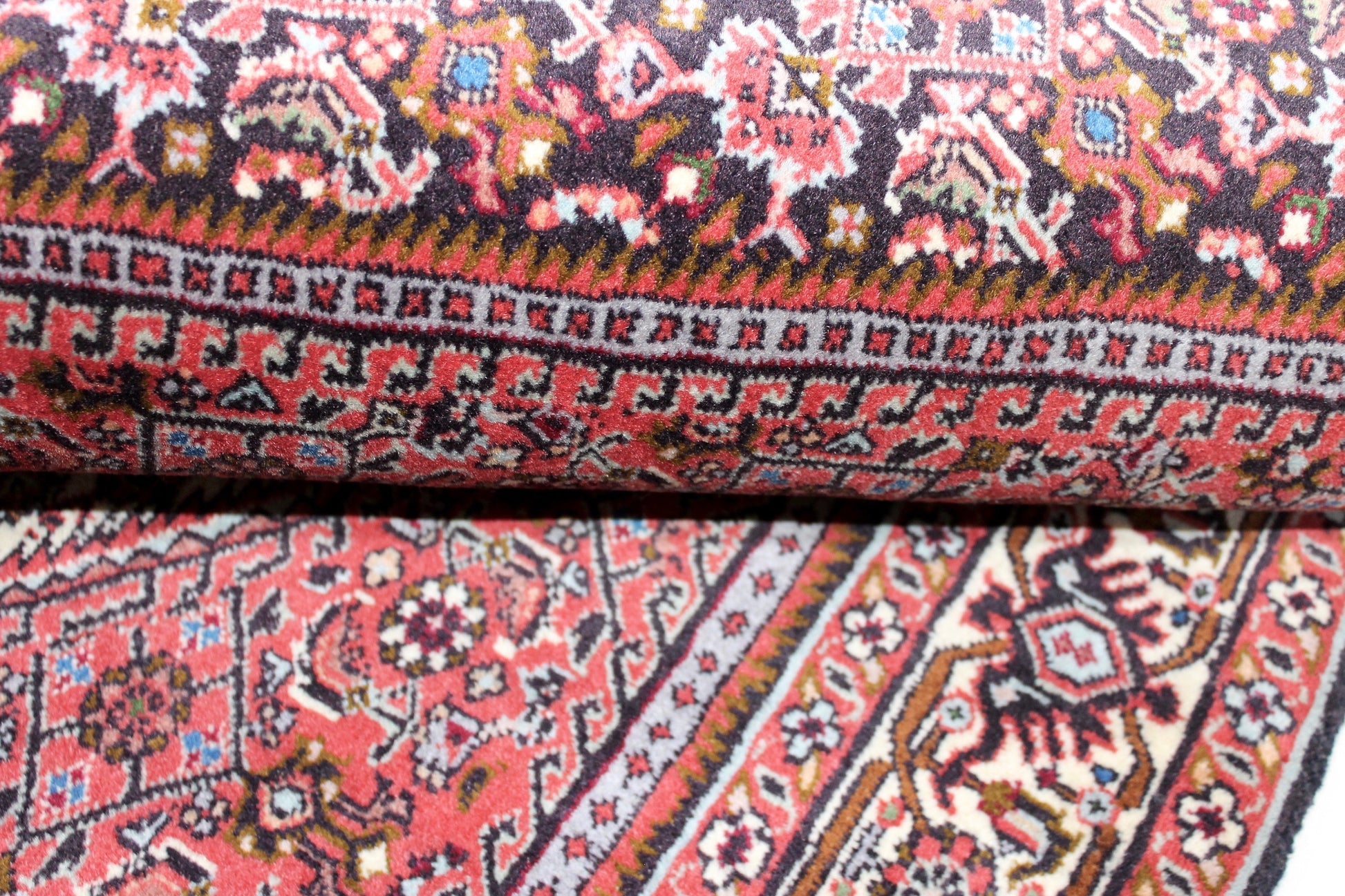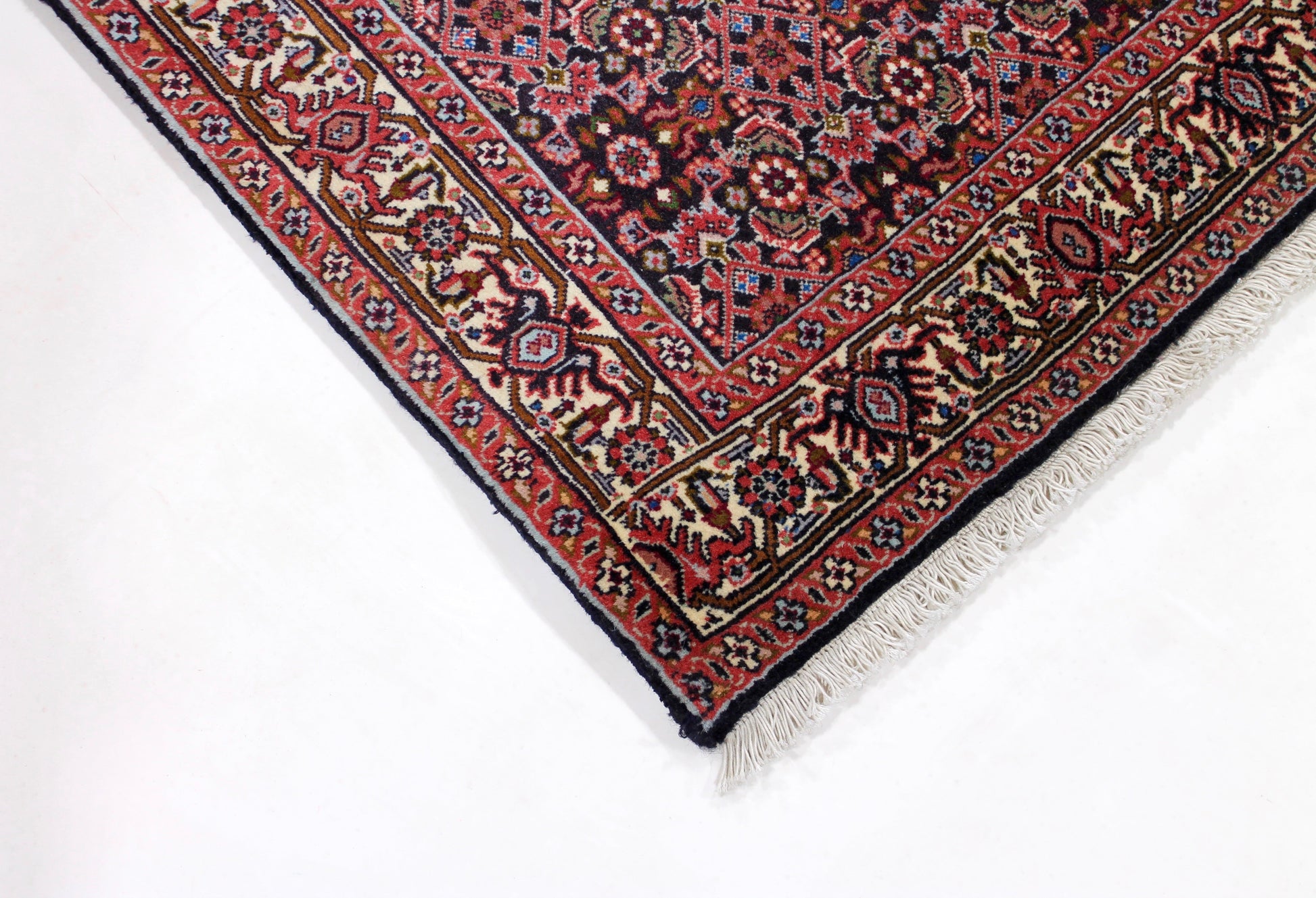 Bidjar-Teppiche stammen aus der gleichnamigen Region im Nordwesten Irans. Bidjar ist bekannt für seine außergewöhnliche Strapazierfähigkeit und dichten Flor. Diese Teppiche zeichnen sich durch eine hohe Knotendichte und ein charakteristisches Rauten- oder Medaillonmuster aus, das in kräftigen Blau- und Rottönen gehalten ist.