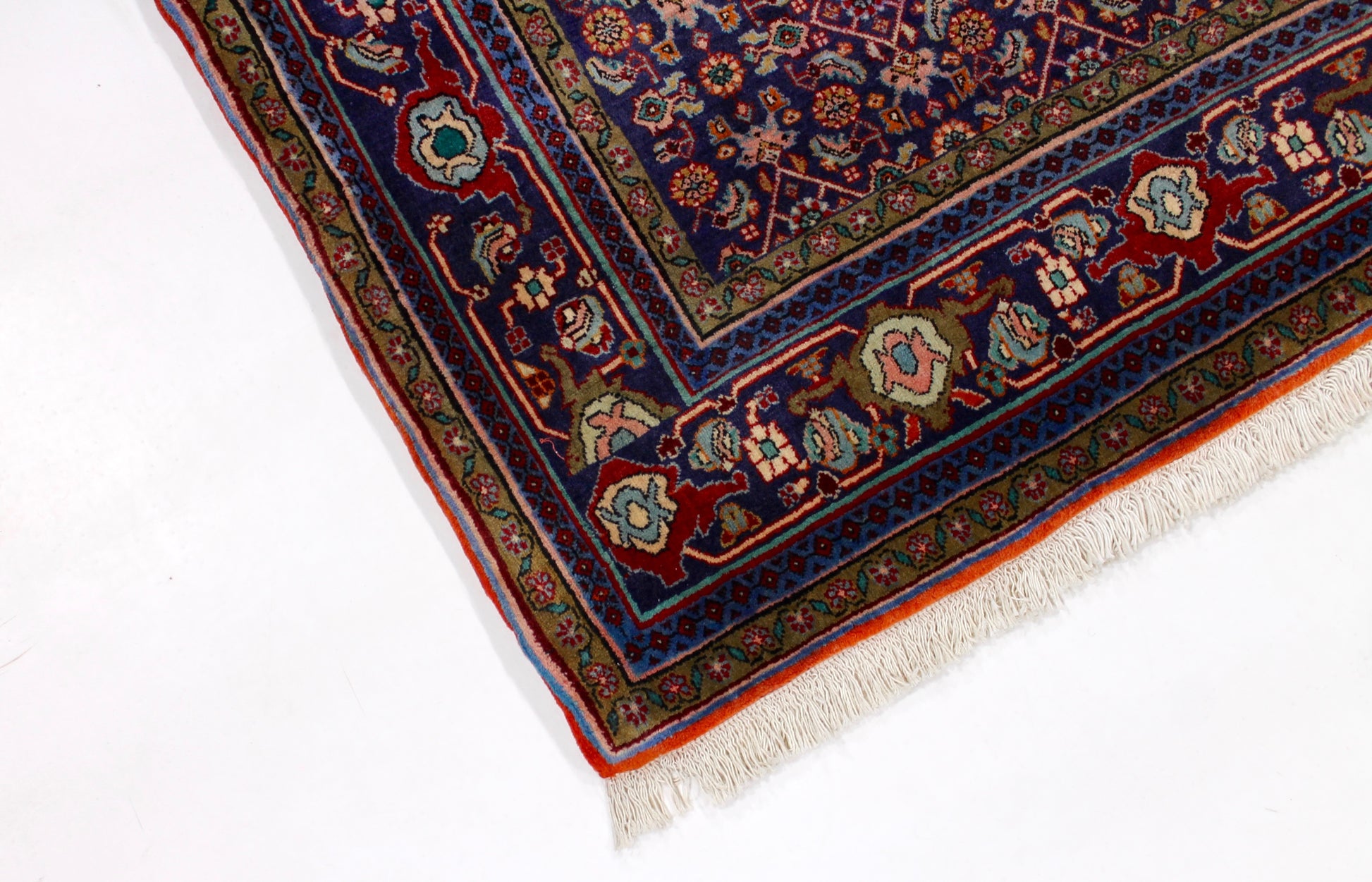Dieser Perserteppich aus Bidjar wurde aus hochwertiger Schafwolle von Hand geknüpft. Sie ist das am häufigsten verwendete Material in der Teppichknüpfkunst und bringt eine Reihe beeindruckender Eigenschaften mit sich: