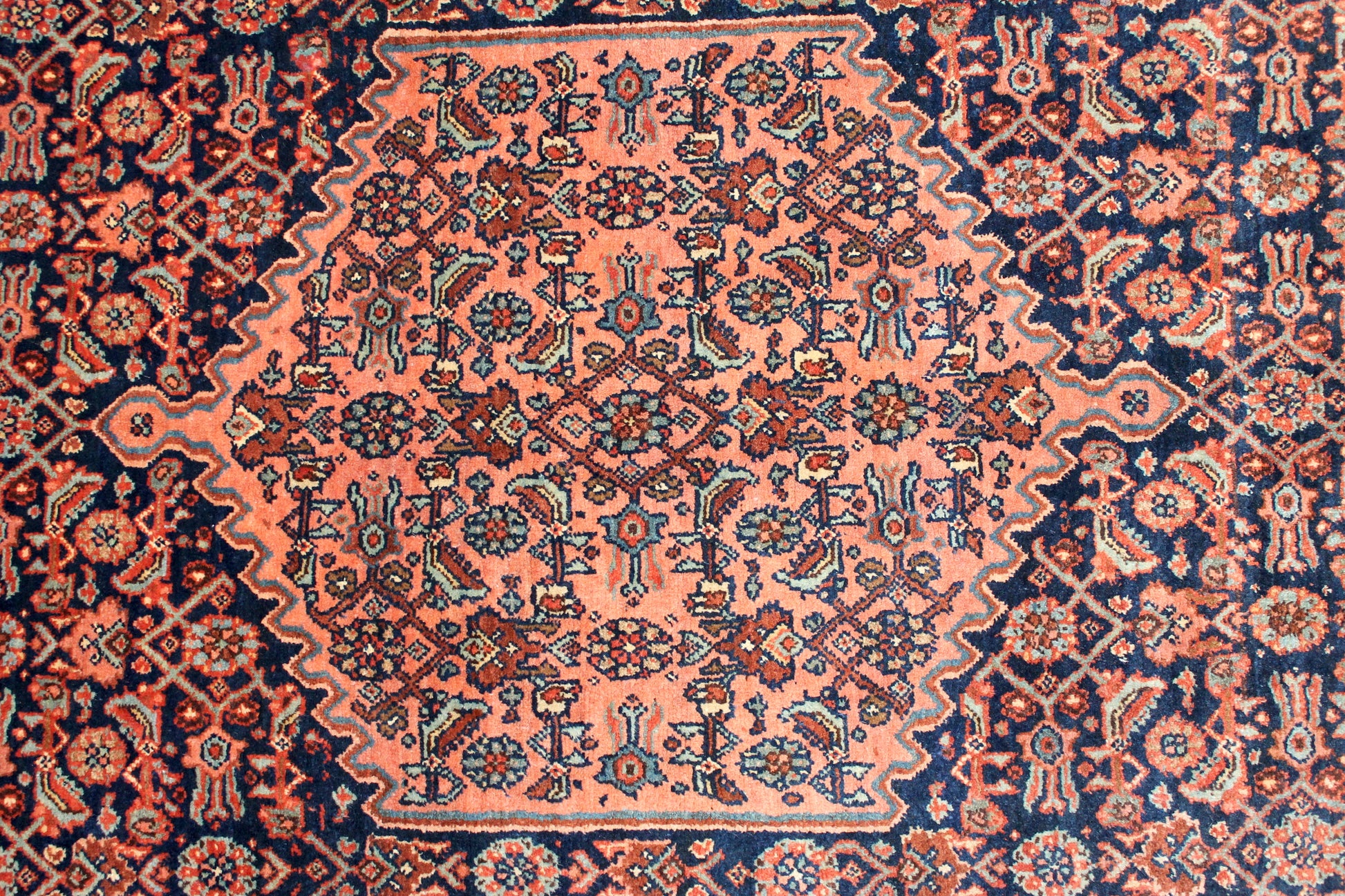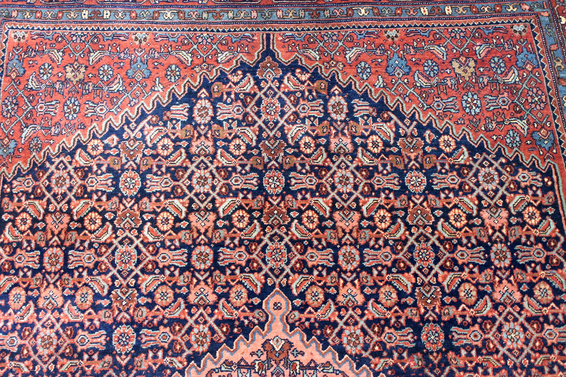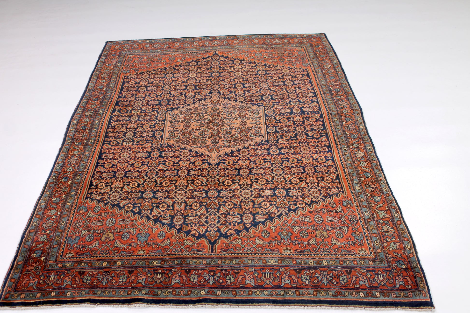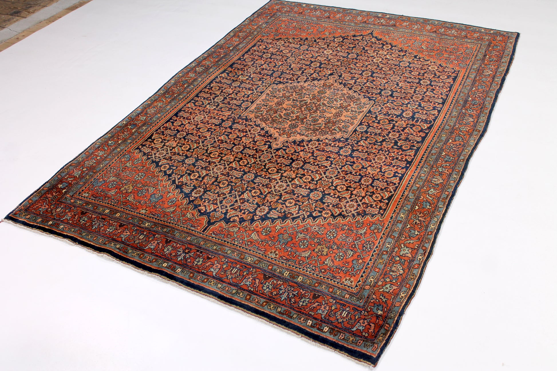 Dieser Perserteppich aus Bidjar wurde aus hochwertiger Schafwolle von Hand geknüpft. Sie ist das am häufigsten verwendete Material in der Teppichknüpfkunst und bringt eine Reihe beeindruckender Eigenschaften mit sich: