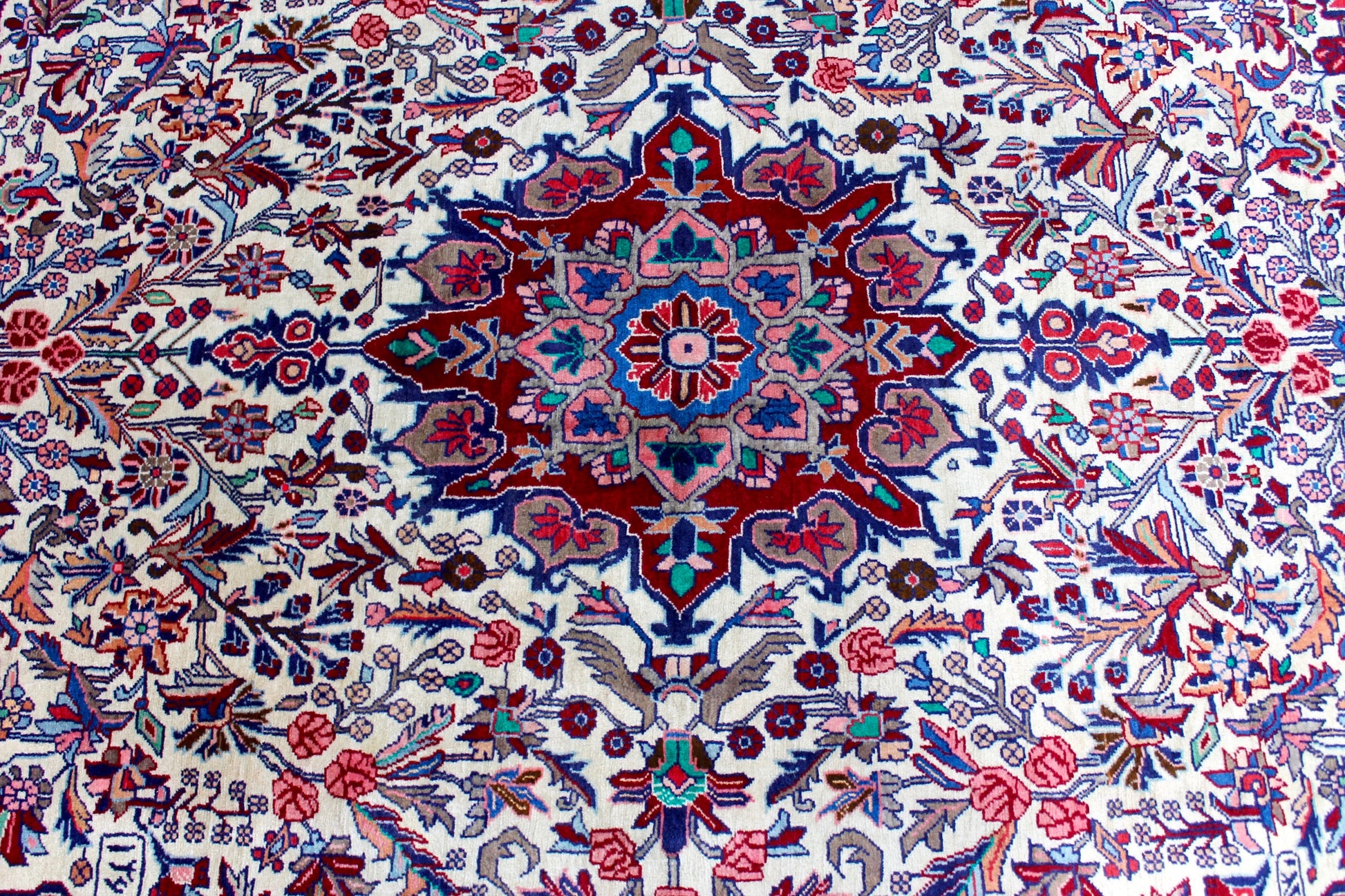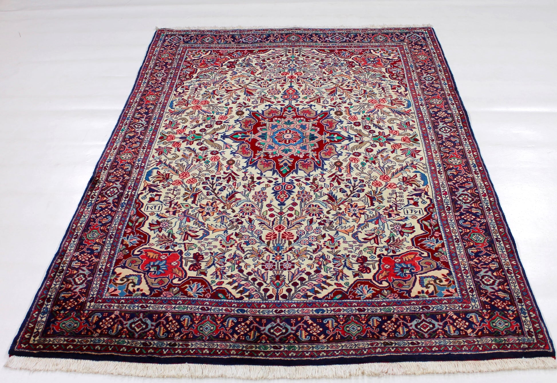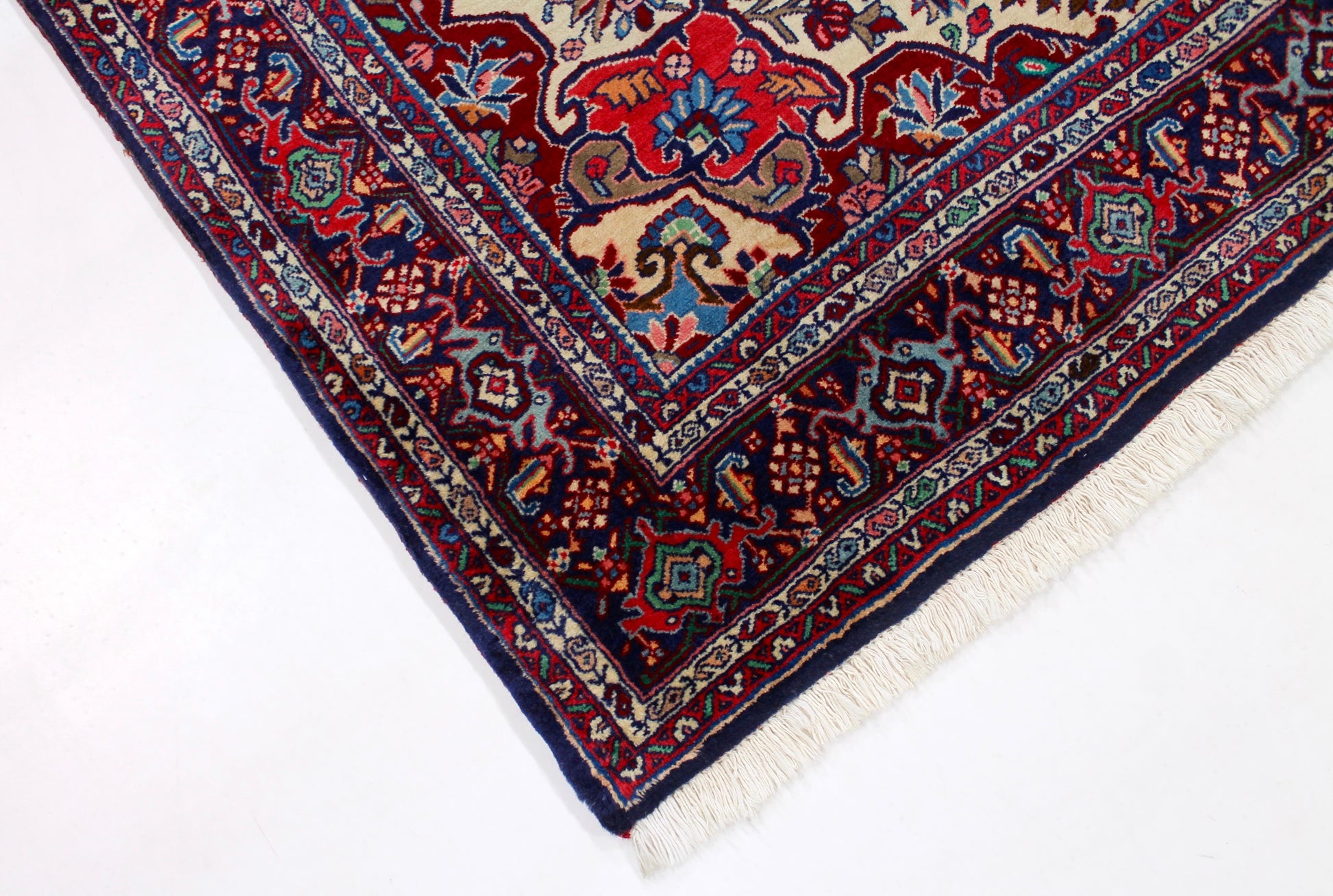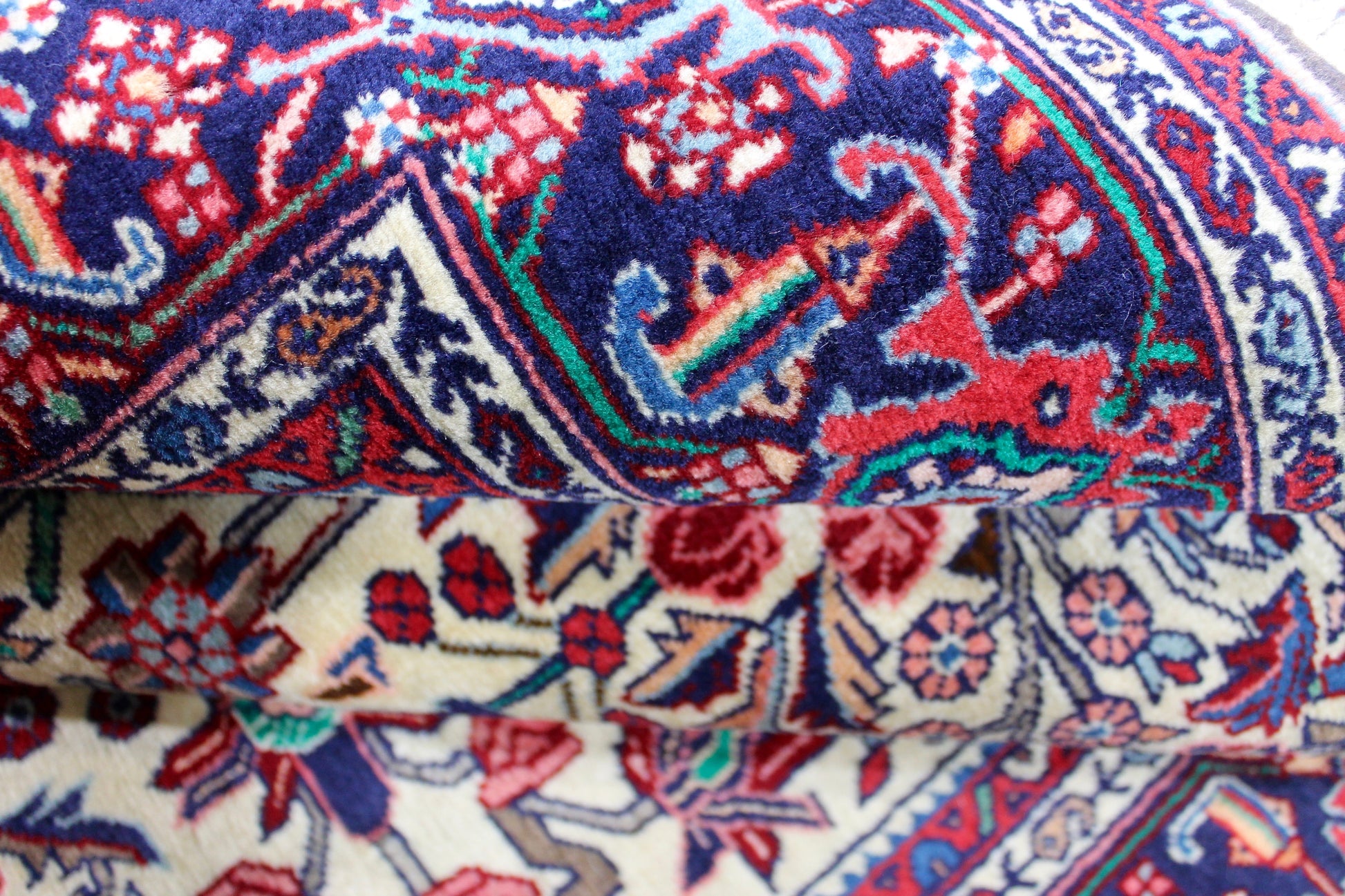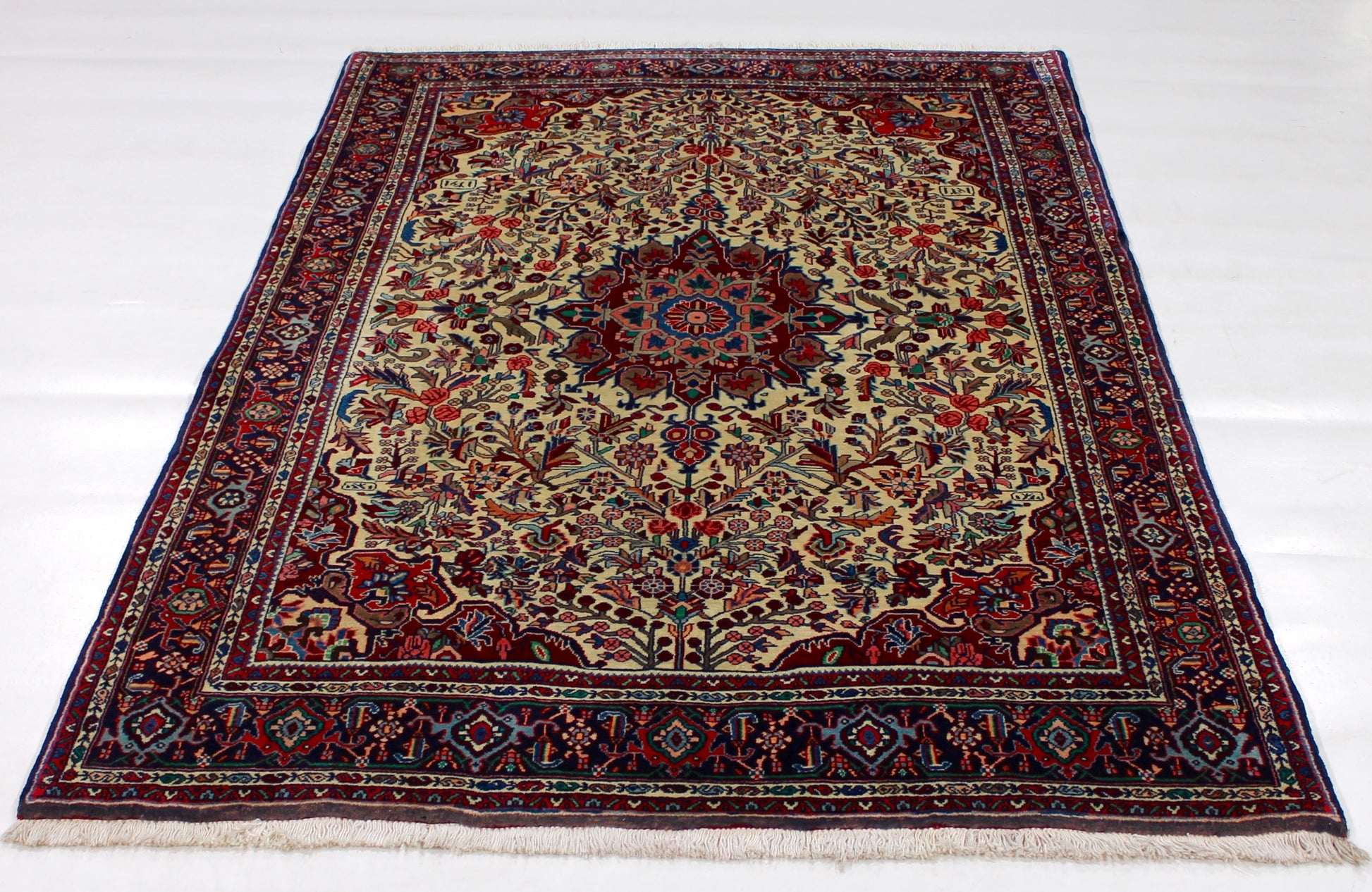 Dieser Perserteppich aus Bidjar wurde aus hochwertiger Schafwolle von Hand geknüpft. Sie ist das am häufigsten verwendete Material in der Teppichknüpfkunst und bringt eine Reihe beeindruckender Eigenschaften mit sich: