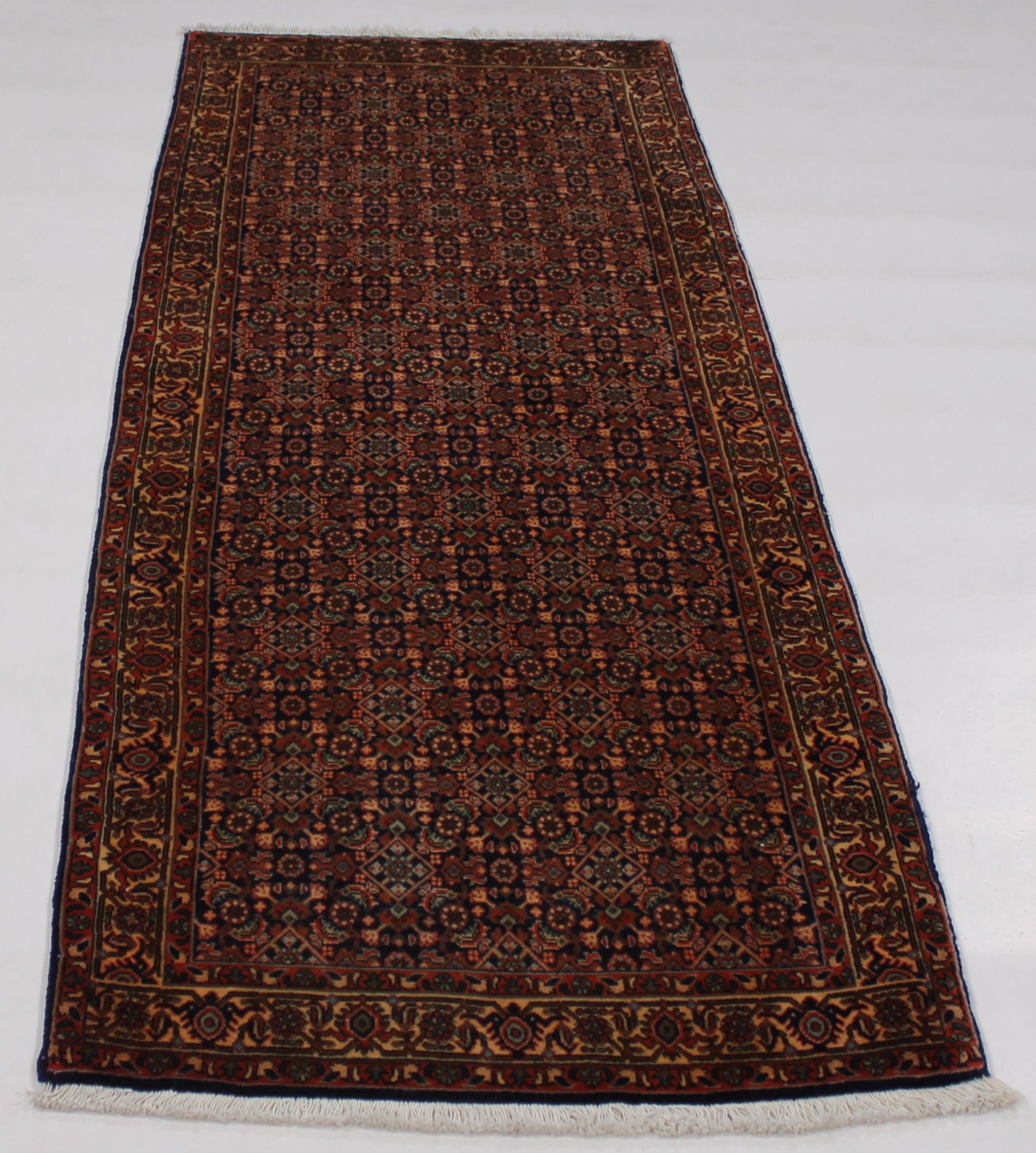 Bei der Knüpfung wird der im Teppich quer verlaufende Schussfaden angefeuchtet und mit einem Eisenkamm fest eingeschlagen. Dadurch wird die Knüpfung so dicht und fest, dass Schmutzpartikel kaum die Chance haben, sich festzusetzen. Das ist eine kraftaufwendige Arbeit und daher werden Bidjar-Teppiche meist von Männern geknüpft.
