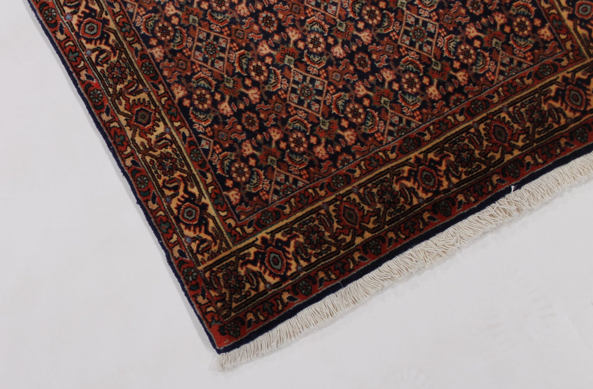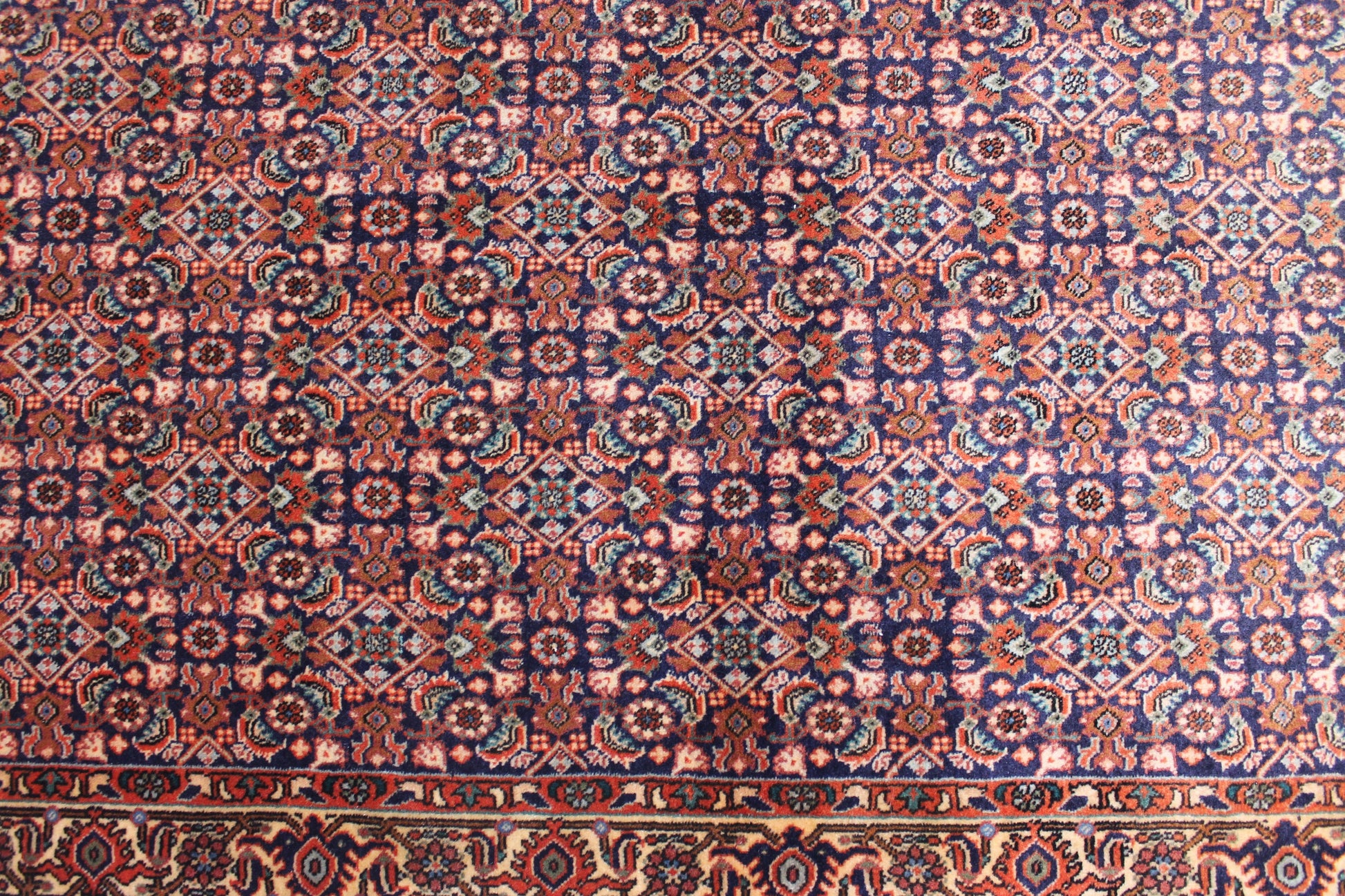 Dieser Perserteppich aus Bidjar wurde aus hochwertiger Schafwolle von Hand geknüpft. Sie ist das am häufigsten verwendete Material in der Teppichknüpfkunst und bringt eine Reihe beeindruckender Eigenschaften mit sich: