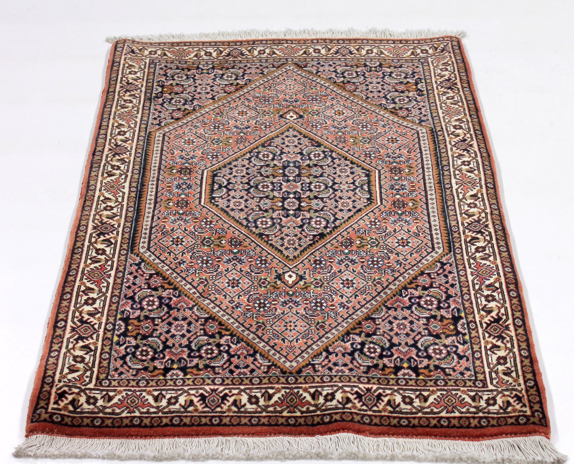 Bei der Knüpfung wird der im Teppich quer verlaufende Schussfaden angefeuchtet und mit einem Eisenkamm fest eingeschlagen. Dadurch wird die Knüpfung so dicht und fest, dass Schmutzpartikel kaum die Chance haben, sich festzusetzen. Das ist eine kraftaufwendige Arbeit und daher werden Bidjar-Teppiche meist von Männern geknüpft.