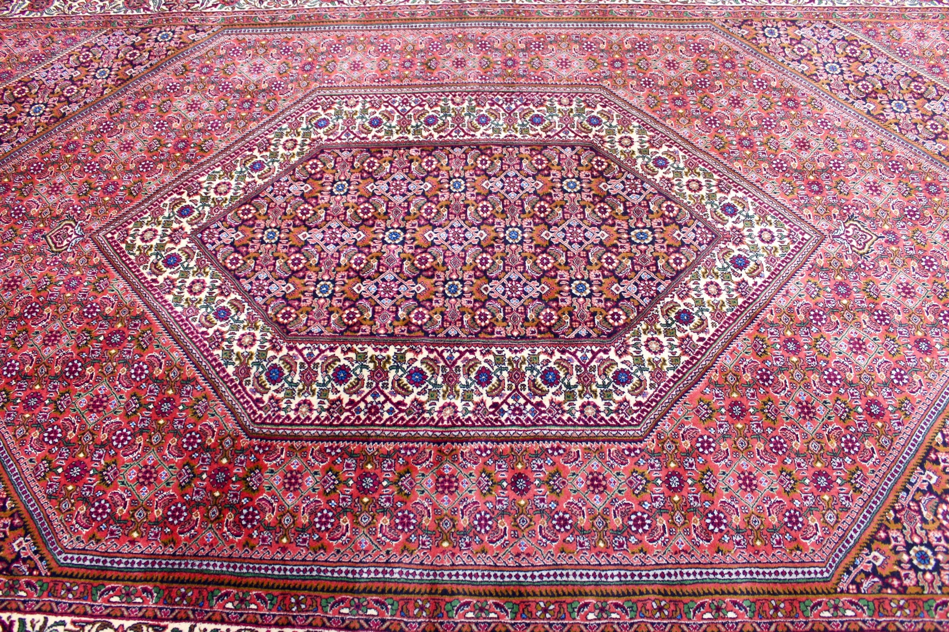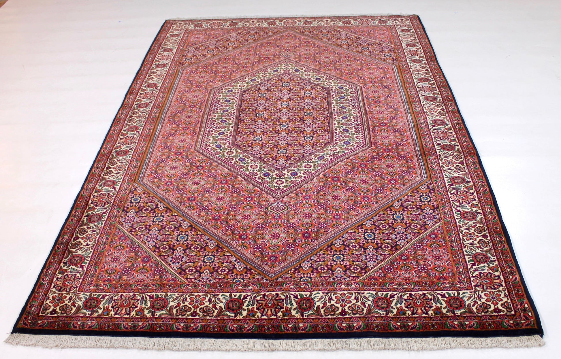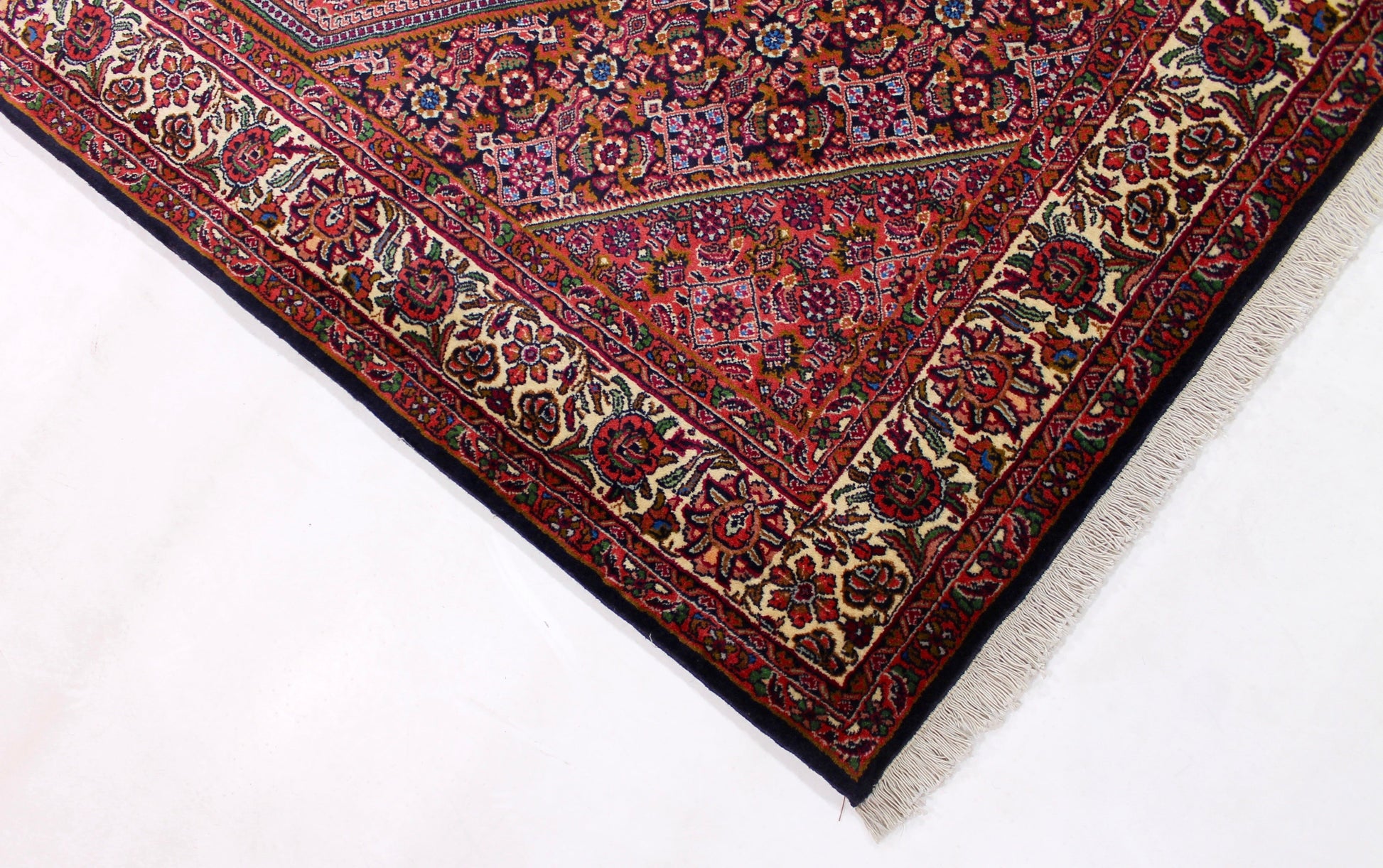 Bidjar-Teppiche stammen aus der gleichnamigen Region im Nordwesten Irans. Bidjar ist bekannt für seine außergewöhnliche Strapazierfähigkeit und dichten Flor. Diese Teppiche zeichnen sich durch eine hohe Knotendichte und ein charakteristisches Rauten- oder Medaillonmuster aus, das in kräftigen Blau- und Rottönen gehalten ist.