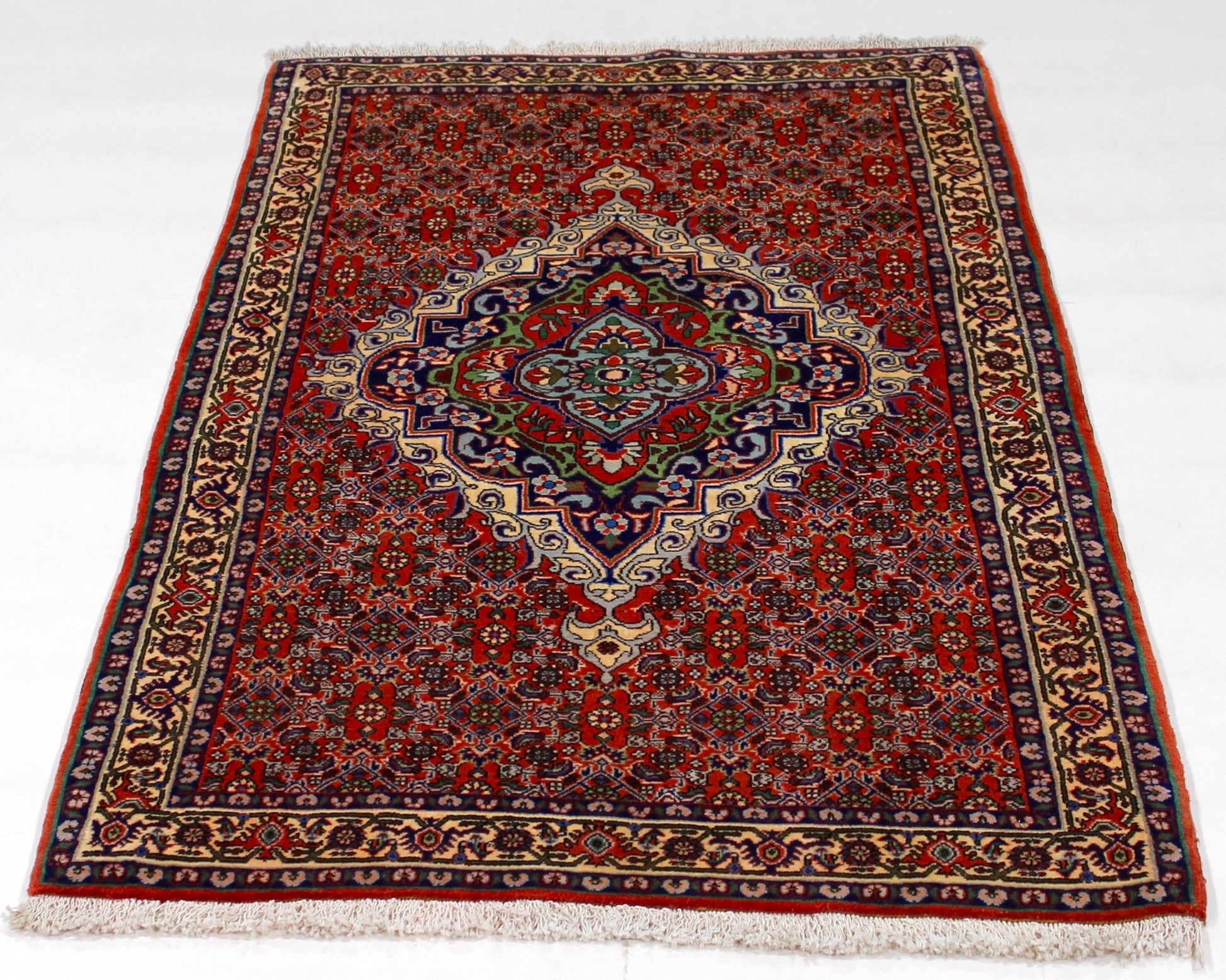 Dieser Perserteppich aus Bidjar wurde aus hochwertiger Schafwolle von Hand geknüpft. Sie ist das am häufigsten verwendete Material in der Teppichknüpfkunst und bringt eine Reihe beeindruckender Eigenschaften mit sich: