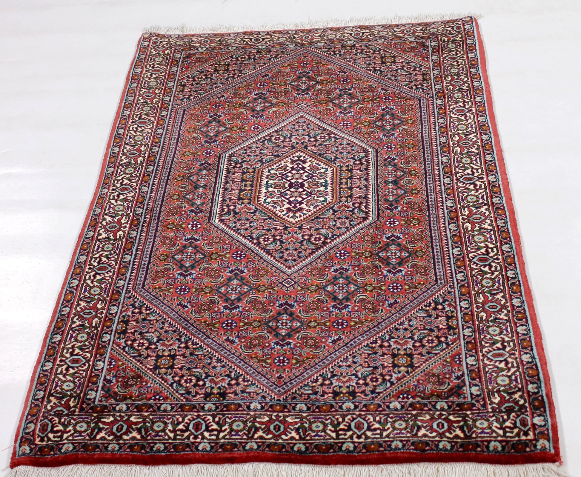 Bei der Knüpfung wird der im Teppich quer verlaufende Schussfaden angefeuchtet und mit einem Eisenkamm fest eingeschlagen. Dadurch wird die Knüpfung so dicht und fest, dass Schmutzpartikel kaum die Chance haben, sich festzusetzen. Das ist eine kraftaufwendige Arbeit und daher werden Bidjar-Teppiche meist von Männern geknüpft.