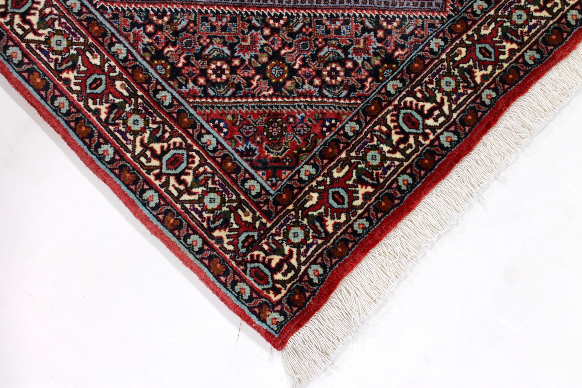 Dieser Perserteppich aus Bidjar wurde aus hochwertiger Schafwolle von Hand geknüpft. Sie ist das am häufigsten verwendete Material in der Teppichknüpfkunst und bringt eine Reihe beeindruckender Eigenschaften mit sich: