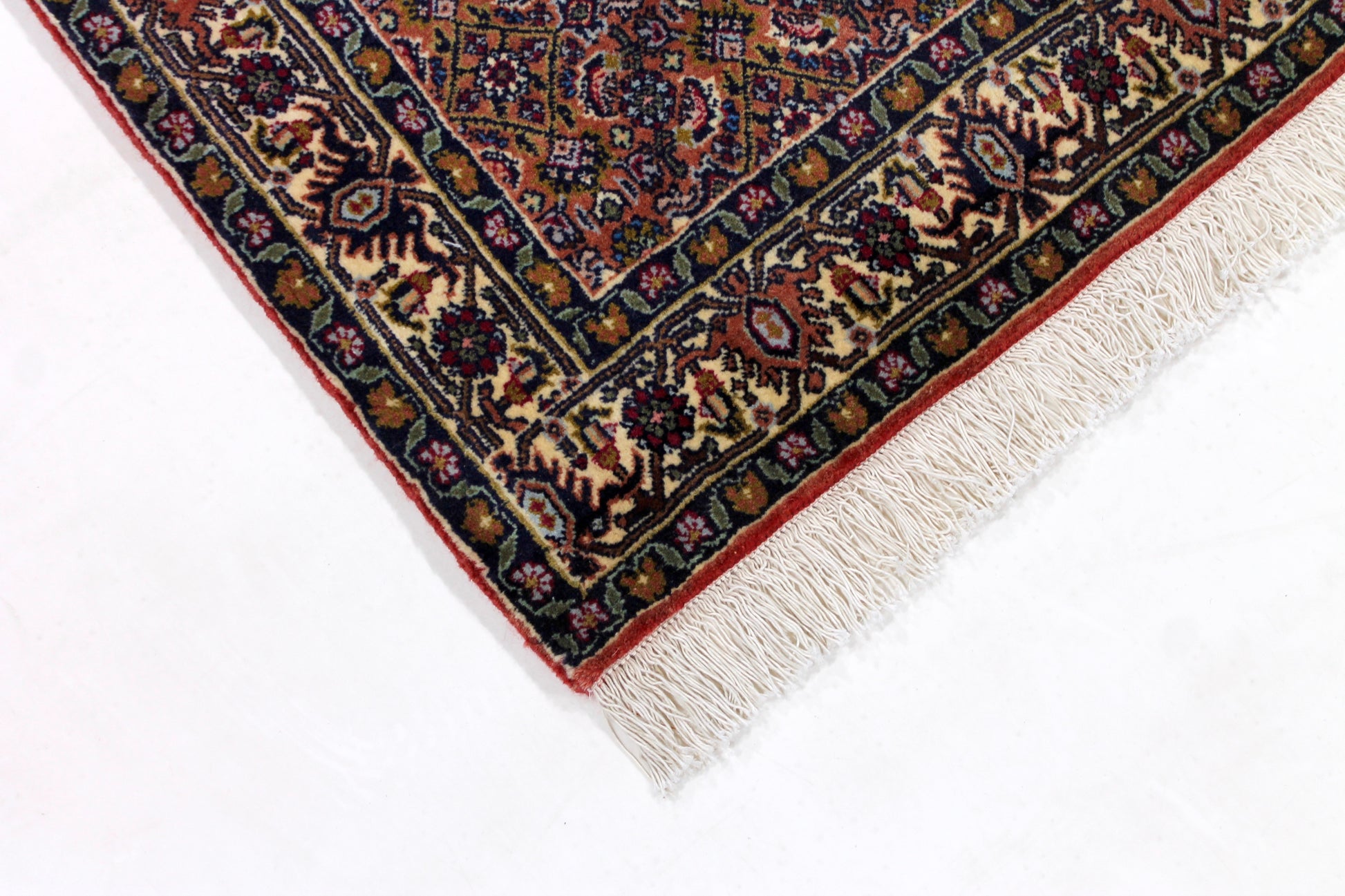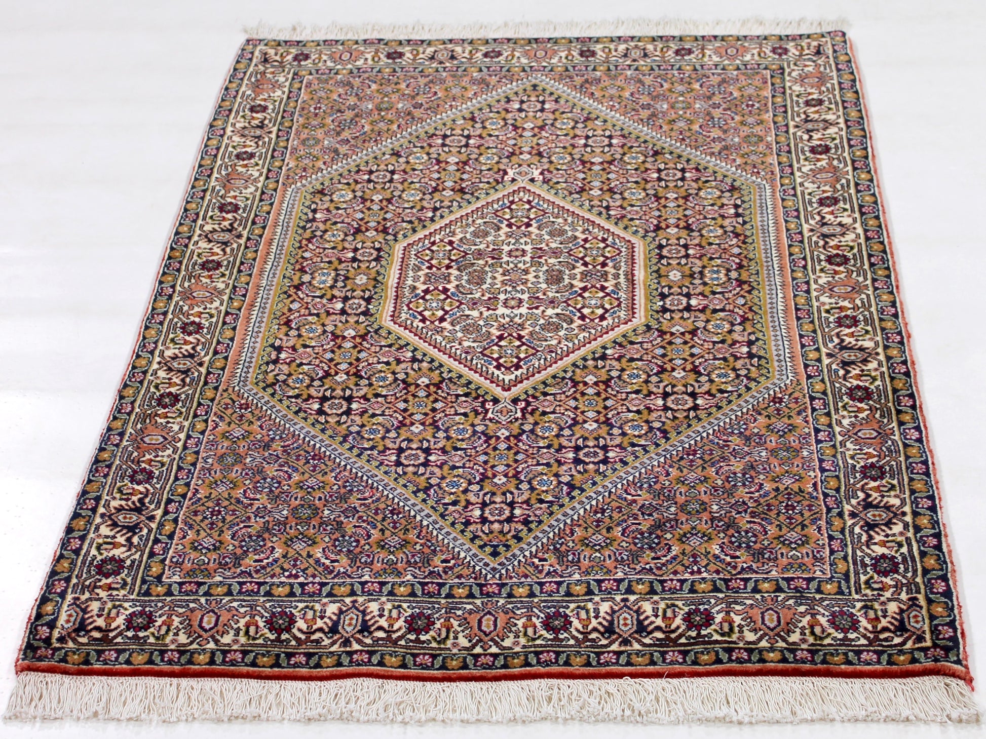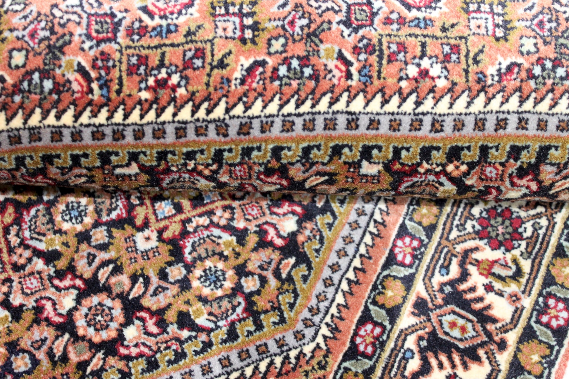 Dieser Perserteppich aus Bidjar wurde aus hochwertiger Schafwolle von Hand geknüpft. Sie ist das am häufigsten verwendete Material in der Teppichknüpfkunst und bringt eine Reihe beeindruckender Eigenschaften mit sich:
