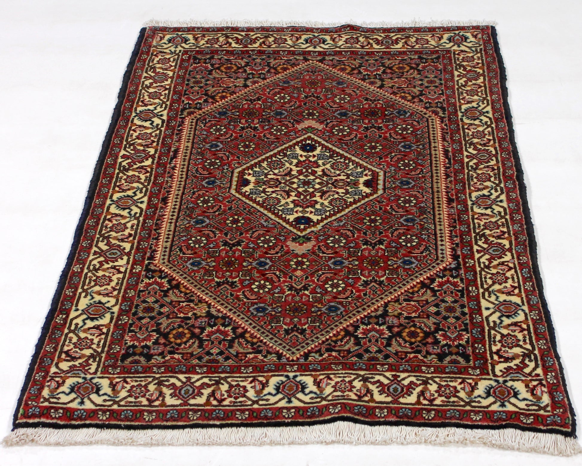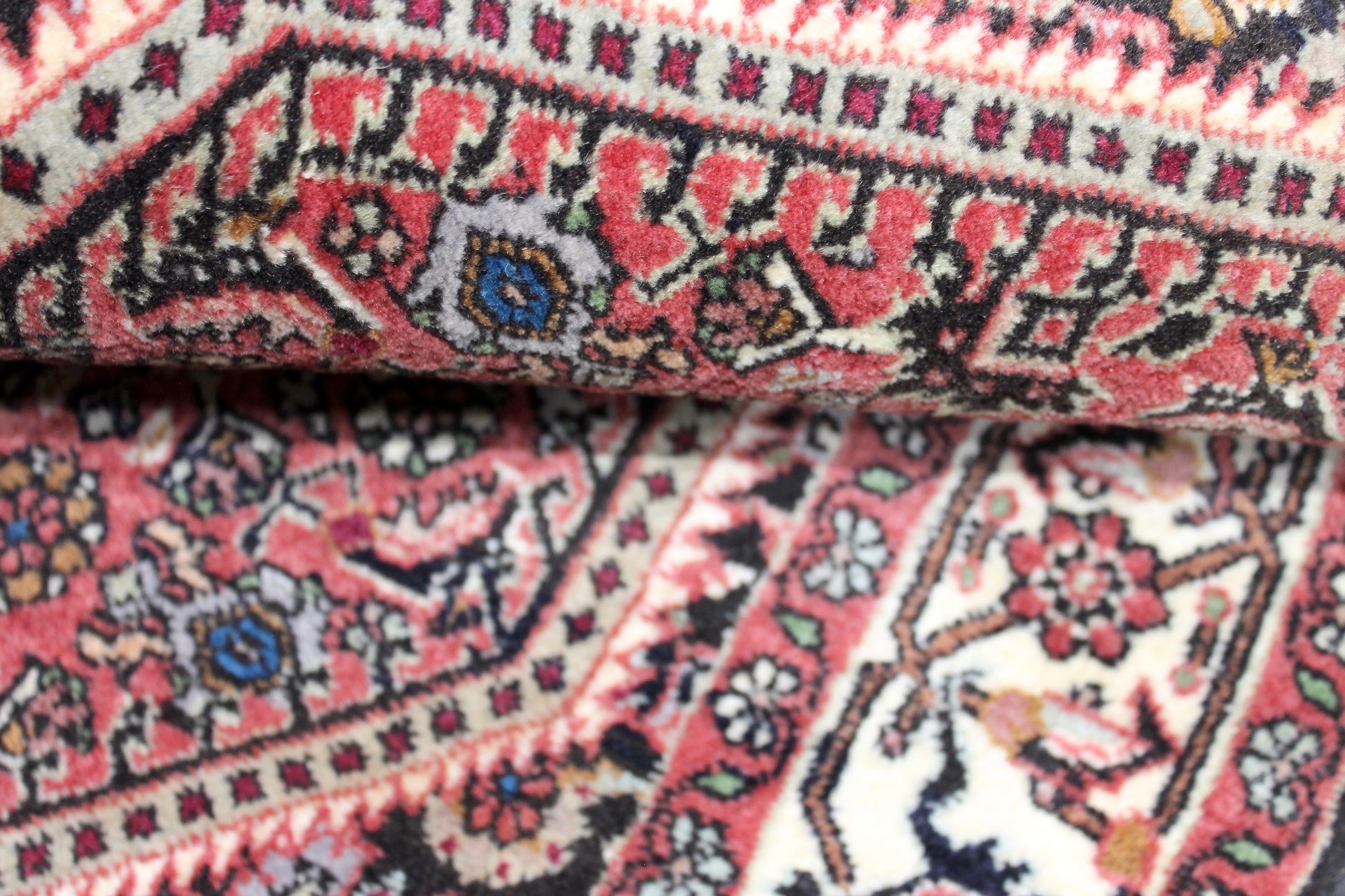 Dieser Perserteppich aus Bidjar wurde aus hochwertiger Schafwolle von Hand geknüpft. Sie ist das am häufigsten verwendete Material in der Teppichknüpfkunst und bringt eine Reihe beeindruckender Eigenschaften mit sich: