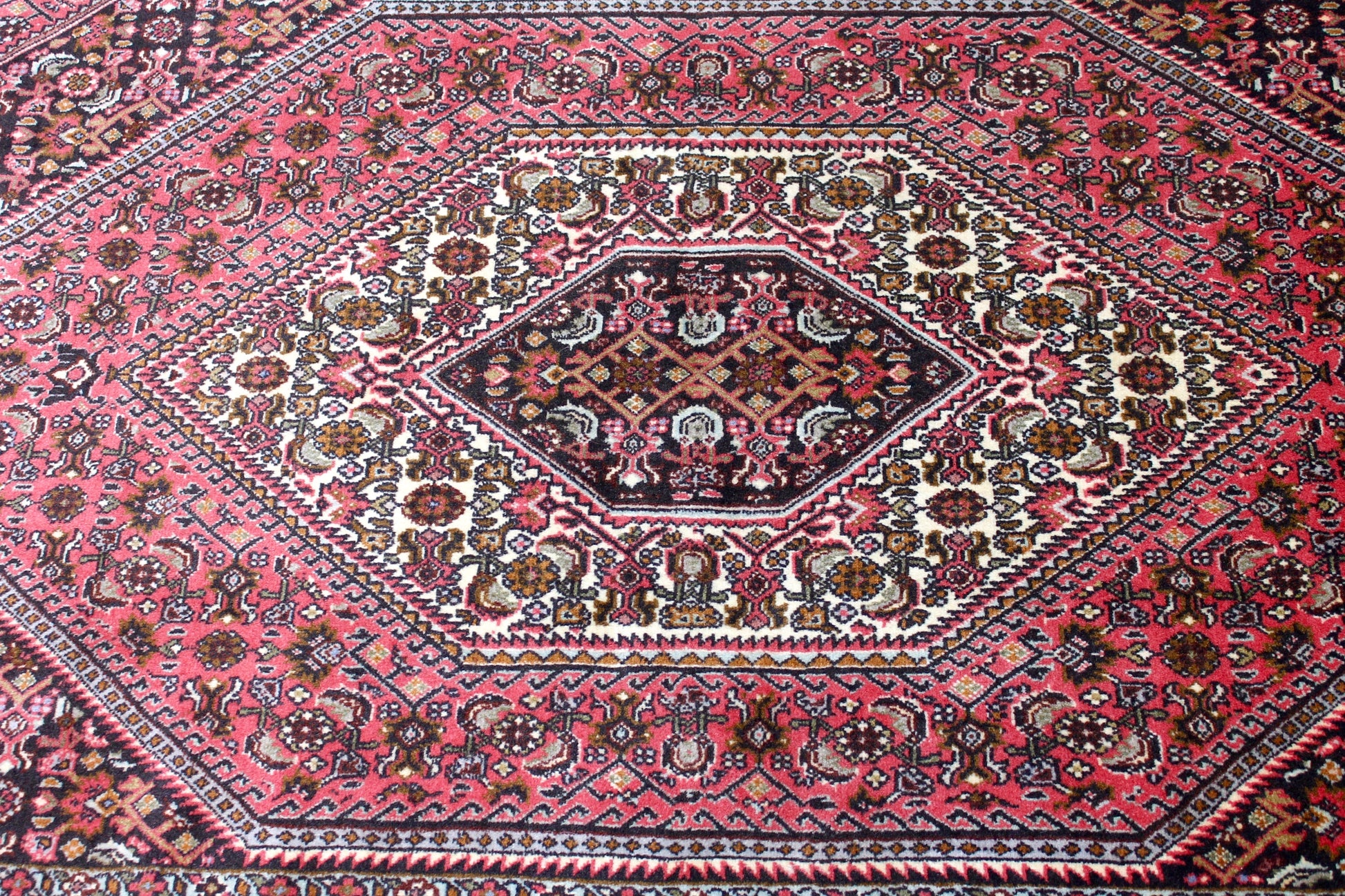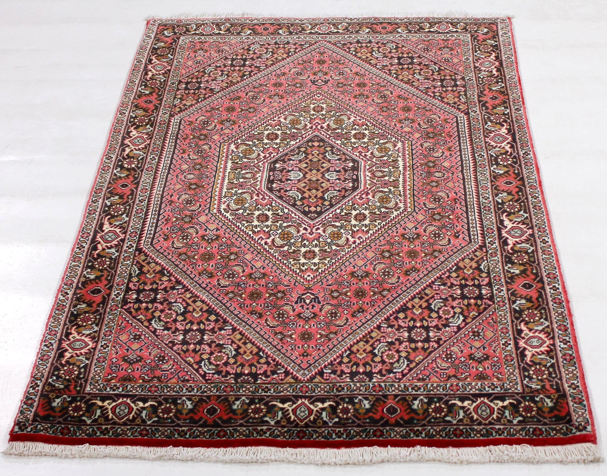 Bei der Knüpfung wird der im Teppich quer verlaufende Schussfaden angefeuchtet und mit einem Eisenkamm fest eingeschlagen. Dadurch wird die Knüpfung so dicht und fest, dass Schmutzpartikel kaum die Chance haben, sich festzusetzen. Das ist eine kraftaufwendige Arbeit und daher werden Bidjar-Teppiche meist von Männern geknüpft.