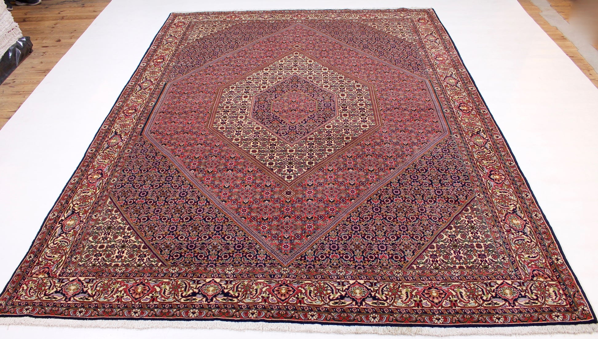 Dieser Perserteppich aus Bidjar wurde aus hochwertiger Schafwolle von Hand geknüpft. Sie ist das am häufigsten verwendete Material in der Teppichknüpfkunst und bringt eine Reihe beeindruckender Eigenschaften mit sich: