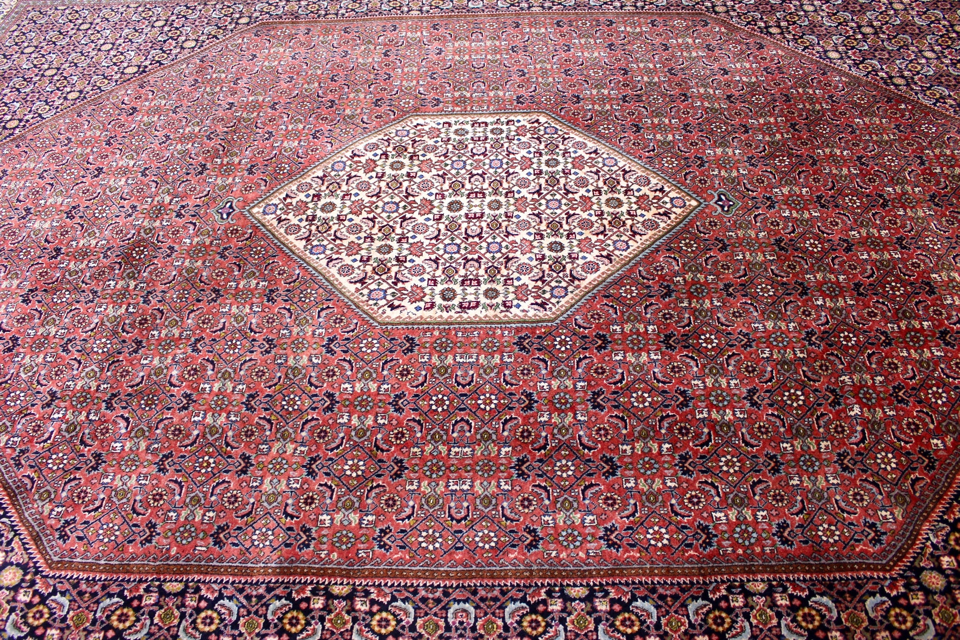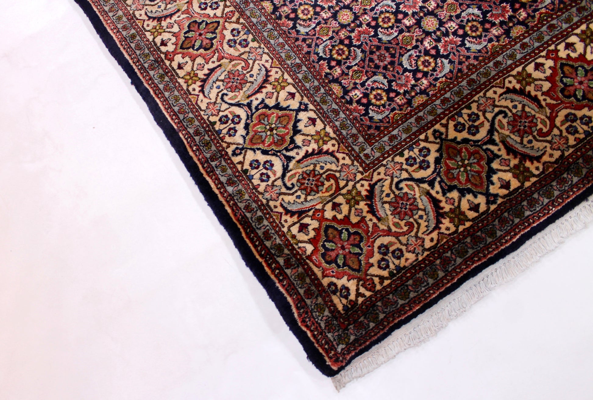 Dieser Perserteppich aus Bidjar wurde aus hochwertiger Schafwolle von Hand geknüpft. Sie ist das am häufigsten verwendete Material in der Teppichknüpfkunst und bringt eine Reihe beeindruckender Eigenschaften mit sich:
