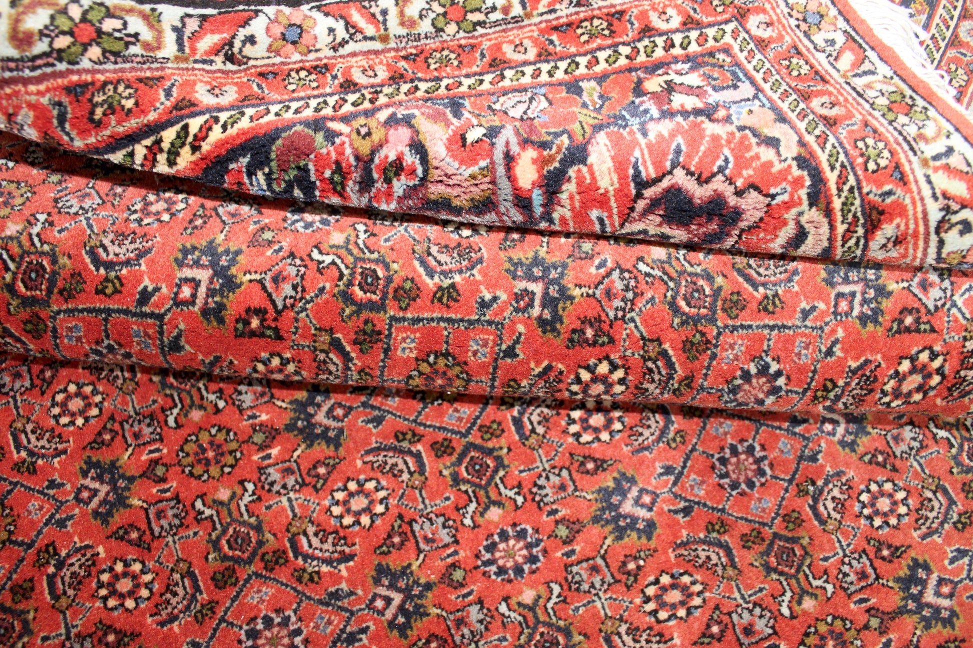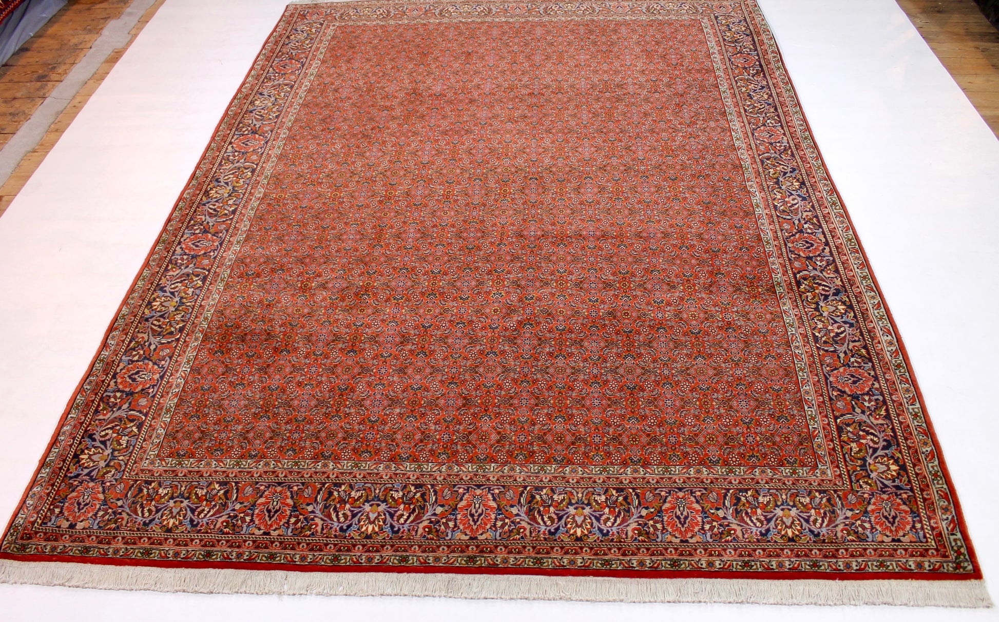 Dieser Perserteppich aus Bidjar wurde aus hochwertiger Schafwolle von Hand geknüpft. Sie ist das am häufigsten verwendete Material in der Teppichknüpfkunst und bringt eine Reihe beeindruckender Eigenschaften mit sich: