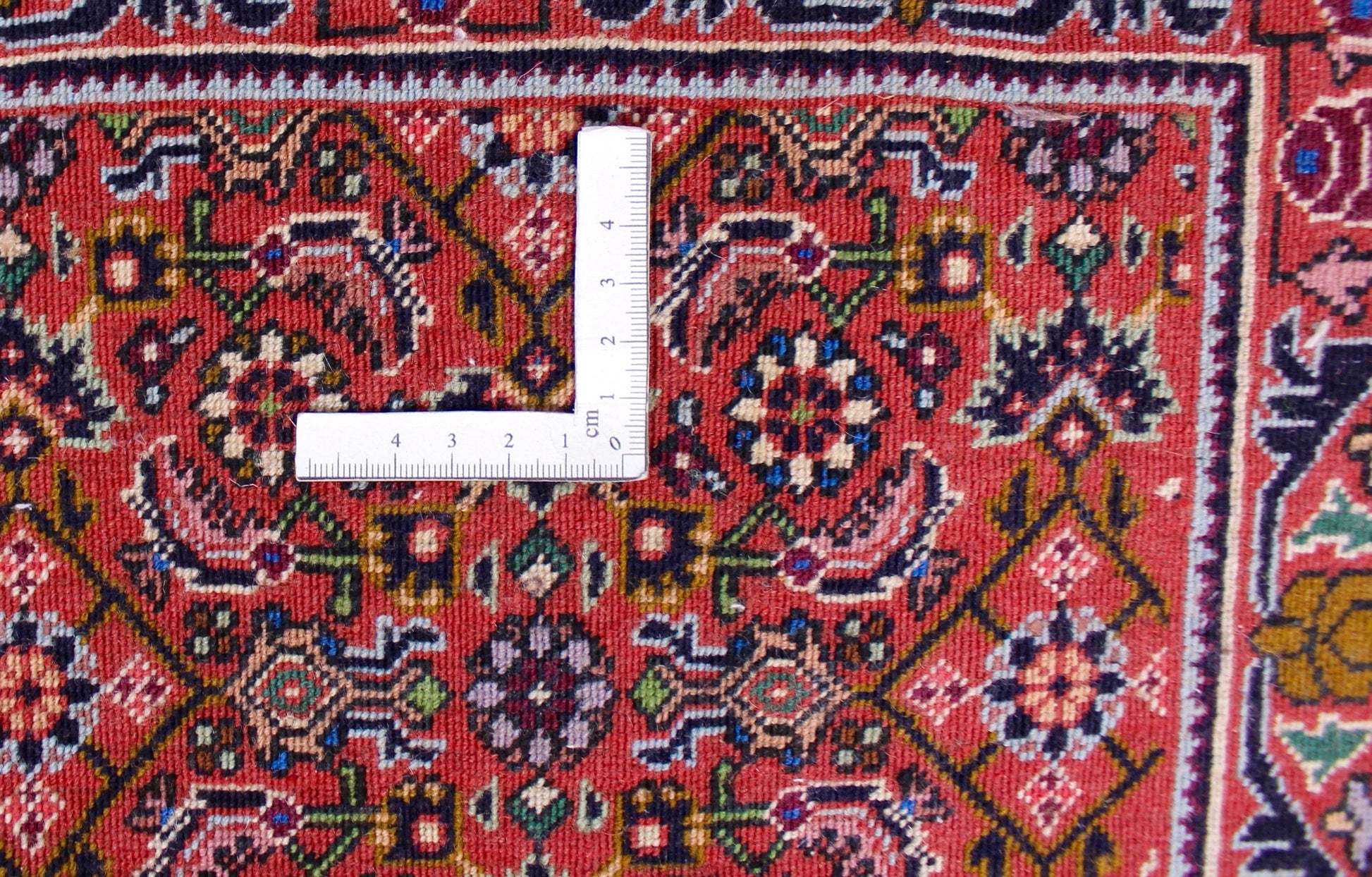 Dieser Perserteppich aus Bidjar wurde aus hochwertiger Schafwolle von Hand geknüpft. Sie ist das am häufigsten verwendete Material in der Teppichknüpfkunst und bringt eine Reihe beeindruckender Eigenschaften mit sich: