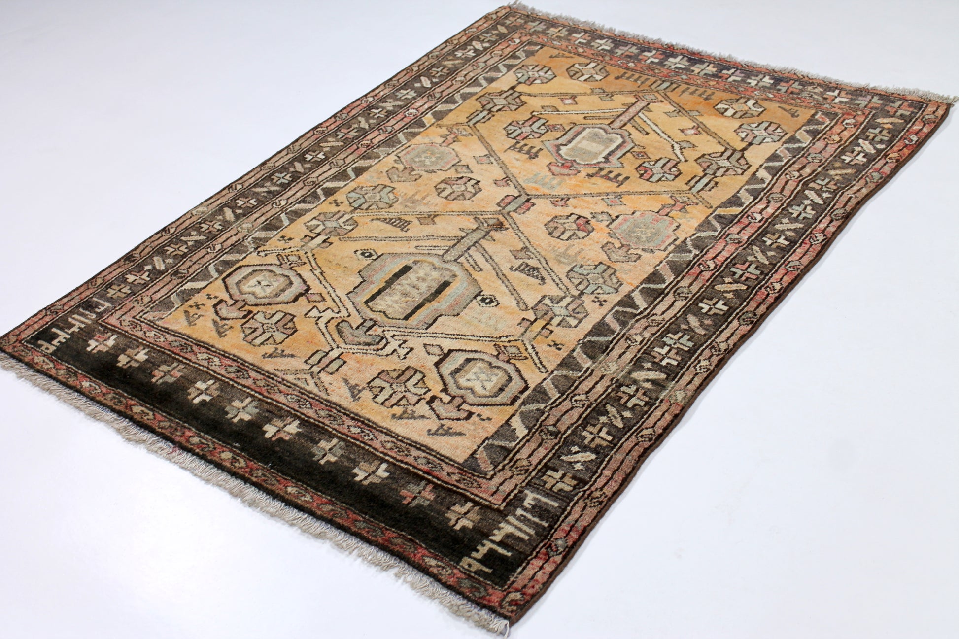 Das Leben der Gashgai bestimmt auch das Muster ihrer Teppiche. Sie arbeiten ohne Vorlage und als Motive findet man oft Ihre Tiere, das alte Persepolis oder den persischen Löwen. Typisch für diese Perserteppiche ist ihre rotbraune Farbe.