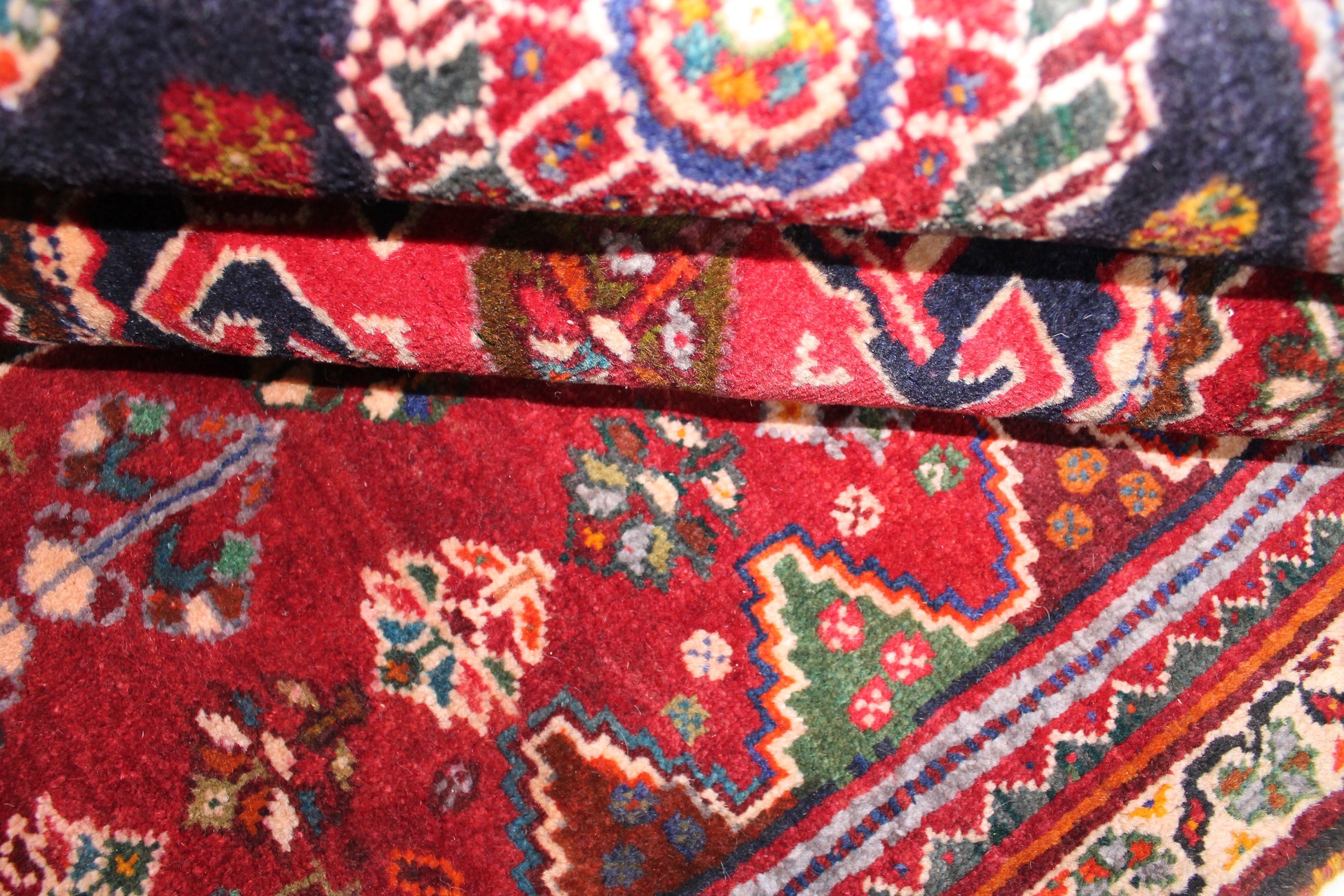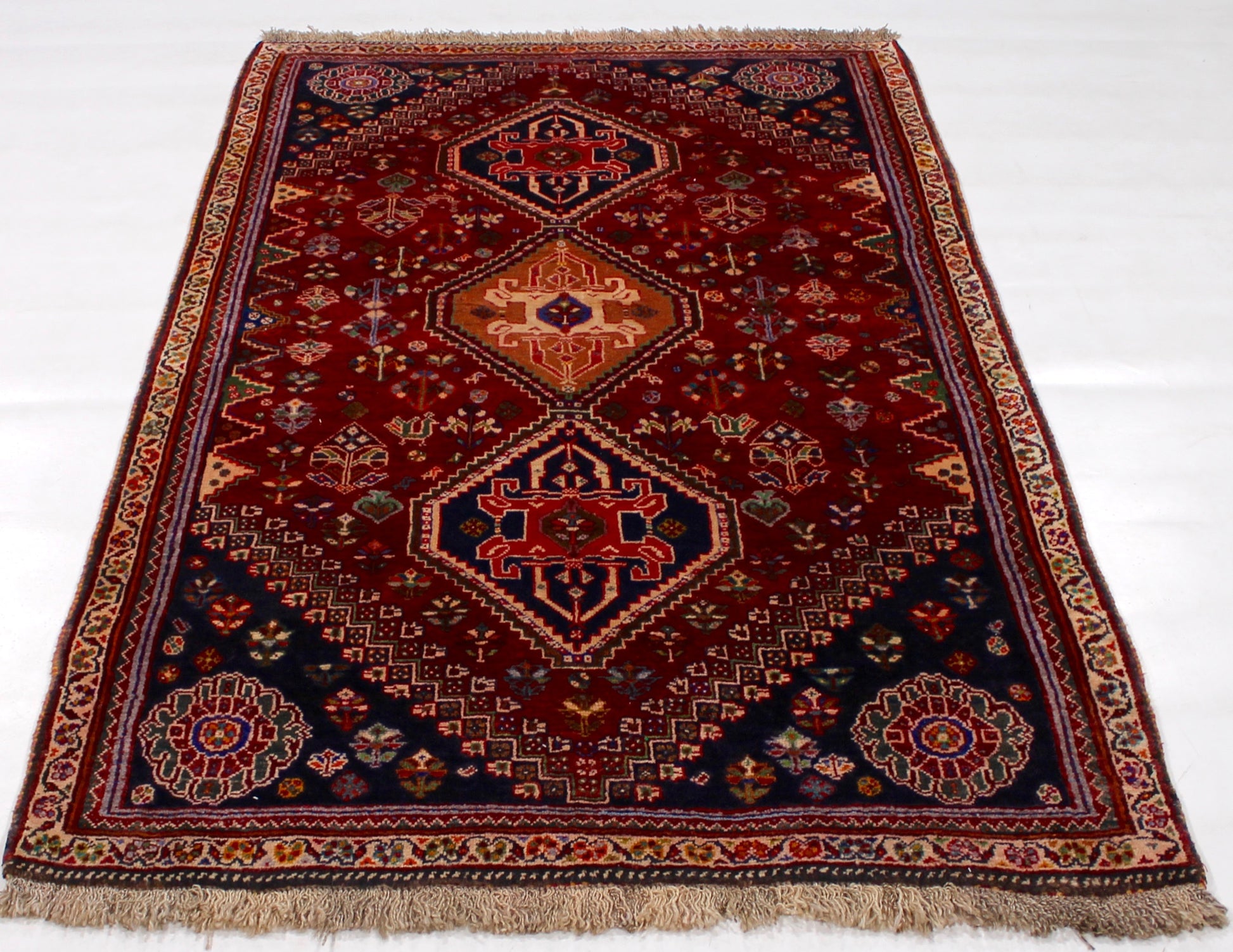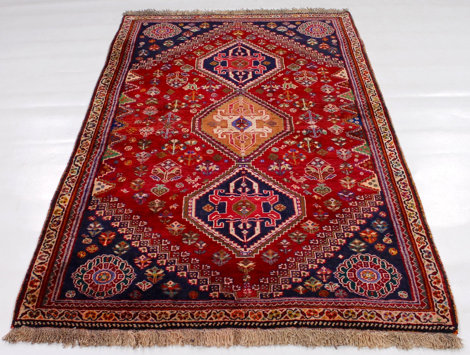 Dieser Gashgai Perserteppich wurde aus hochwertiger Schafwolle von Hand geknüpft. Sie ist das am häufigsten verwendete Material in der Teppichknüpfkunst und bringt eine Reihe beeindruckender Eigenschaften mit sich: