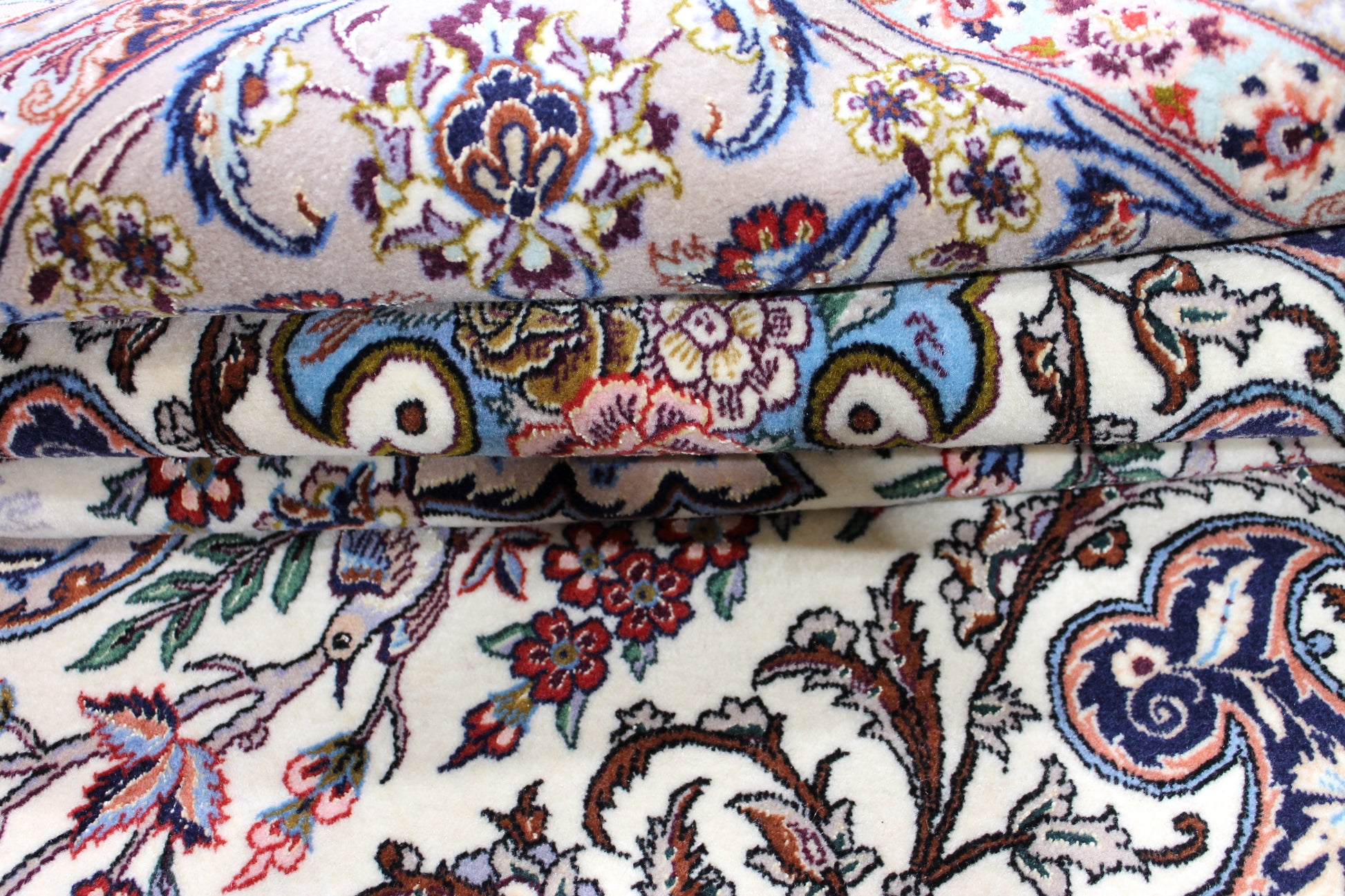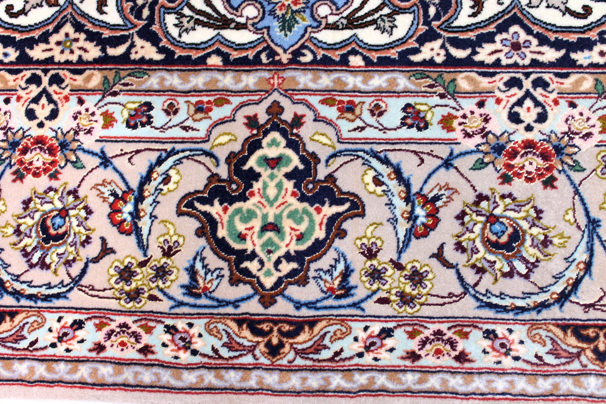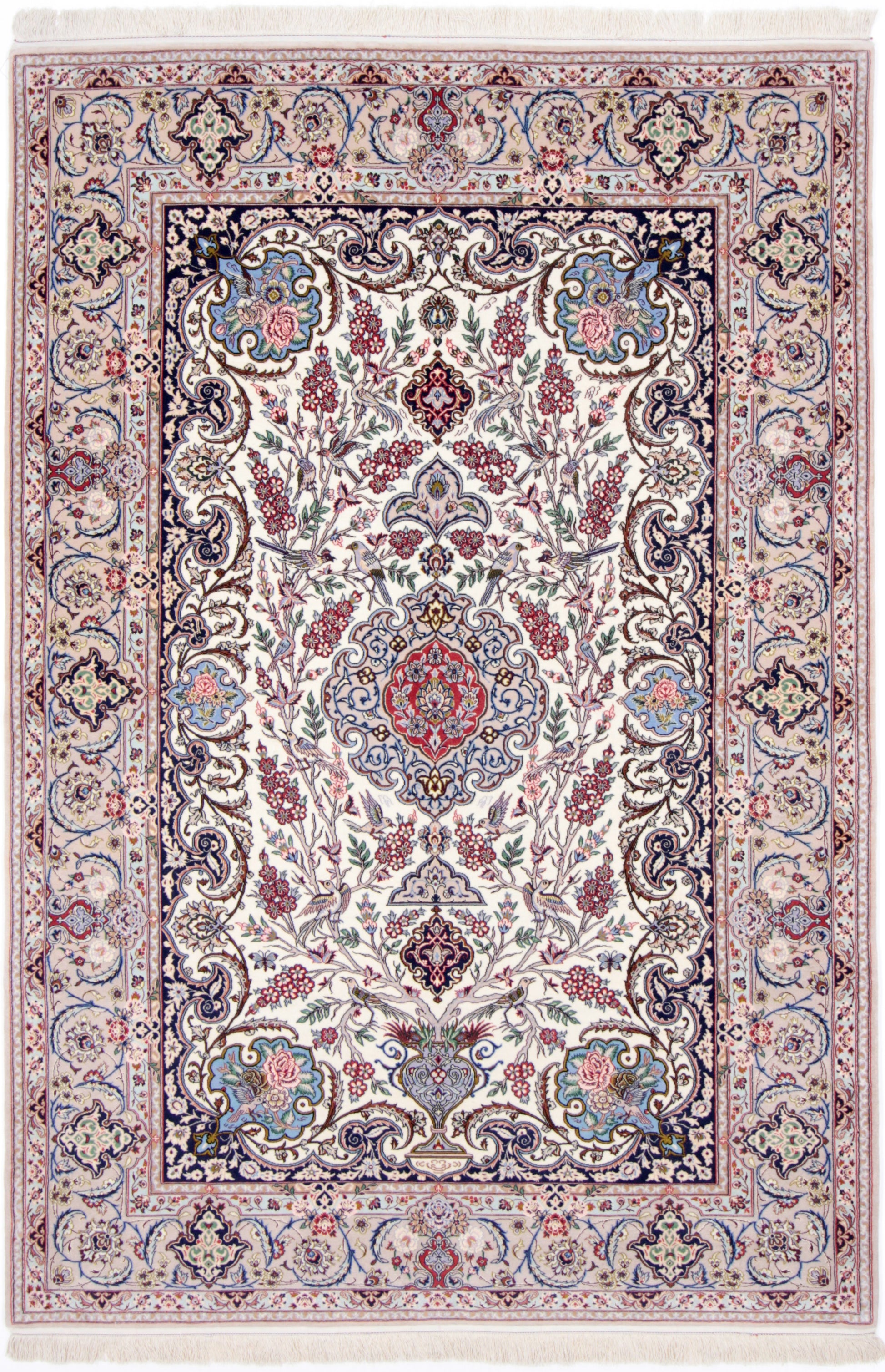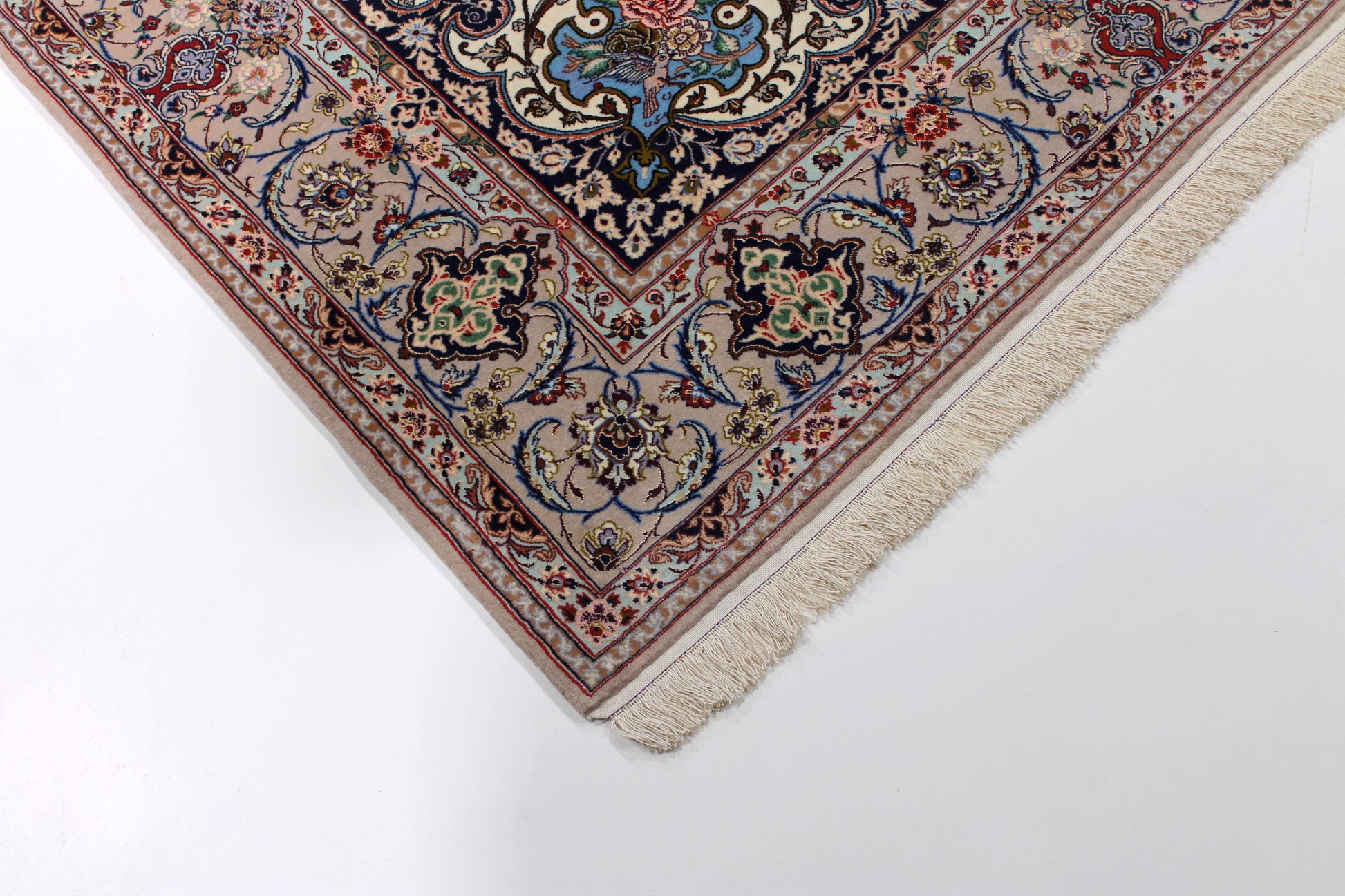 Wer schon einmal den Iran bereist hat, hatte Isfahan ganz oben auf seiner Liste. Sie ist die wahrscheinlich schönste Stadt des Landes. Das ist der ca. 200-jährigen Besetzung durch die Safawiden zu verdanken, deren König Shah Abbas eine große Leidenschaft für Kunst und Architektur hatte. Dieser Isfahan wurde aus hochwertiger Seide und Schafwolle von Hand geknüpft.