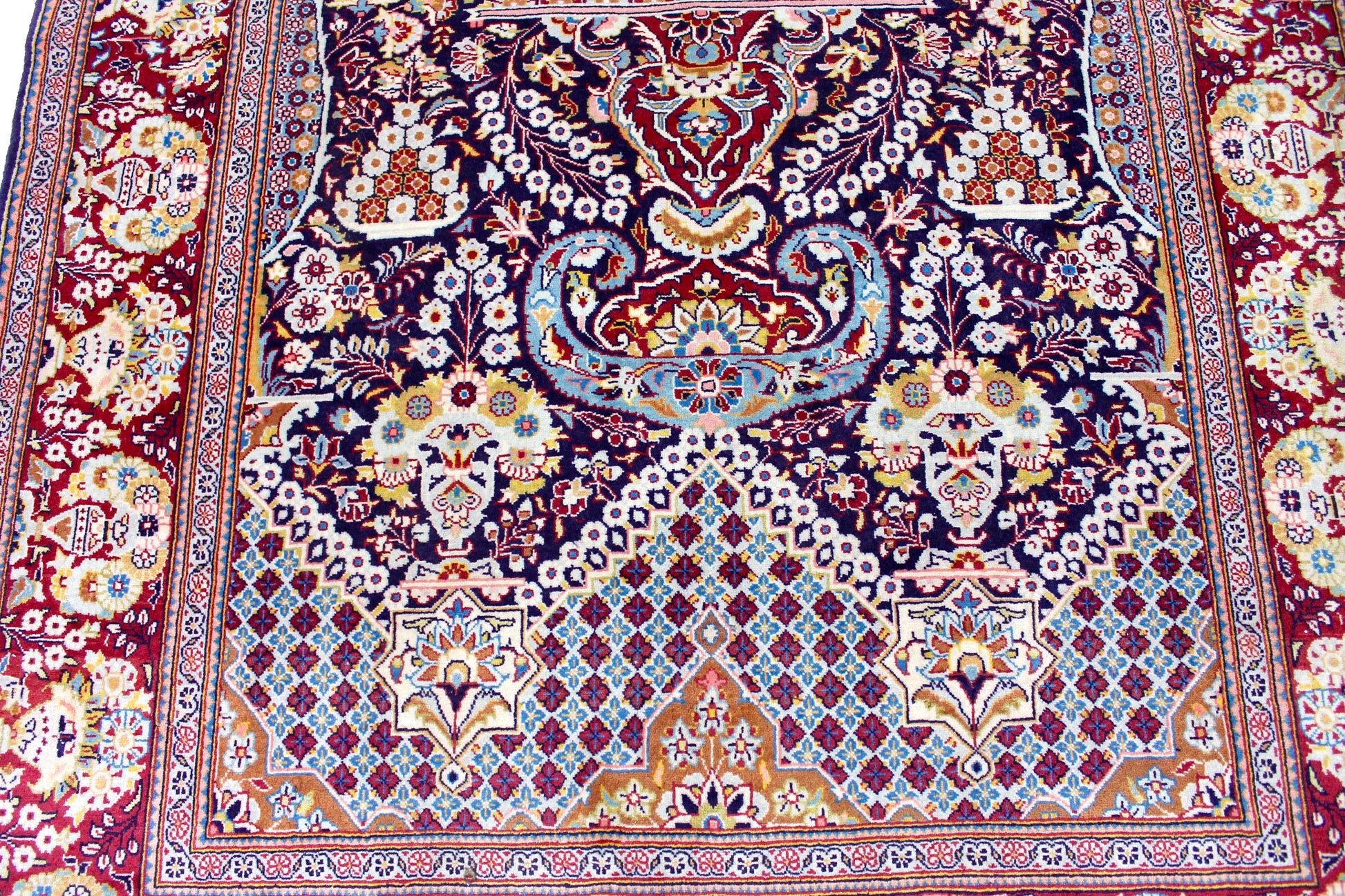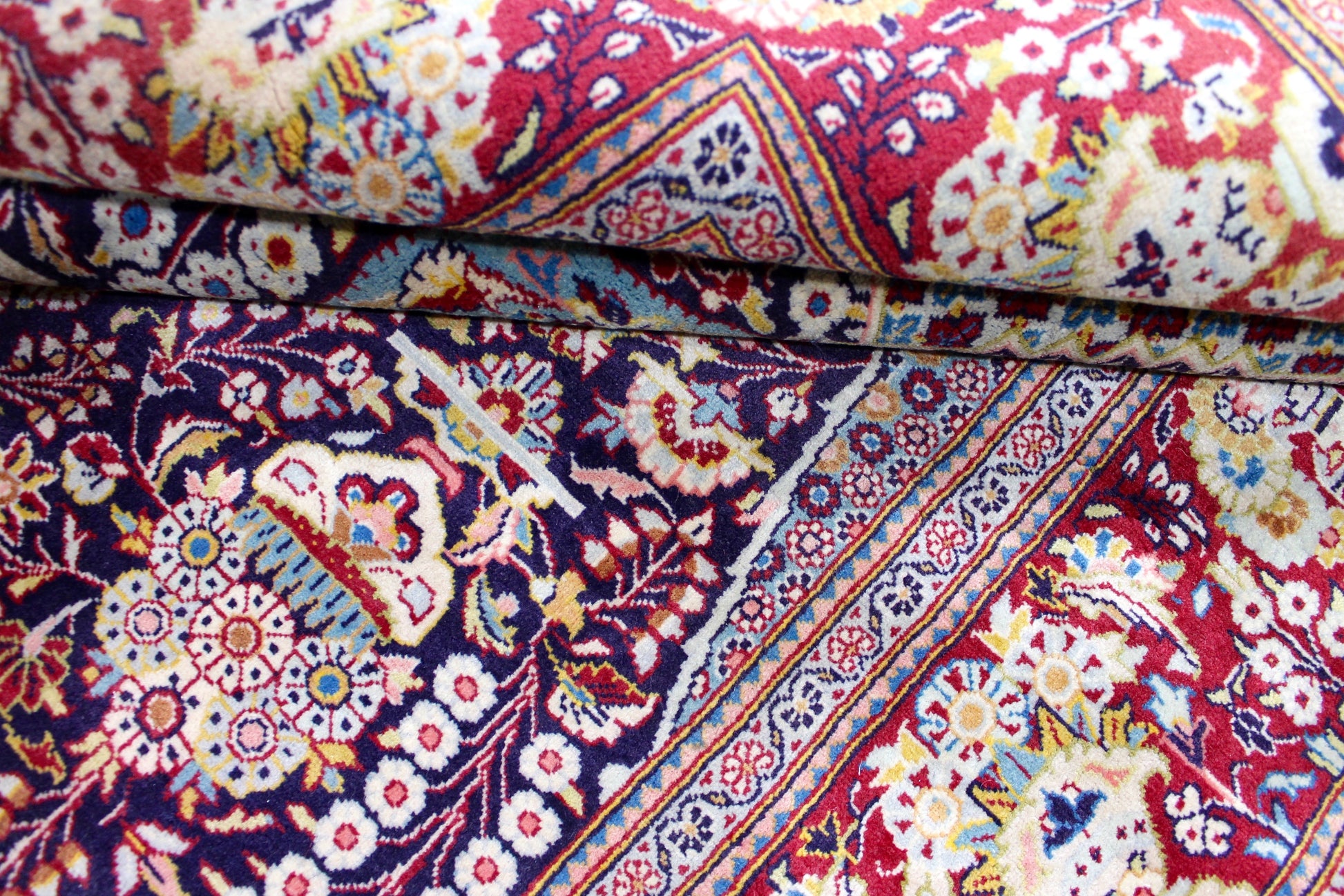 Dieser Kashan Perserteppich wurde aus hochwertiger Schafwolle von Hand geknüpft. Sie ist das am häufigsten verwendete Material in der Teppichknüpfkunst und bringt eine Reihe beeindruckender Eigenschaften mit sich: