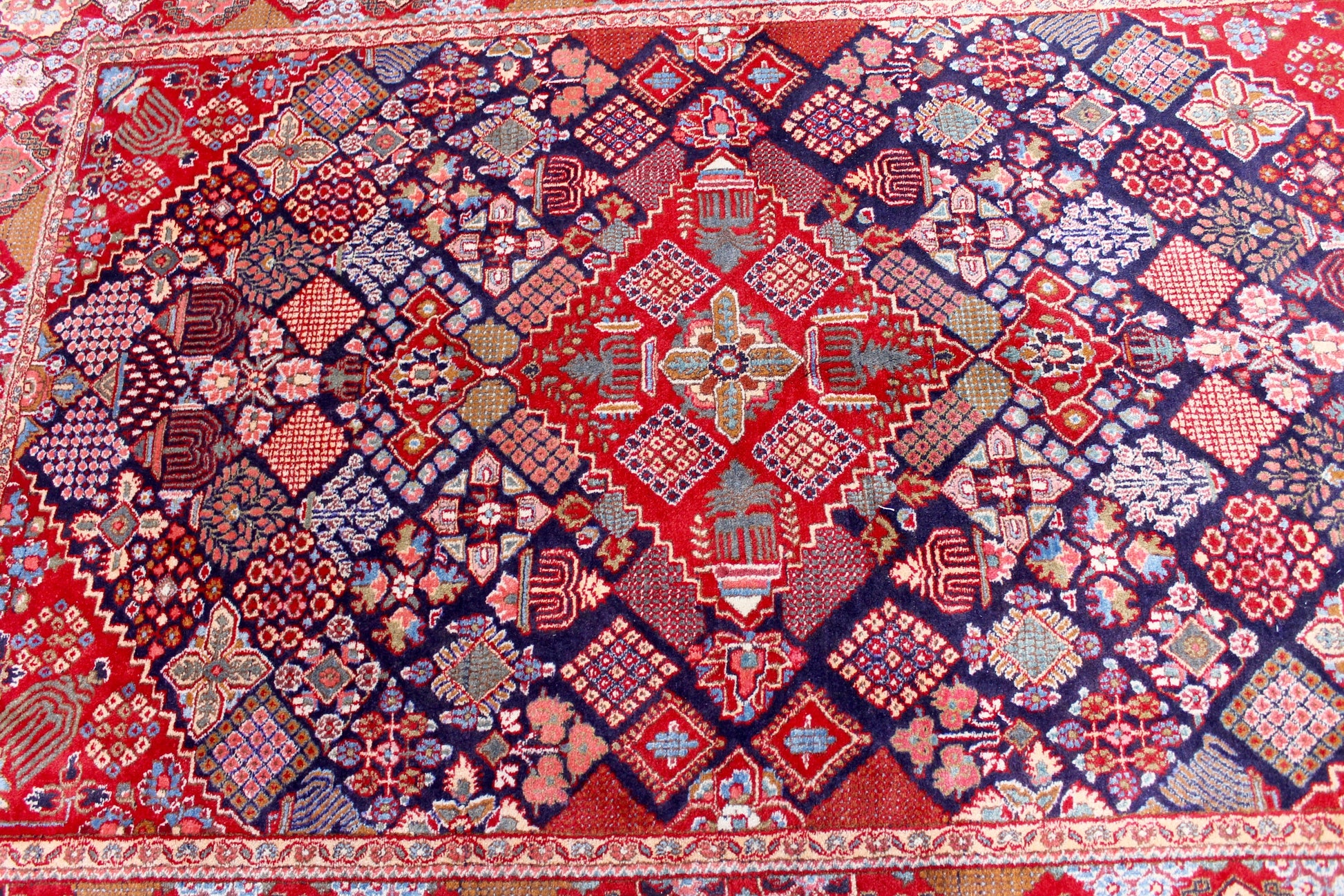 Dieser Kashan Perserteppich wurde aus hochwertiger Schafwolle von Hand geknüpft. Sie ist das am häufigsten verwendete Material in der Teppichknüpfkunst und bringt eine Reihe beeindruckender Eigenschaften mit sich: