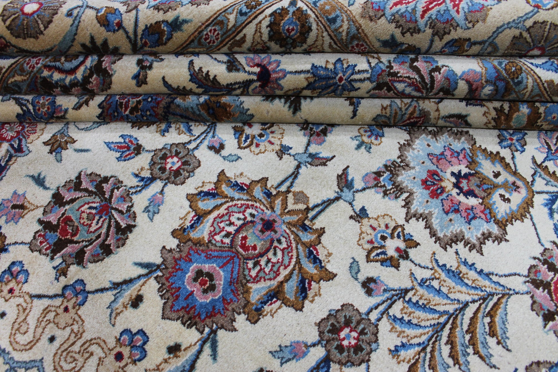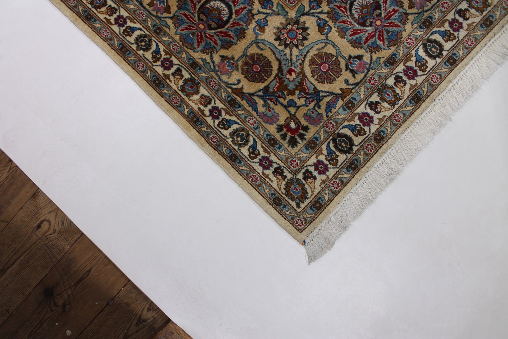 Dieser Perserteppich aus Kashan wurde aus hochwertiger Schafwolle von Hand geknüpft. Sie ist das am häufigsten verwendete Material in der Teppichknüpfkunst und bringt eine Reihe beeindruckender Eigenschaften mit sich:
