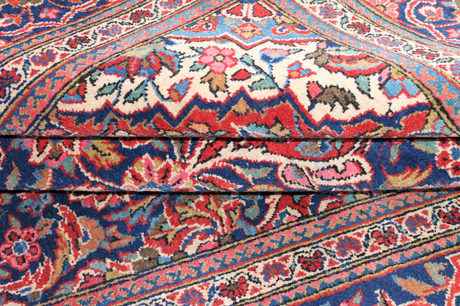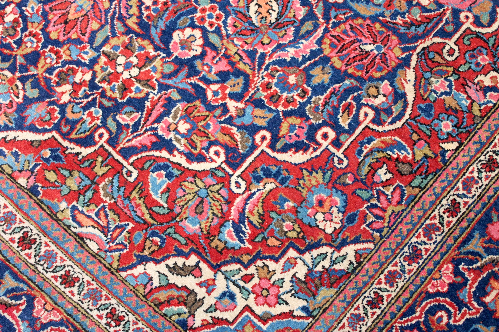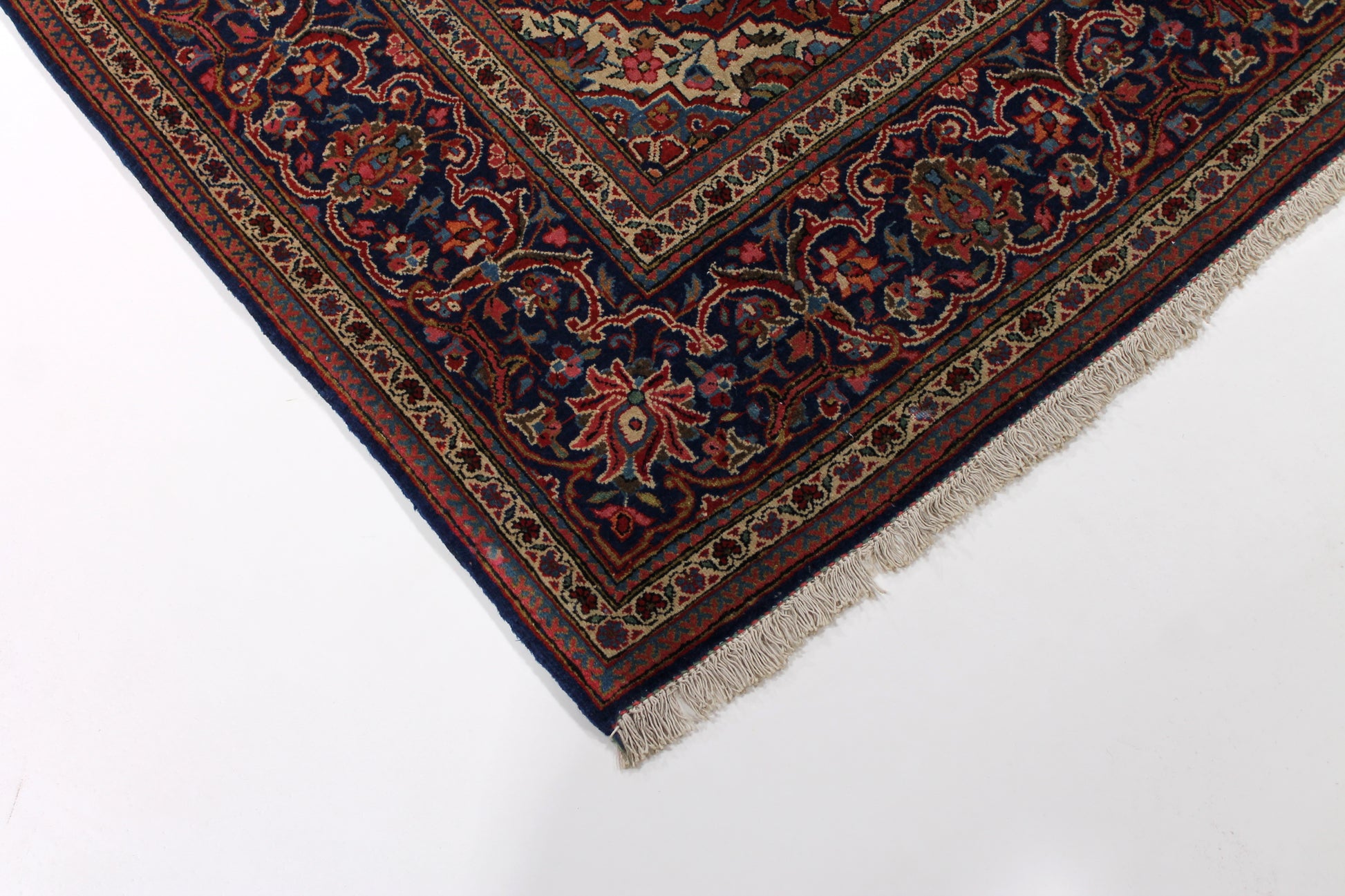 Dieser Teppich aus Kashan wurde aus hochwertiger Schafwolle von Hand geknüpft. Sie ist das am häufigsten verwendete Material in der Teppichknüpfkunst und bringt eine Reihe beeindruckender Eigenschaften mit sich:
