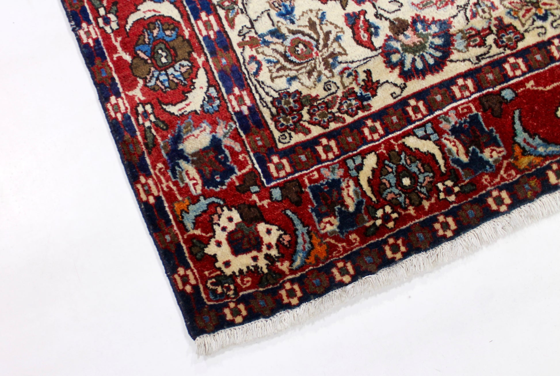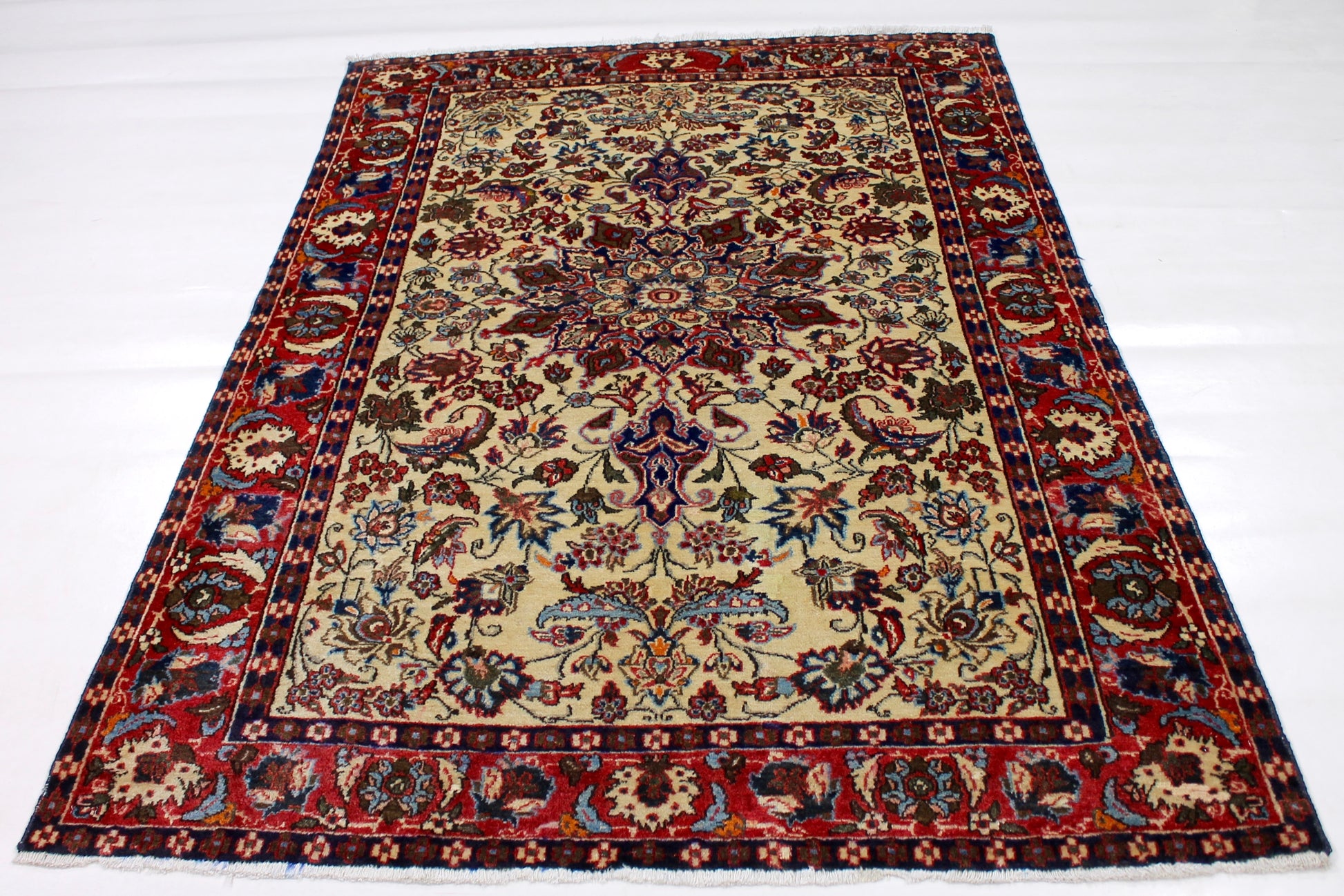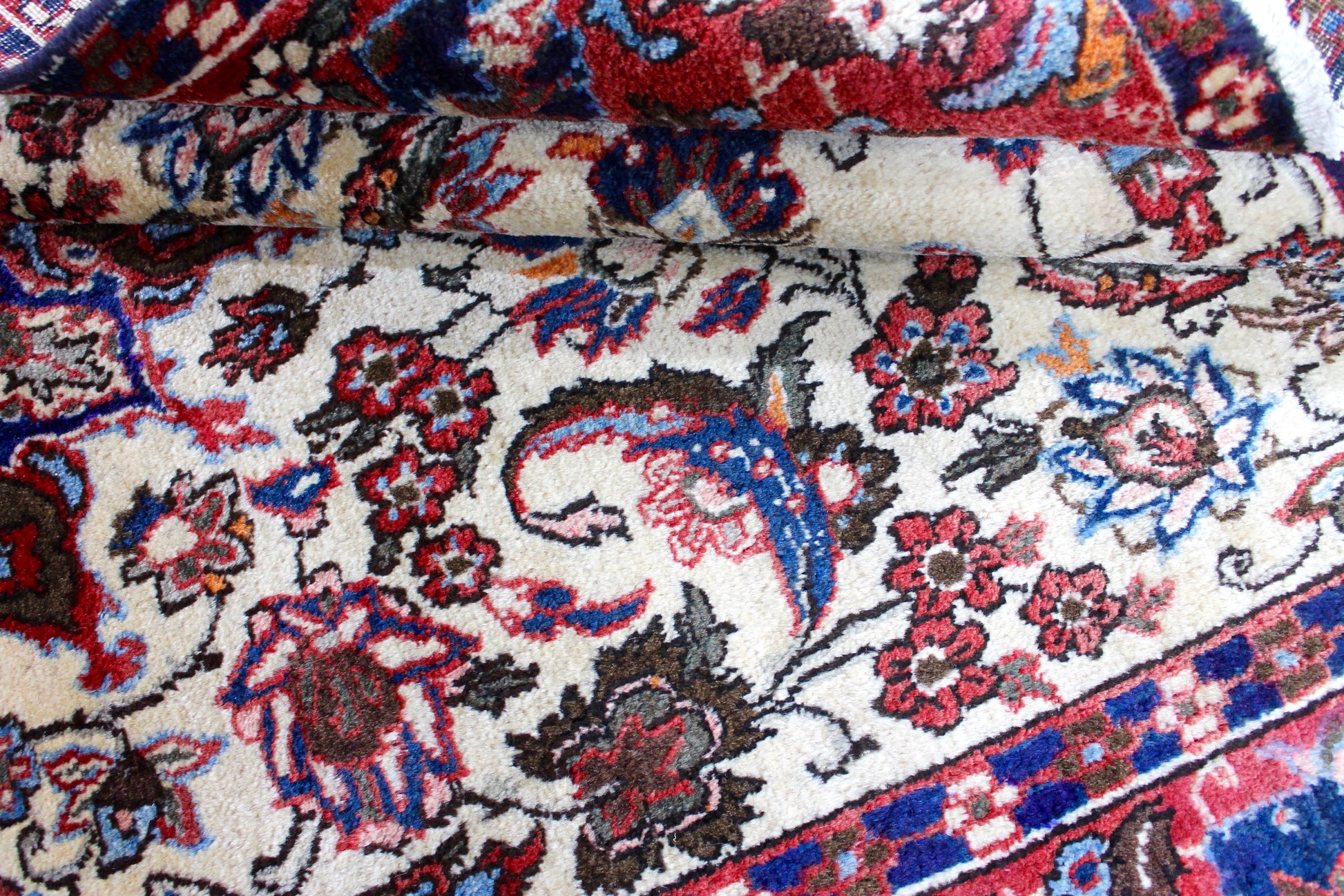 Dieser Khamseh Perserteppich wurde aus hochwertiger Schafwolle von Hand geknüpft. Sie ist das am häufigsten verwendete Material in der Teppichknüpfkunst und bringt eine Reihe beeindruckender Eigenschaften mit sich: