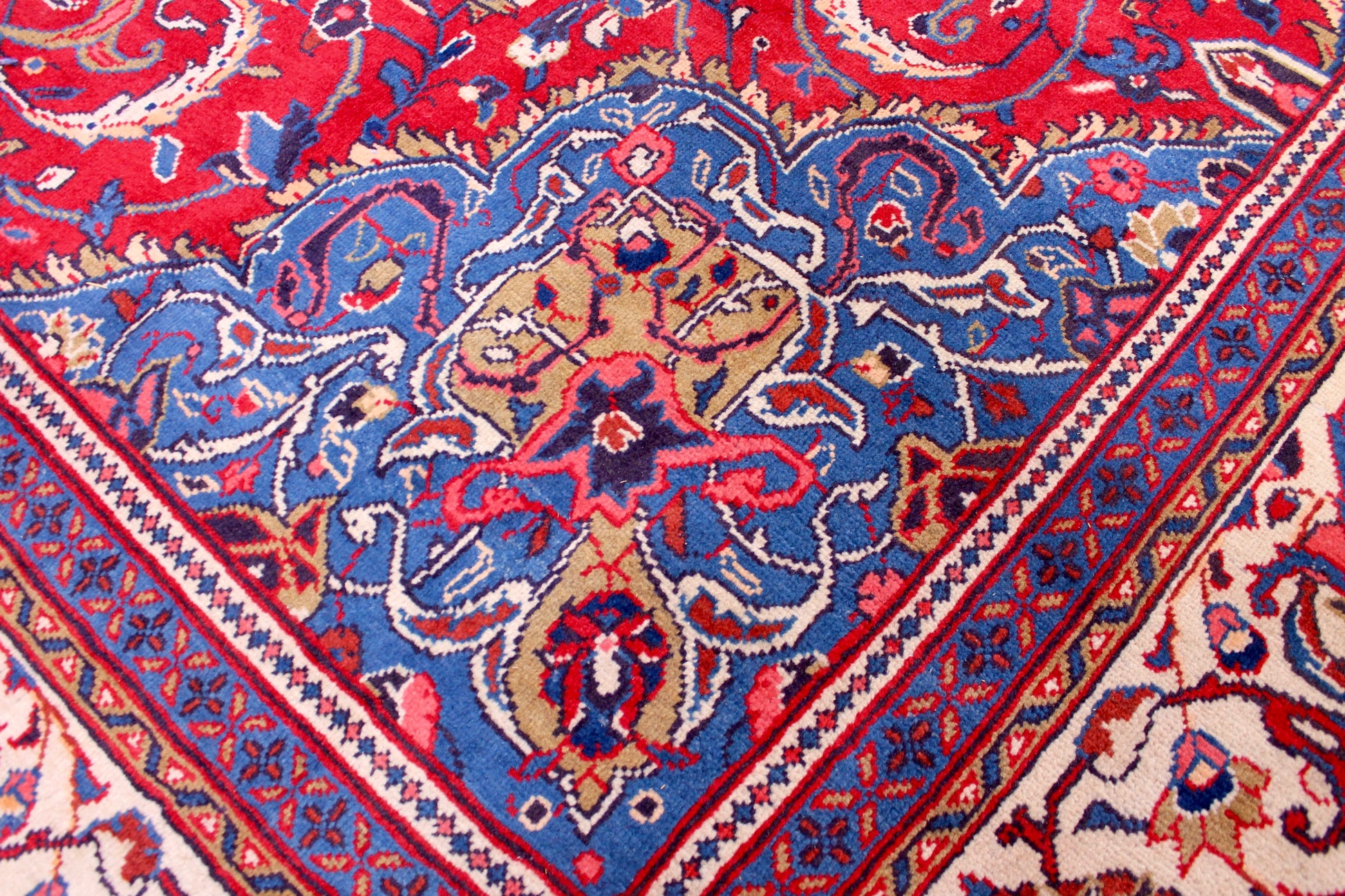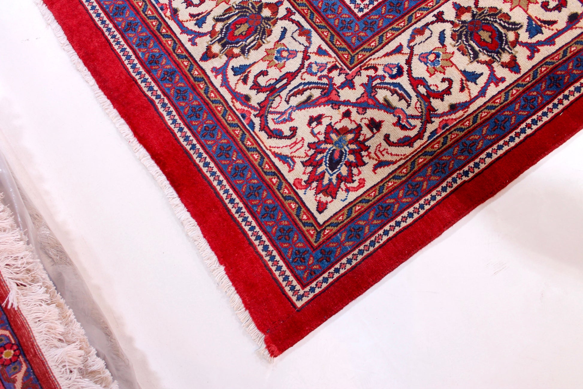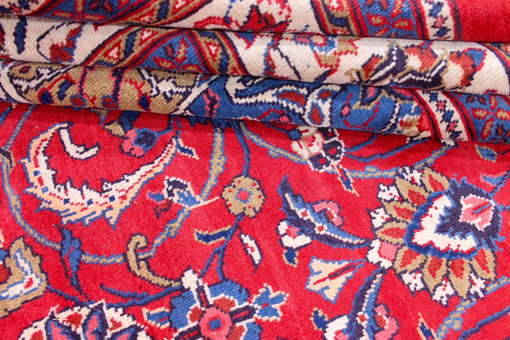 Dieser Mahal Perserteppich wurde aus hochwertiger Schafwolle von Hand geknüpft. Sie ist das am häufigsten verwendete Material in der Teppichknüpfkunst und bringt eine Reihe beeindruckender Eigenschaften mit sich: