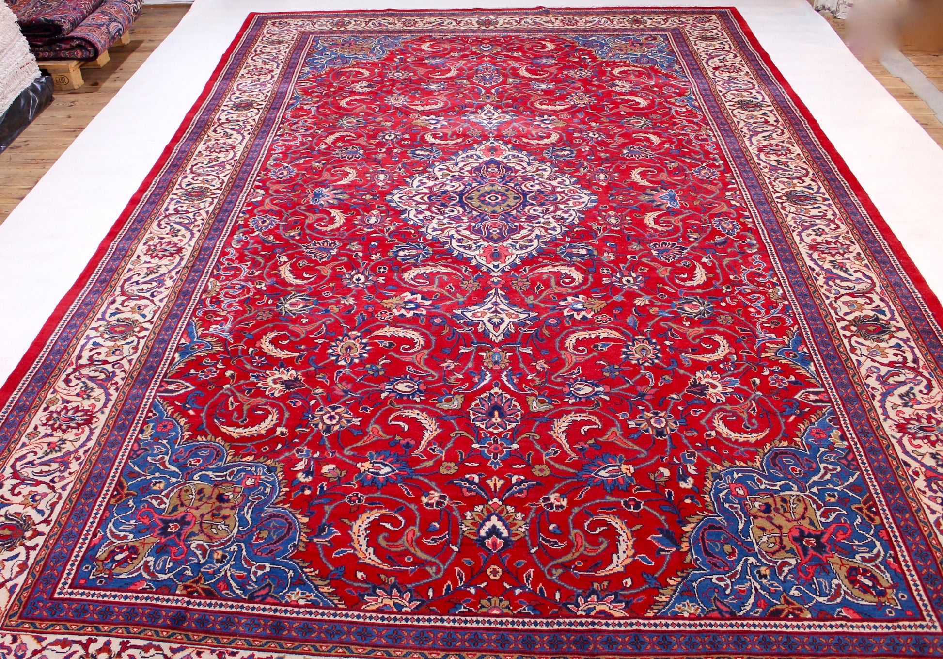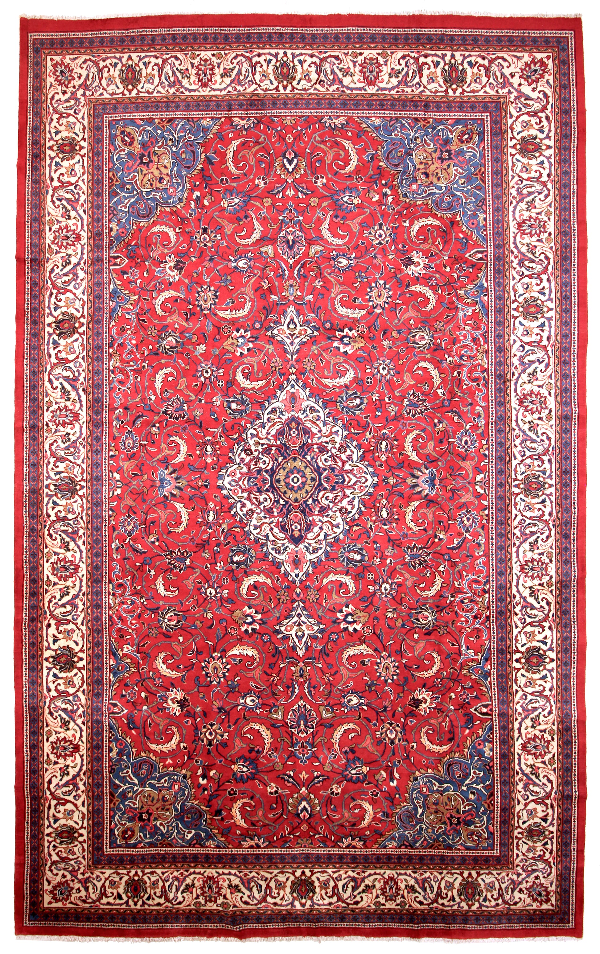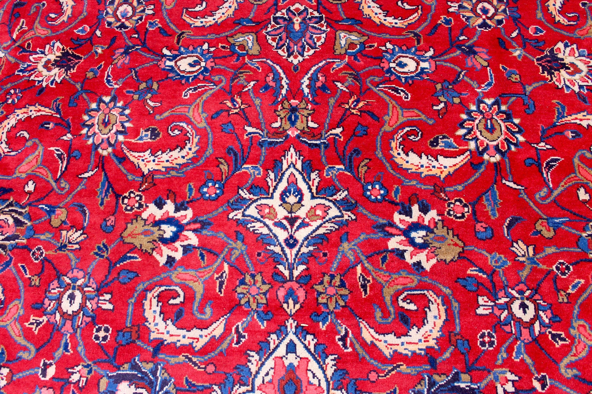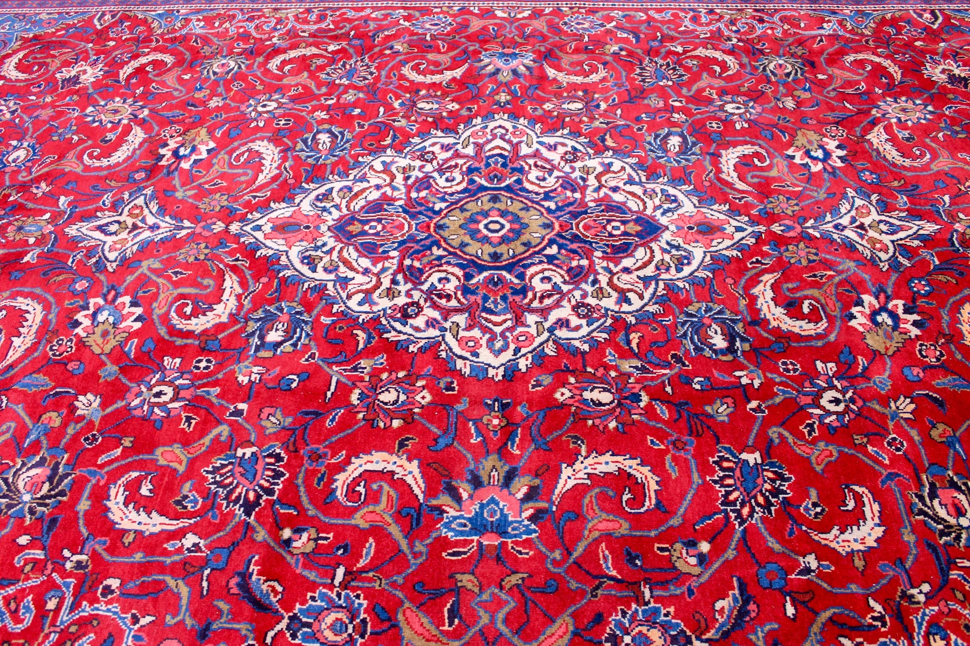 Dieser Mahal Perserteppich wurde aus hochwertiger Schafwolle von Hand geknüpft. Sie ist das am häufigsten verwendete Material in der Teppichknüpfkunst und bringt eine Reihe beeindruckender Eigenschaften mit sich: