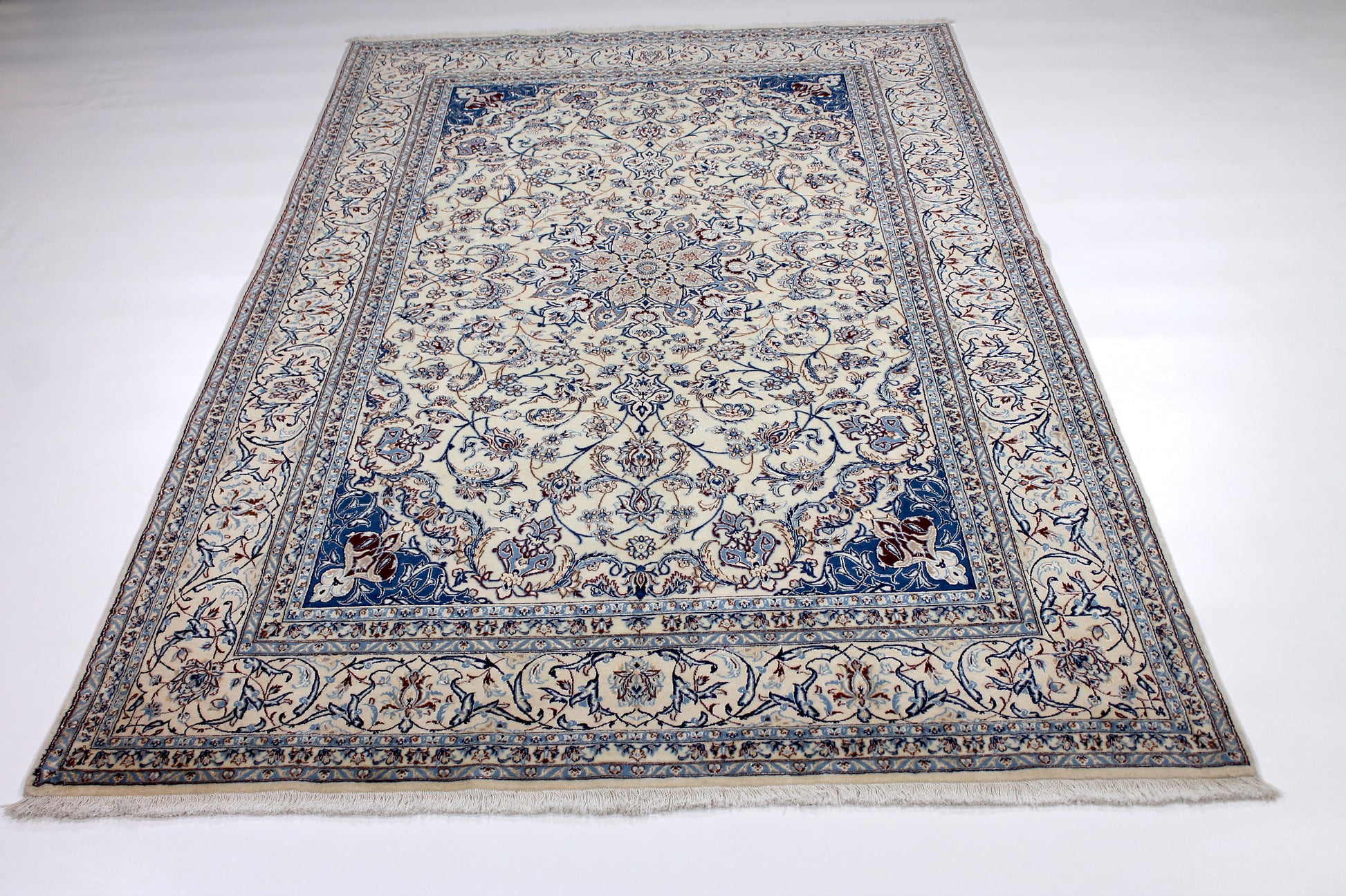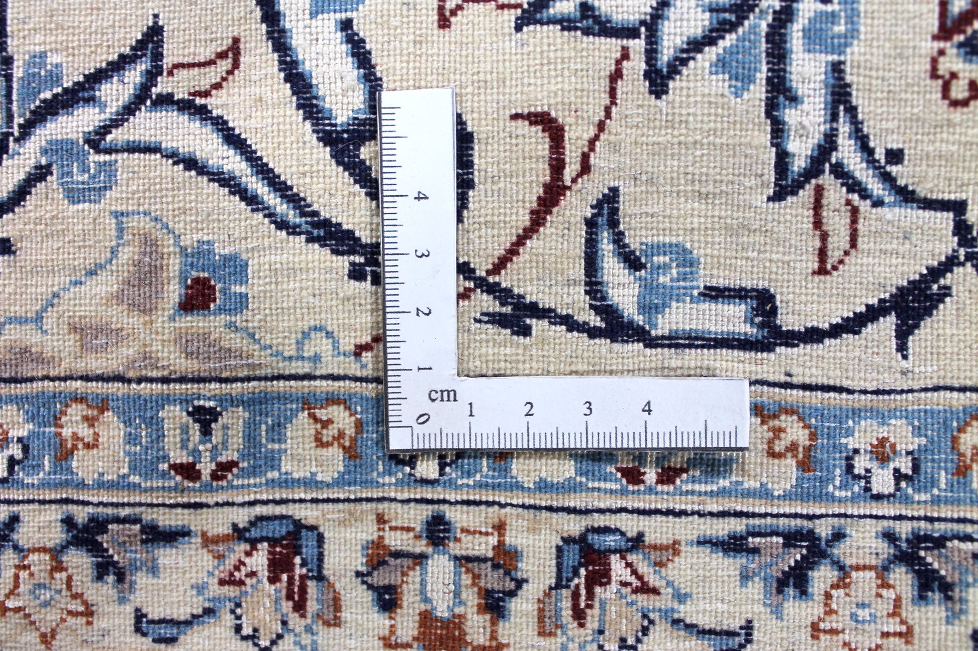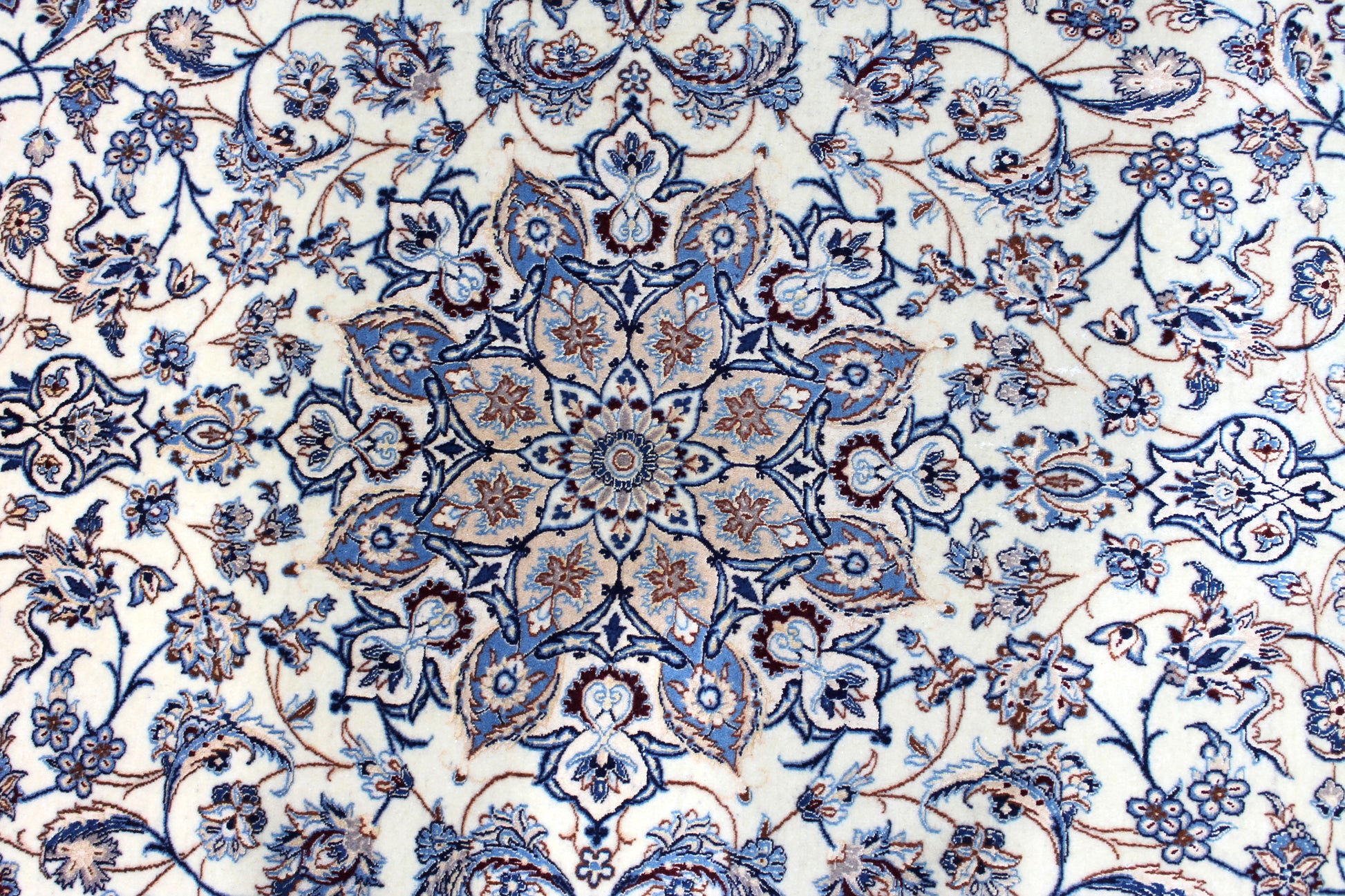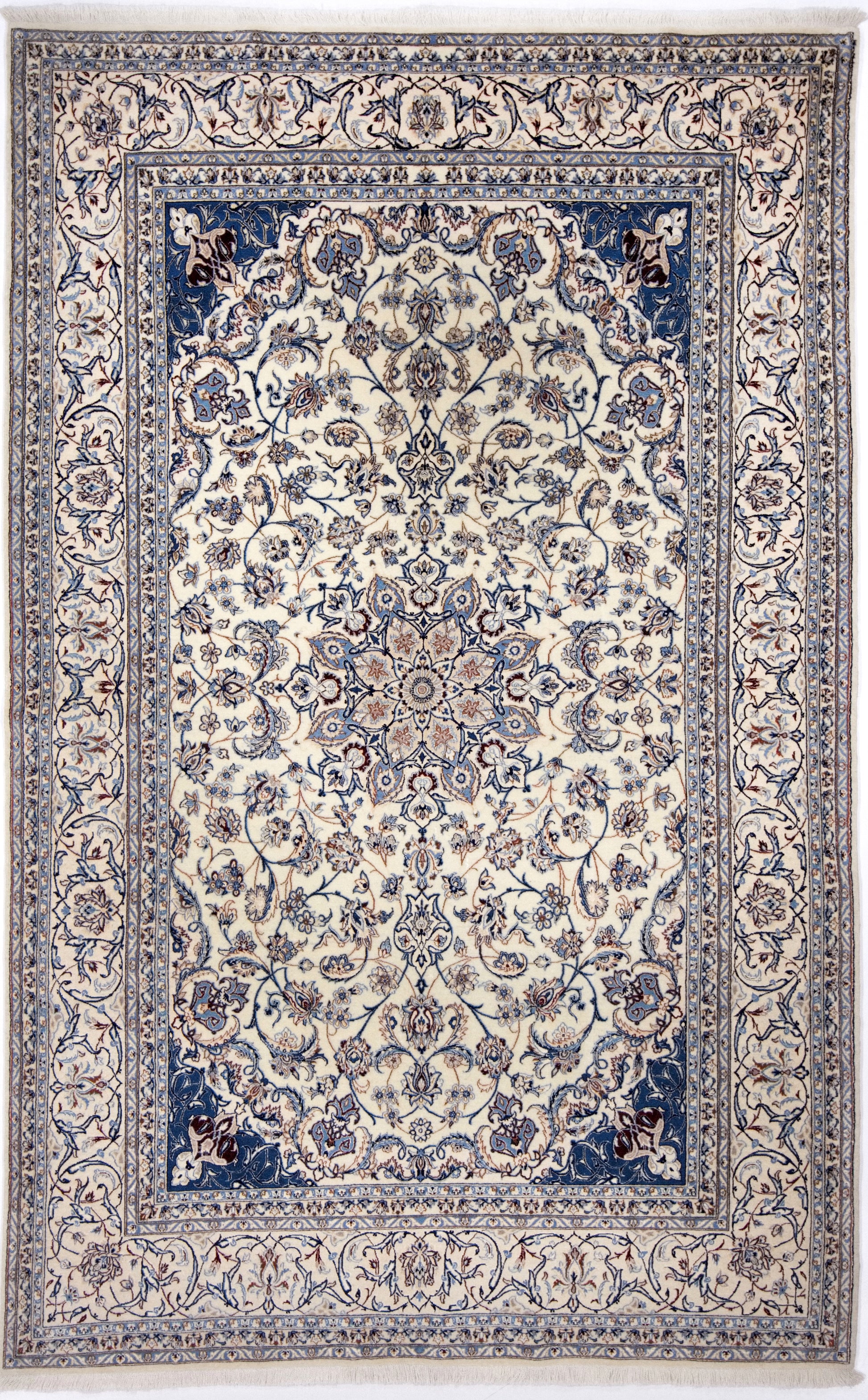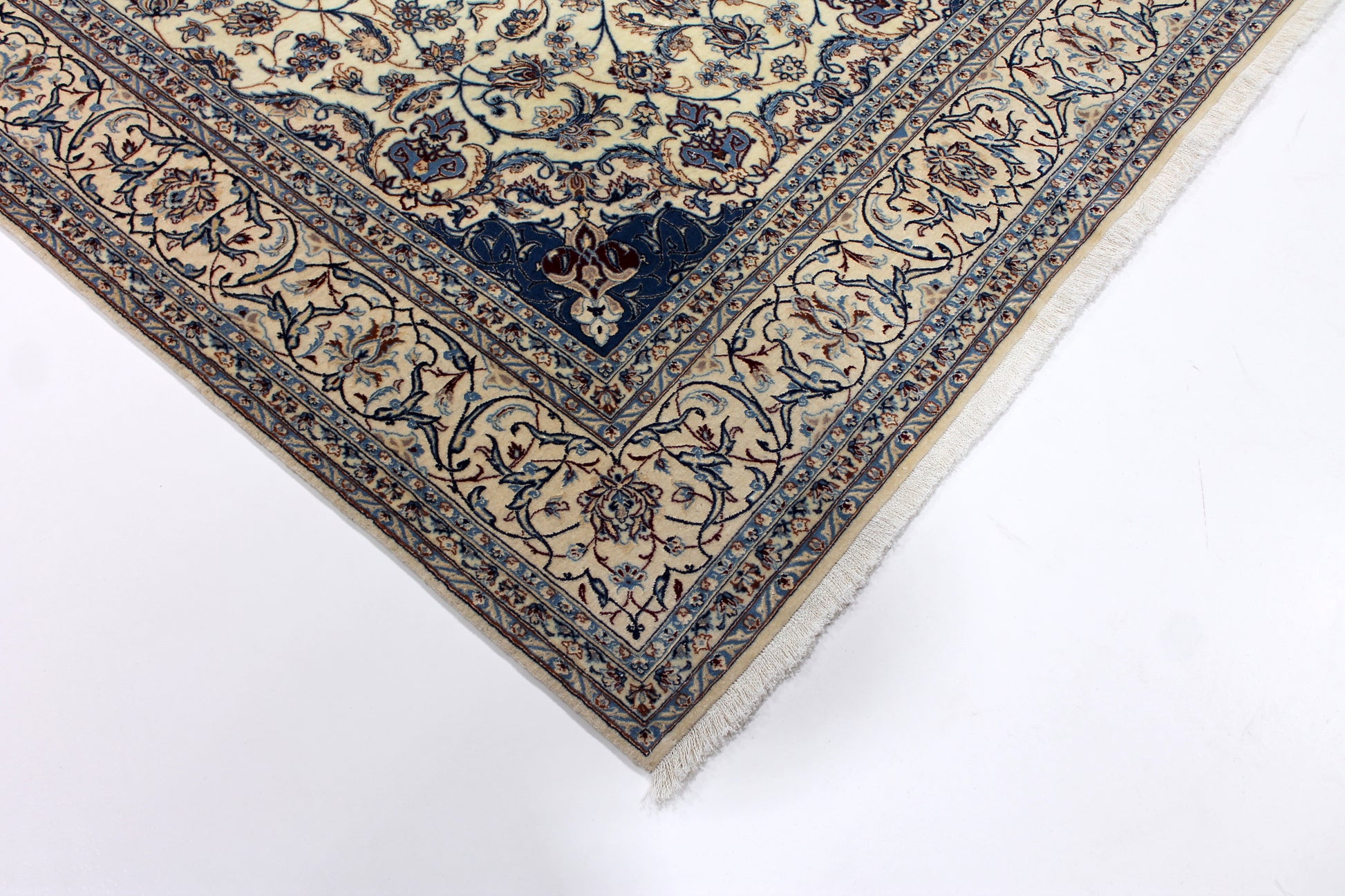 Dieser Nain Teppich wurde aus hochwertiger Schafwolle von Hand geknüpft. Sie ist das am häufigsten verwendete Material in der Teppichknüpfkunst und bringt eine Reihe beeindruckender Eigenschaften mit sich:
