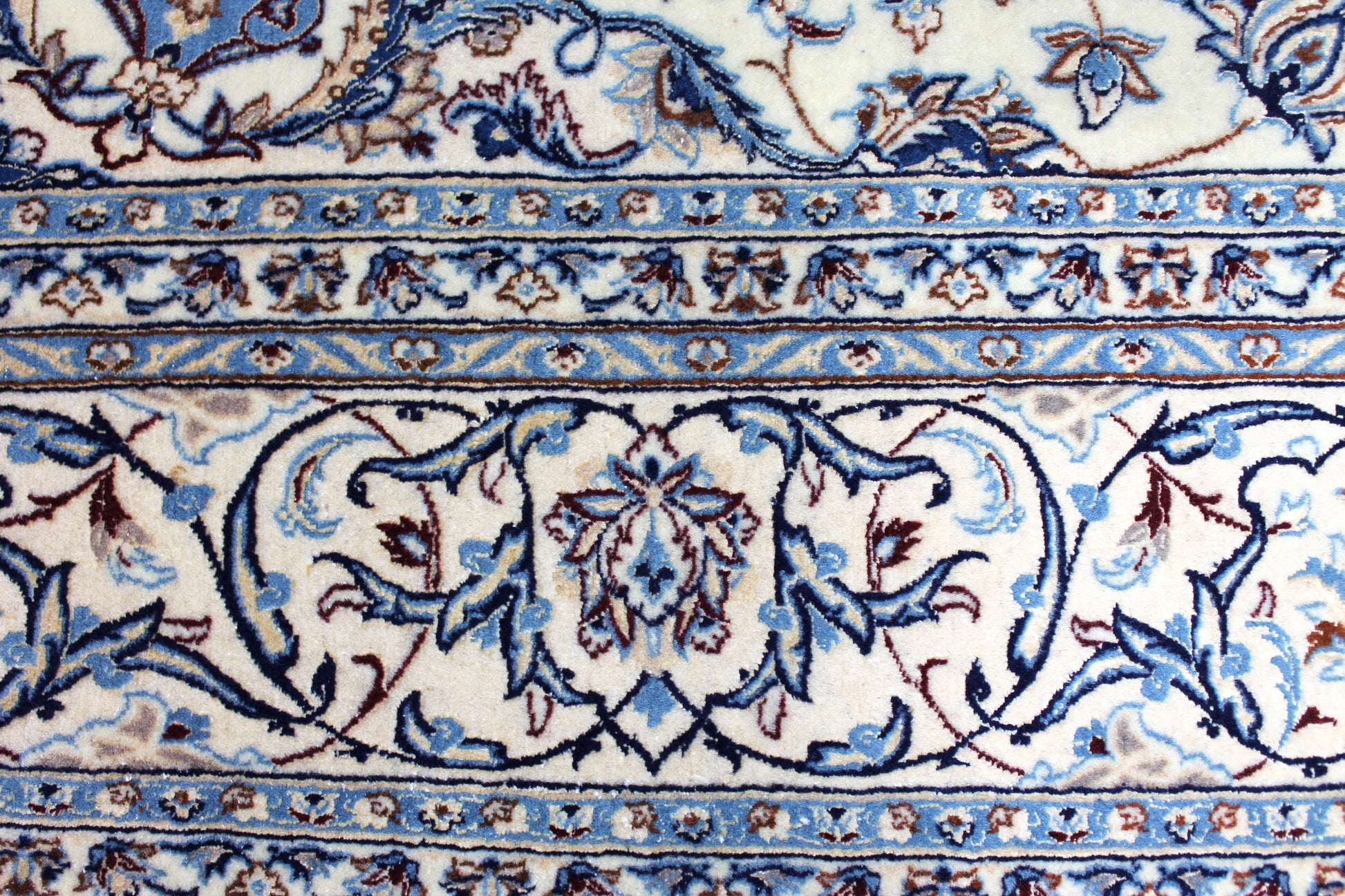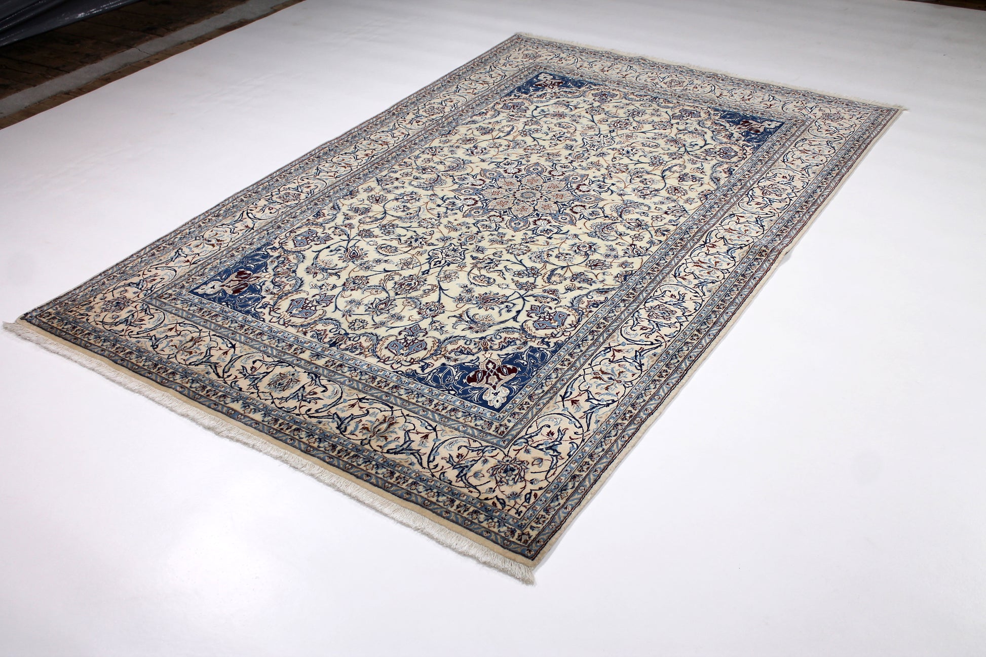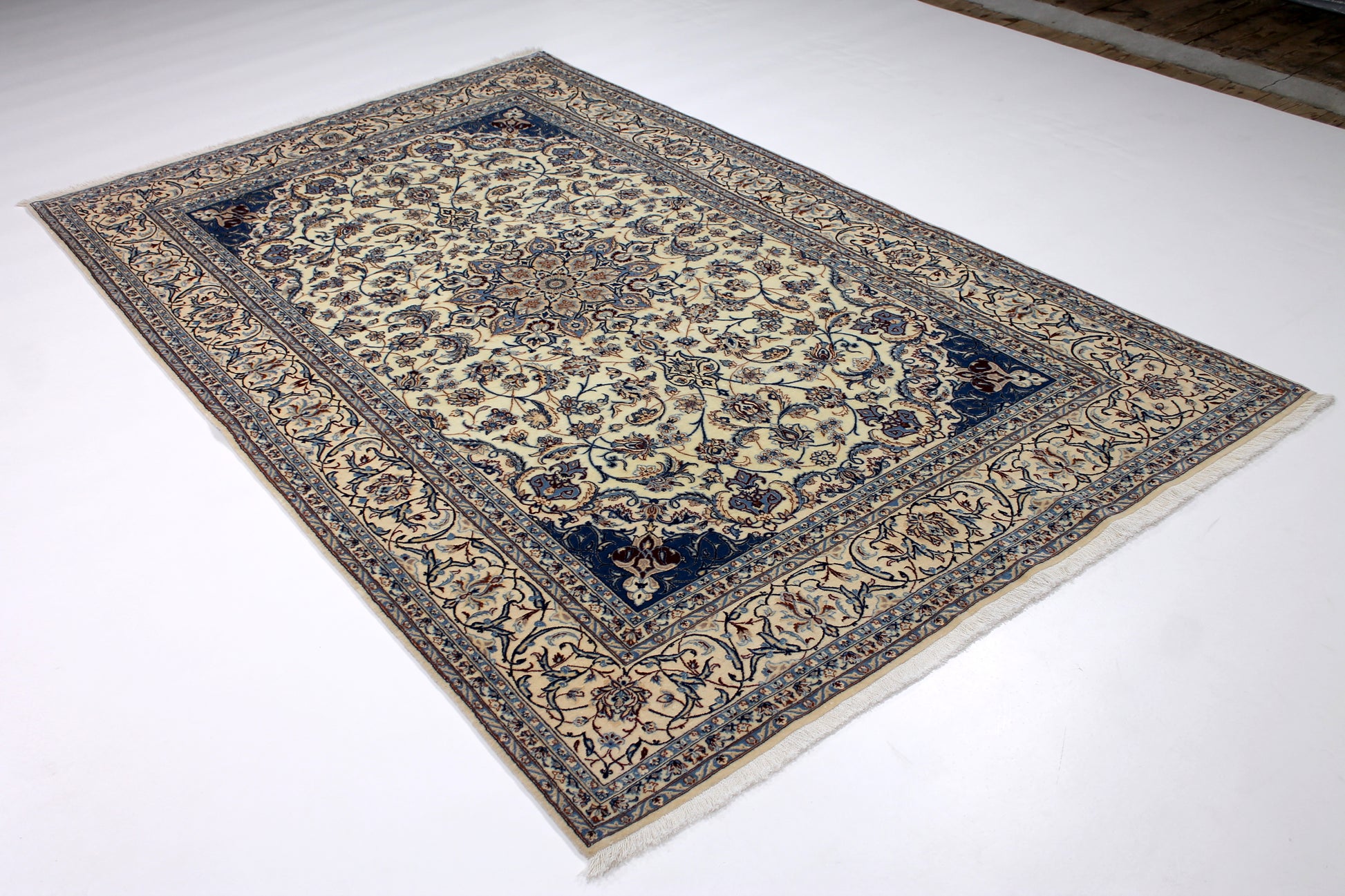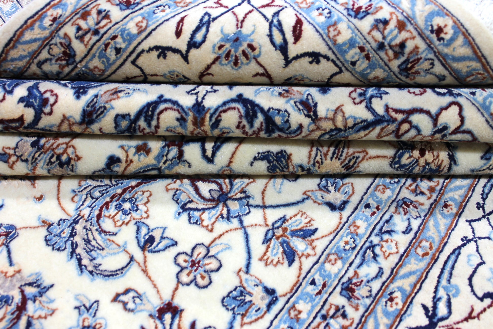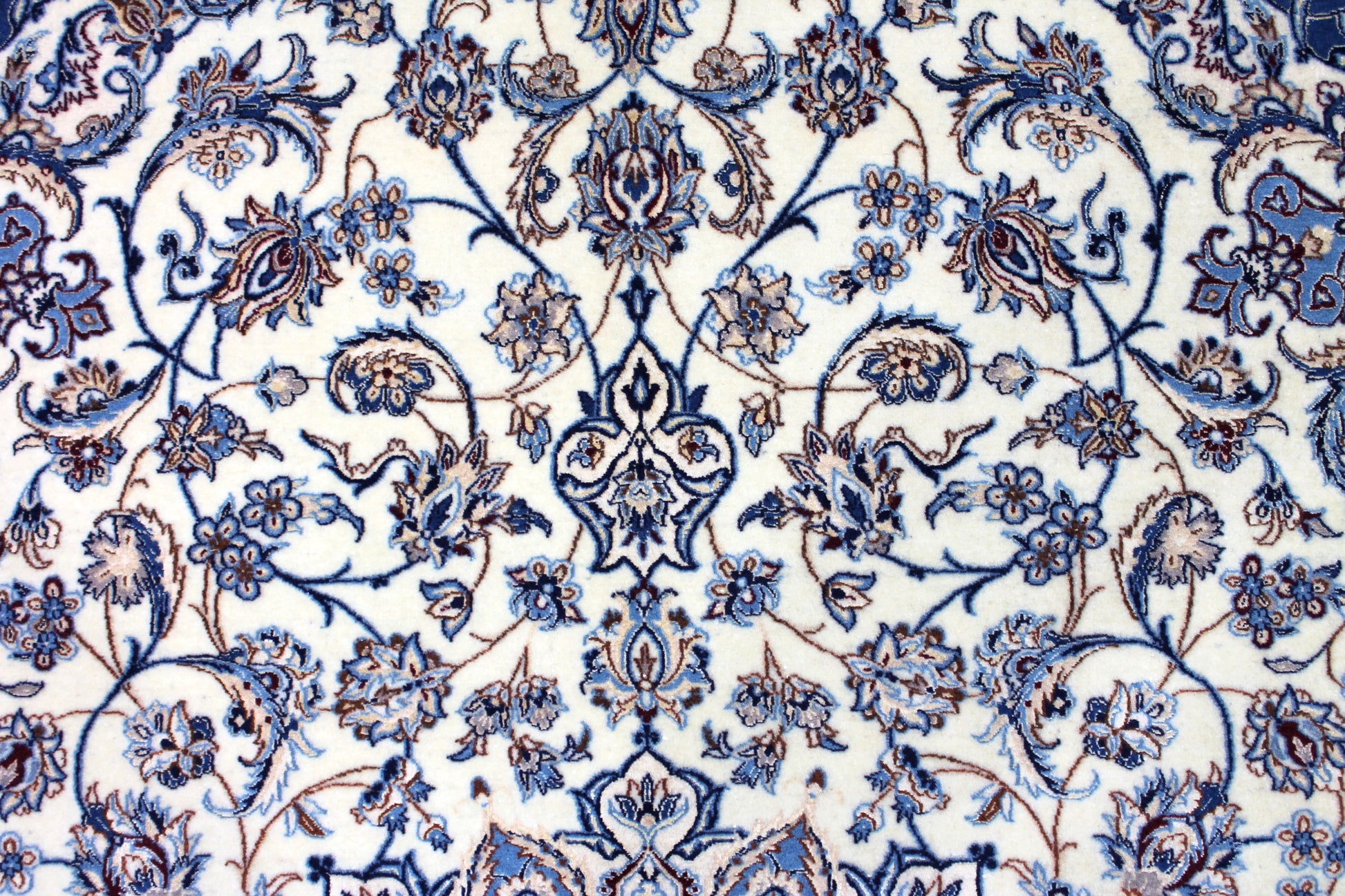 Dieser Nain Teppich wurde aus hochwertiger Schafwolle von Hand geknüpft. Sie ist das am häufigsten verwendete Material in der Teppichknüpfkunst und bringt eine Reihe beeindruckender Eigenschaften mit sich: