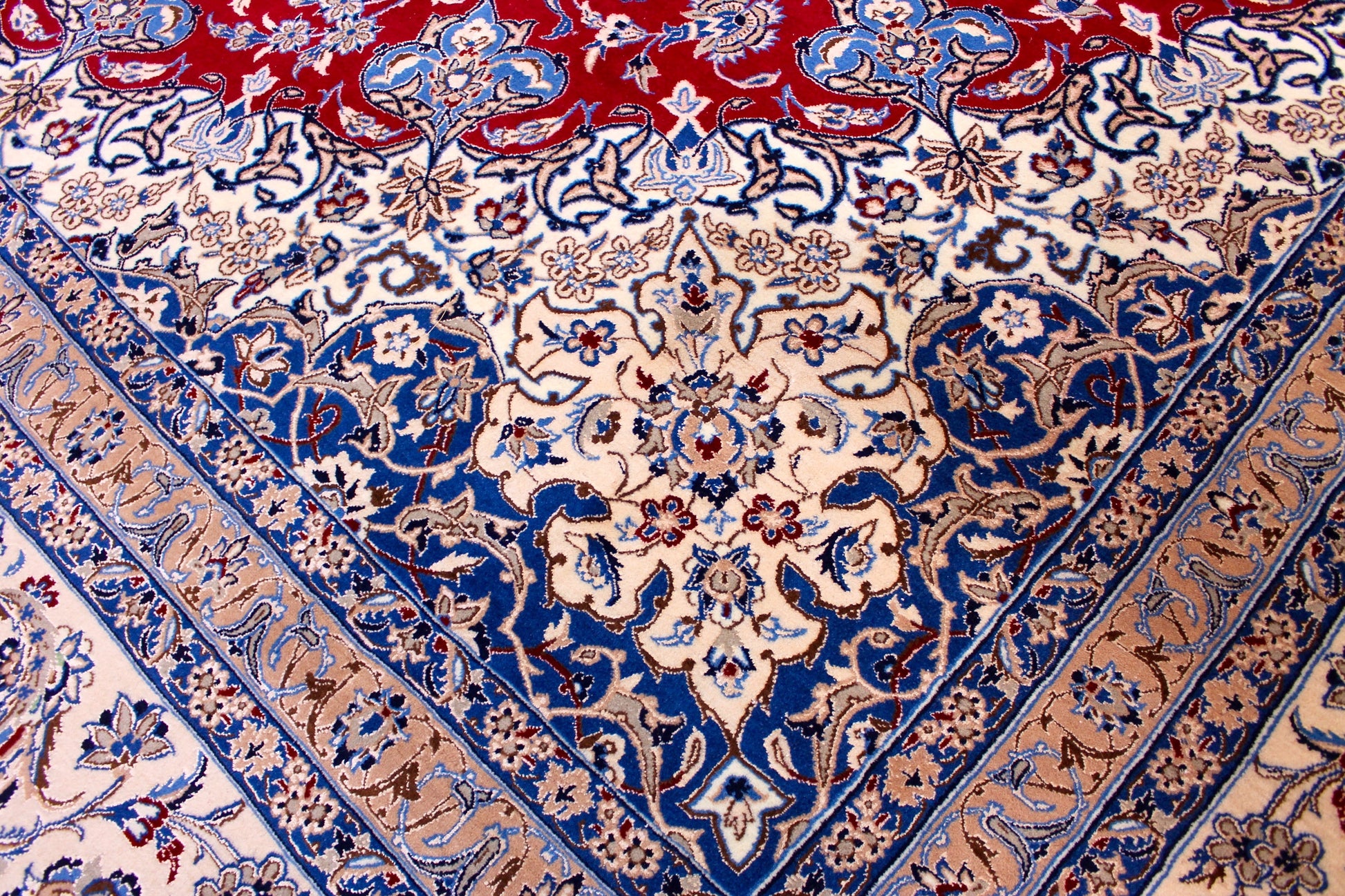 Hinweis zu den Fotos: Die Helligkeit der Teppichfarben wird je nach Blickwinkel unterschiedlich wahrgenommen.