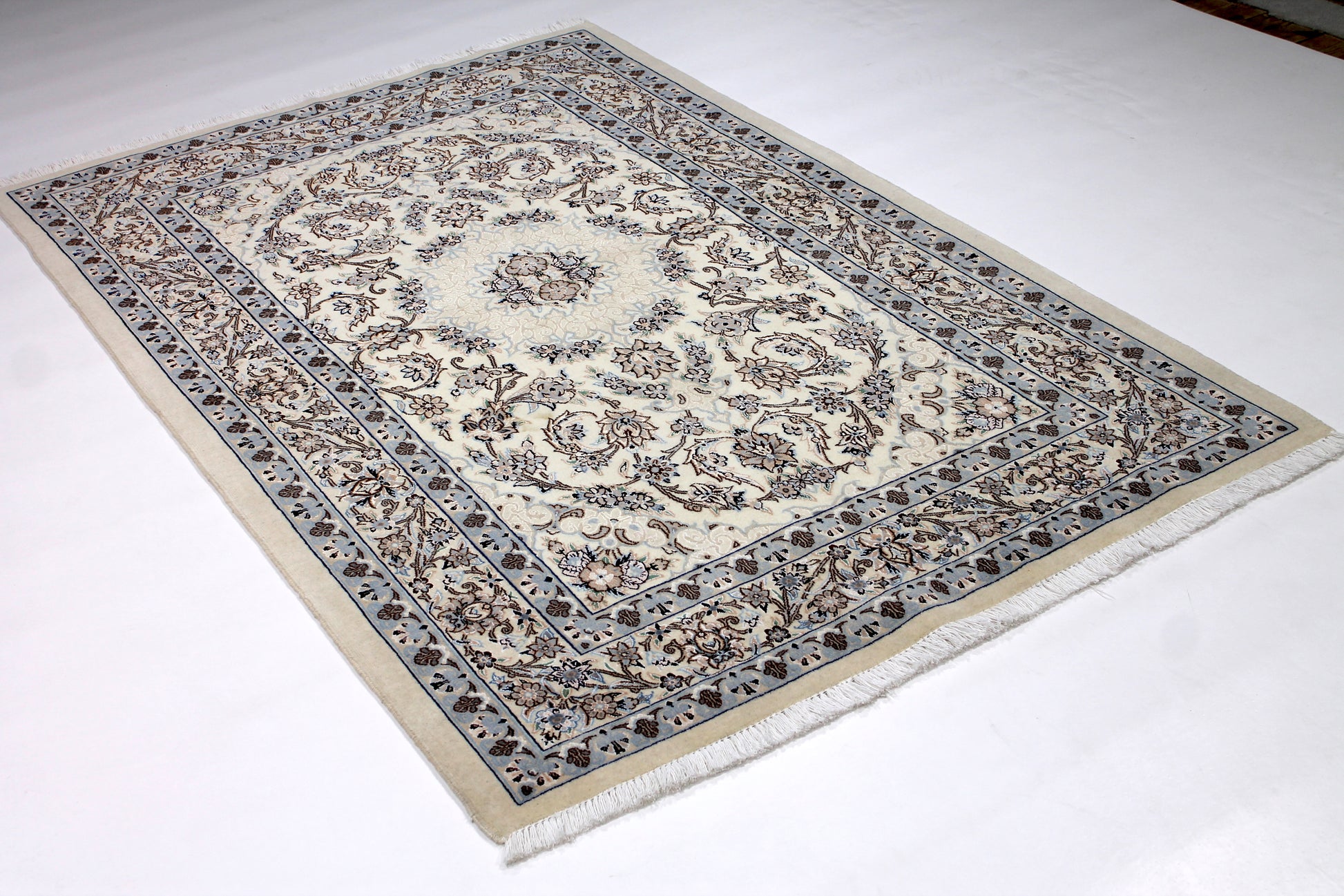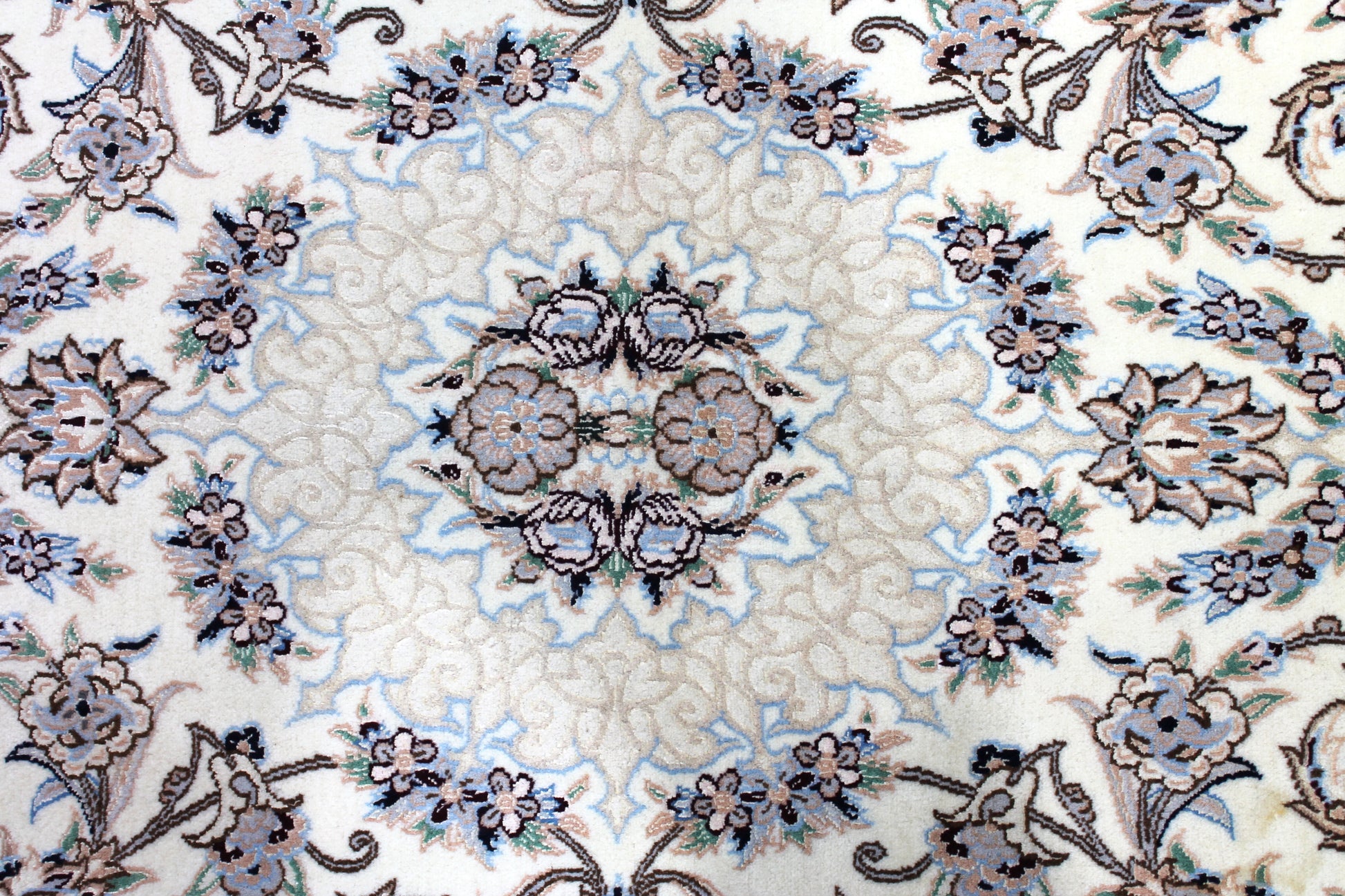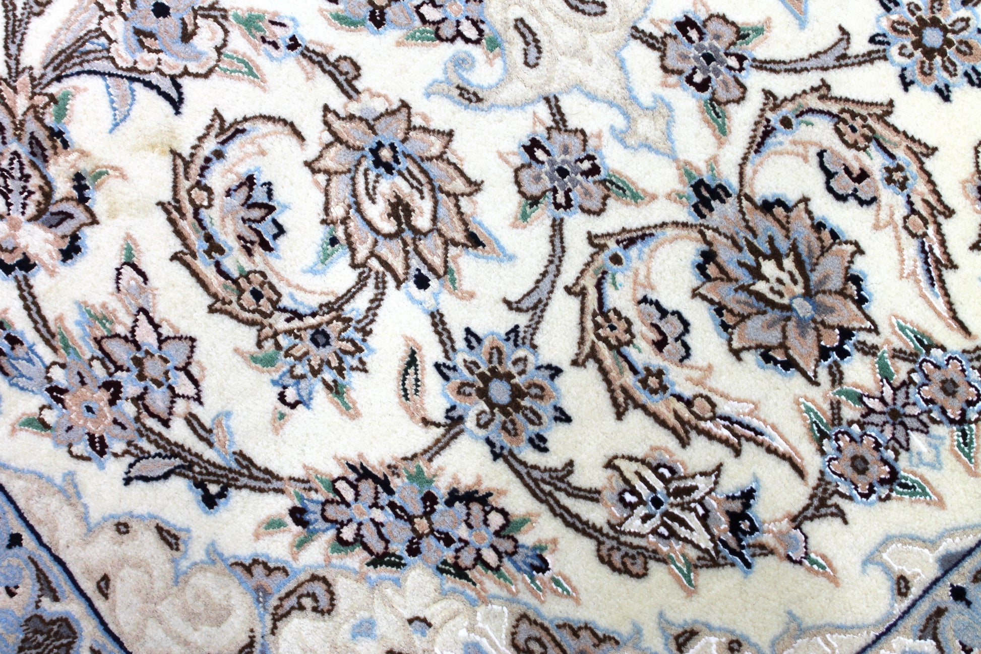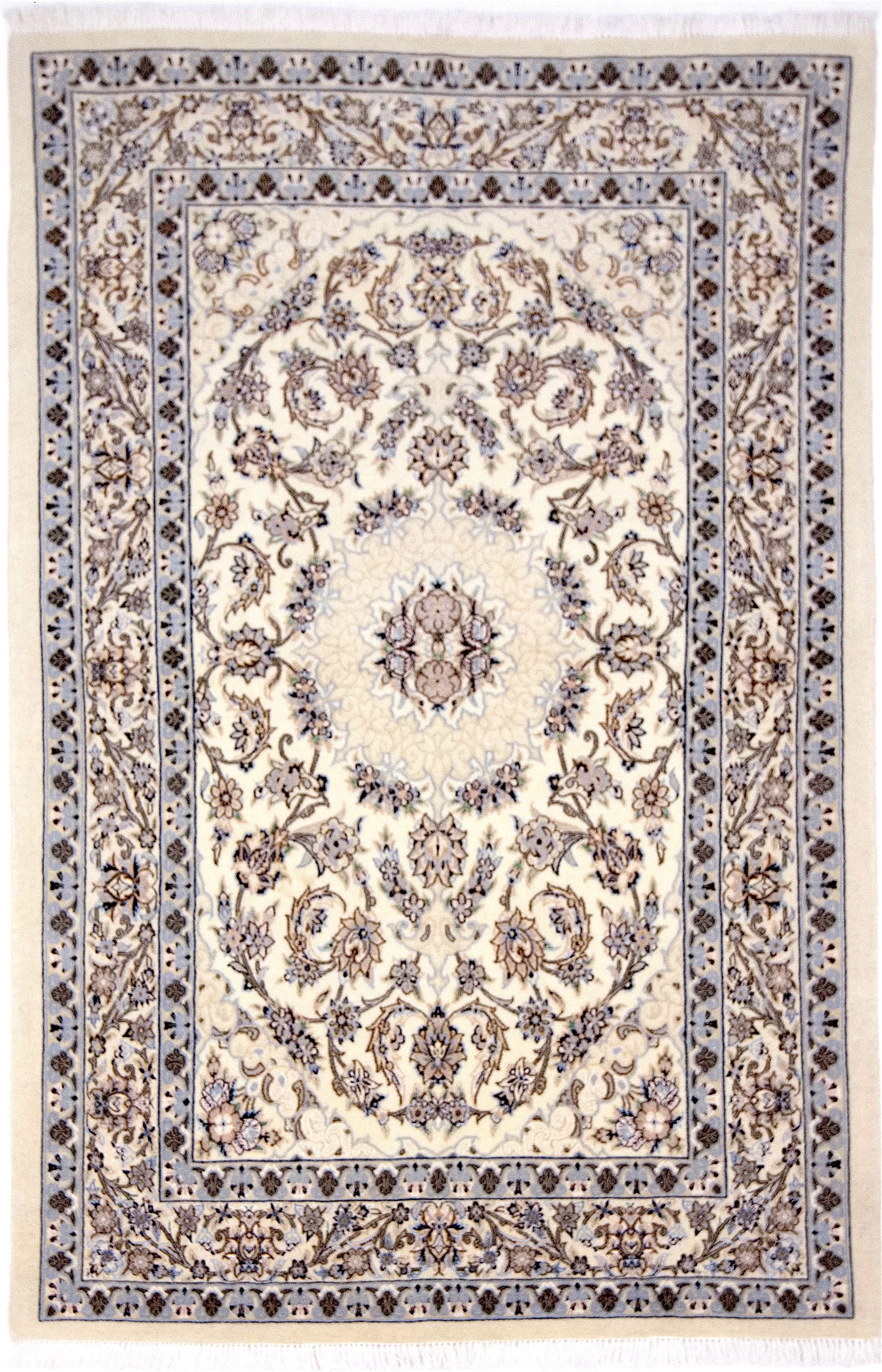Der Nain ist weltberühmt. Durch seine vorwiegend helle Farbgebung in Elfenbein meist in Kombination mit Blautönen hebt er sich von vielen klassischen Perserteppichen ab.