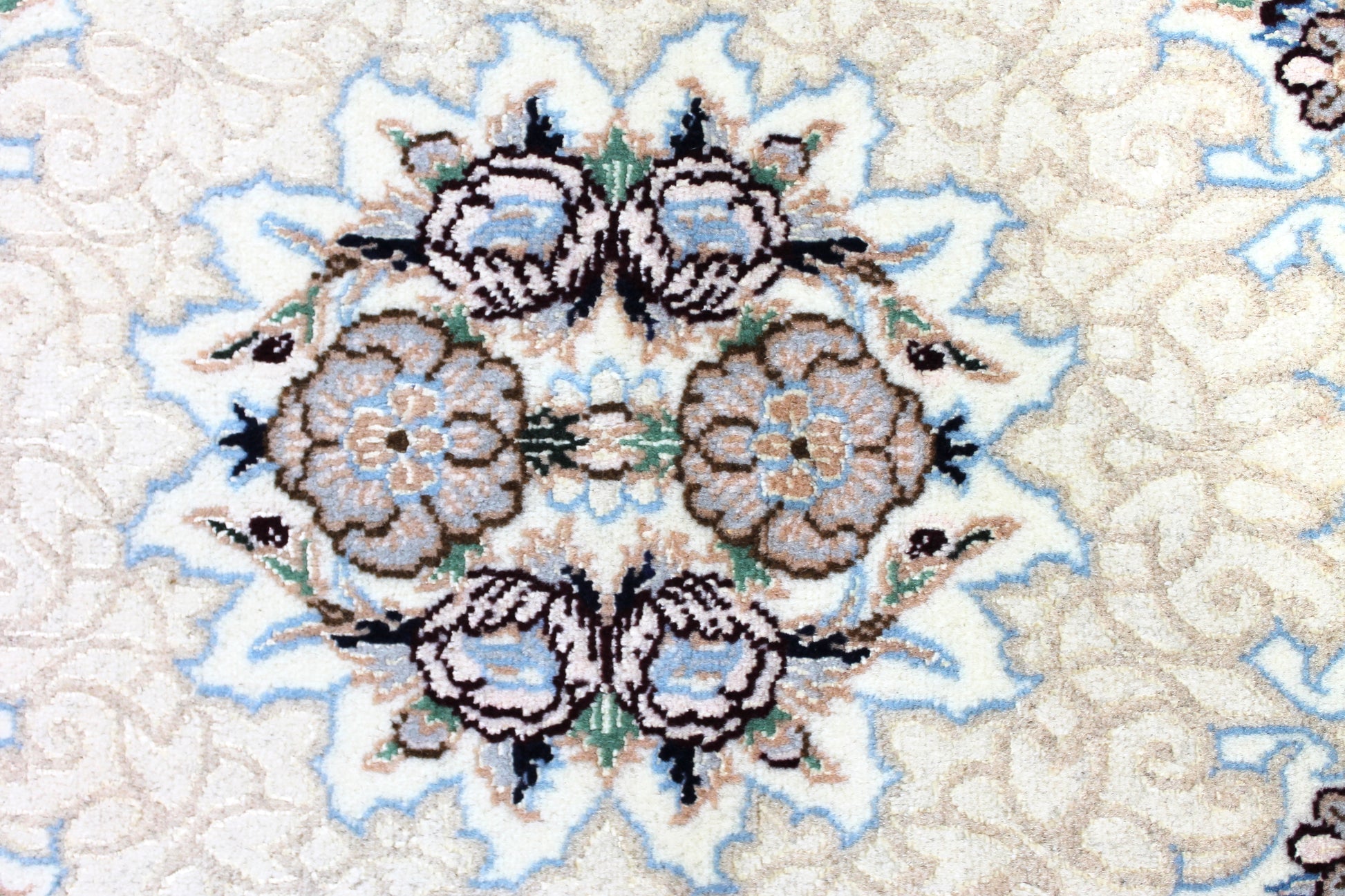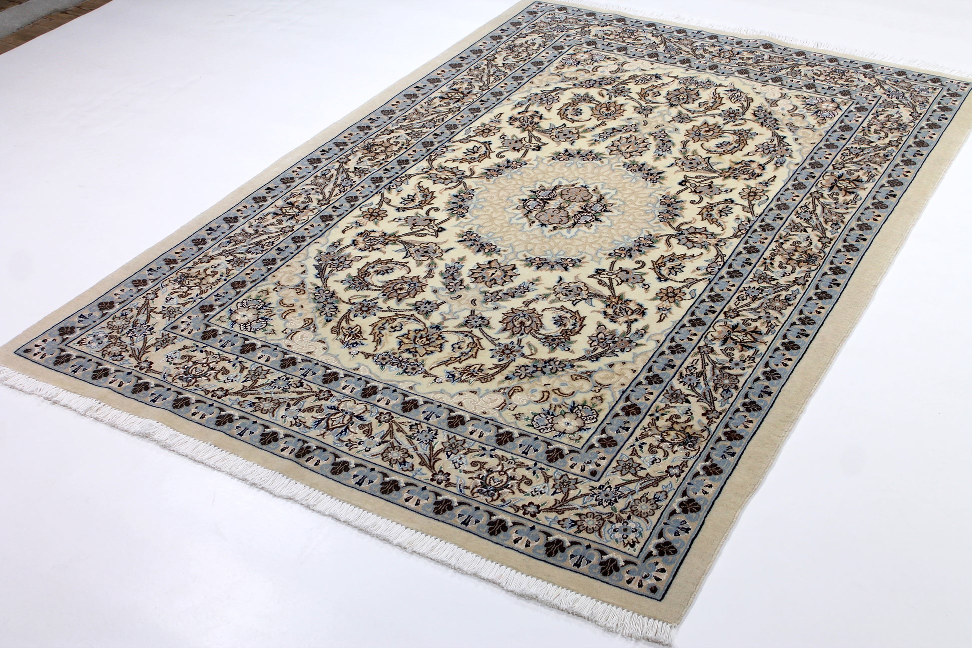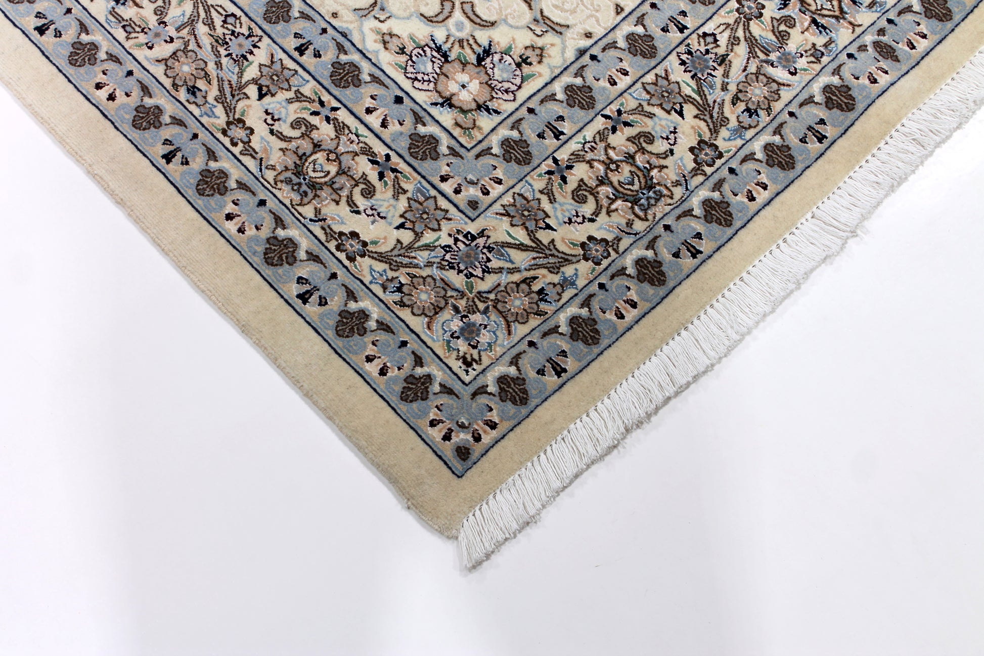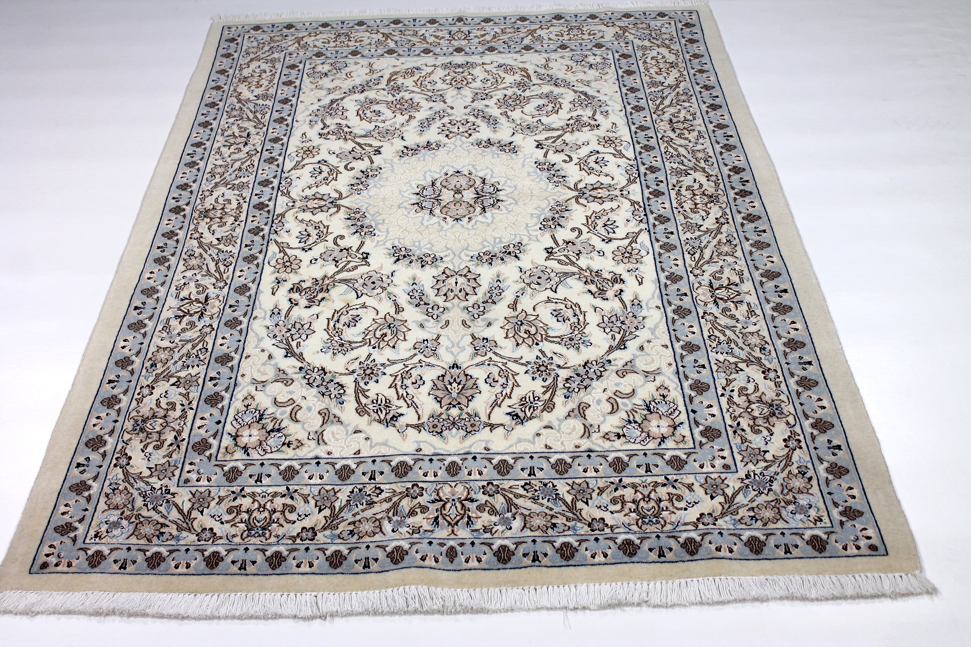 Der Nain ist weltberühmt. Durch seine vorwiegend helle Farbgebung in Elfenbein meist in Kombination mit Blautönen hebt er sich von vielen klassischen Perserteppichen ab.