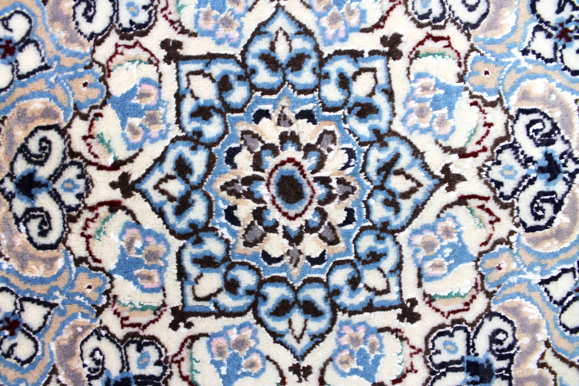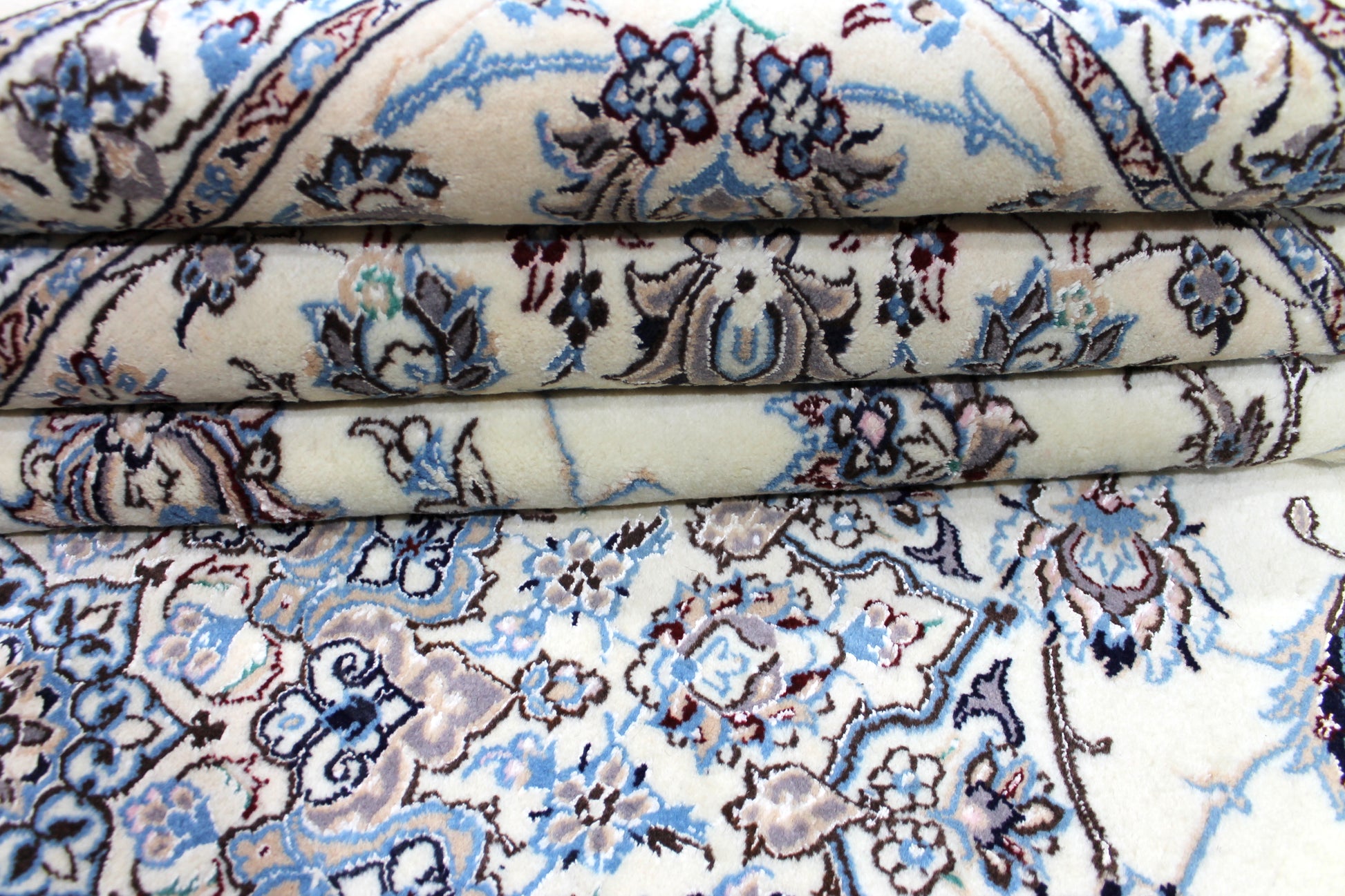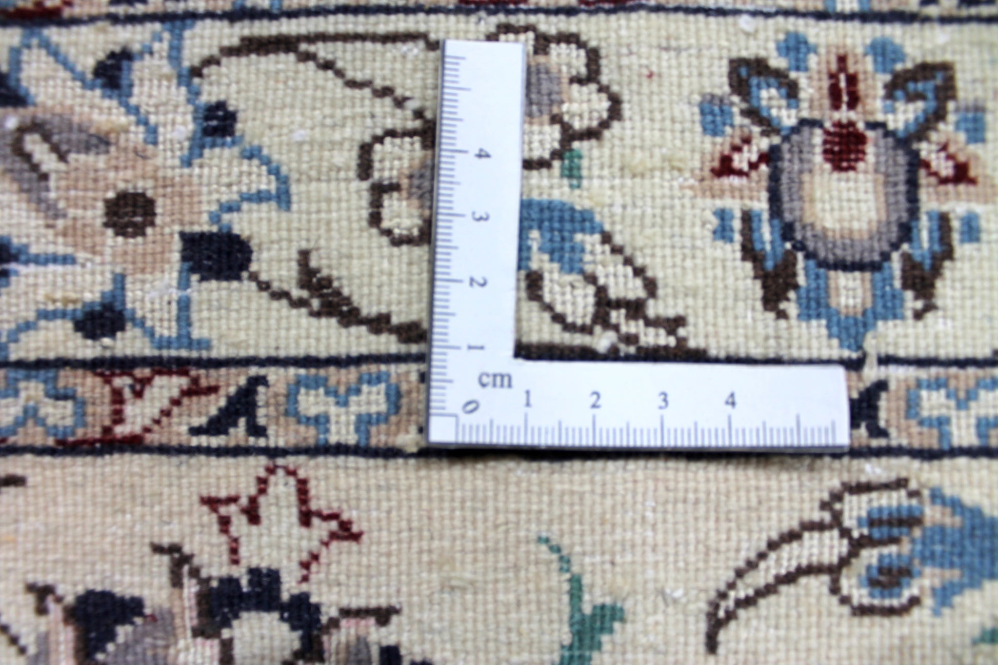 Dieser Nain Teppich wurde aus hochwertiger Schafwolle von Hand geknüpft. Sie ist das am häufigsten verwendete Material in der Teppichknüpfkunst und bringt eine Reihe beeindruckender Eigenschaften mit sich: