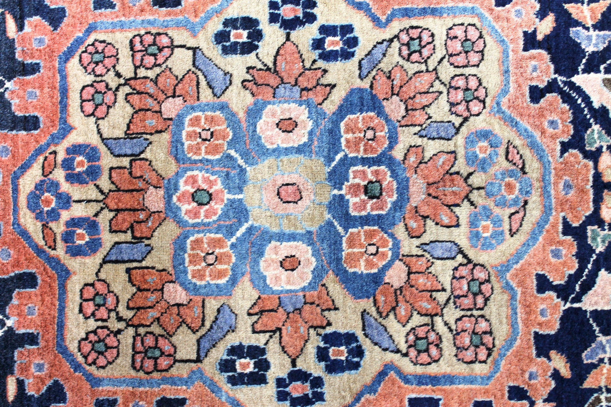 Dieser Sarough wurde aus hochwertiger Schafwolle von Hand geknüpft. Sie ist das am häufigsten verwendete Material in der Teppichknüpfkunst und bringt eine Reihe beeindruckender Eigenschaften mit sich: