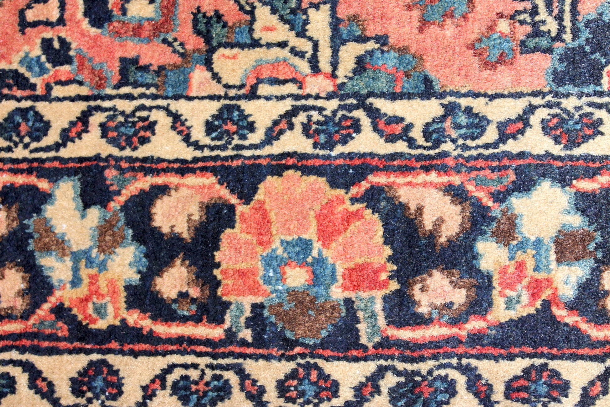 Dieser Sarough wurde aus hochwertiger Schafwolle von Hand geknüpft. Sie ist das am häufigsten verwendete Material in der Teppichknüpfkunst und bringt eine Reihe beeindruckender Eigenschaften mit sich: