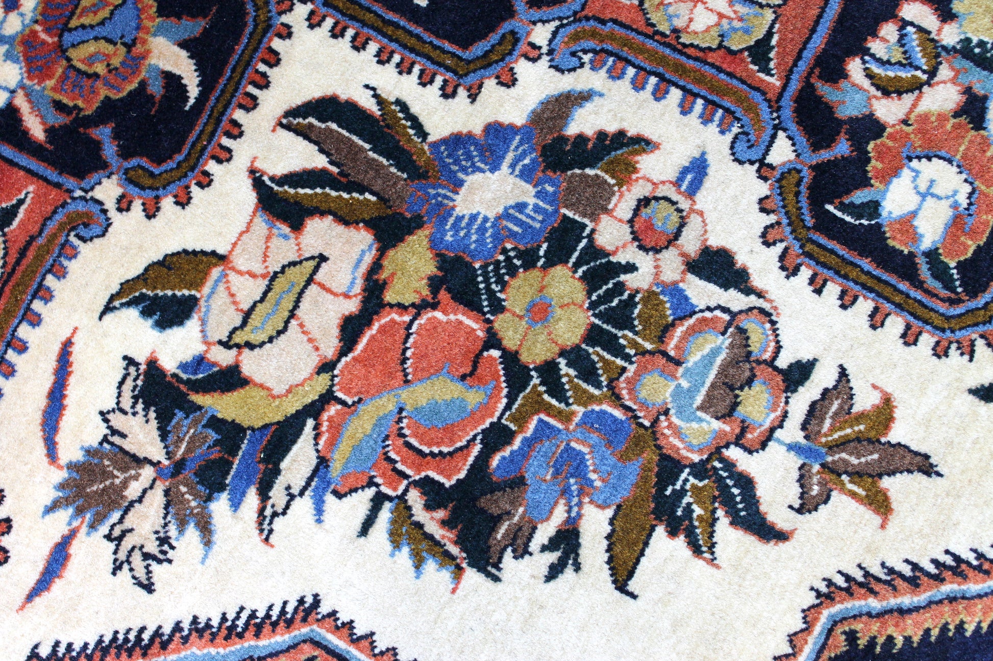 Dieser Senneh Perserteppich wurde aus hochwertiger Schafwolle von Hand geknüpft. Sie ist das am häufigsten verwendete Material in der Teppichknüpfkunst und bringt eine Reihe beeindruckender Eigenschaften mit sich: