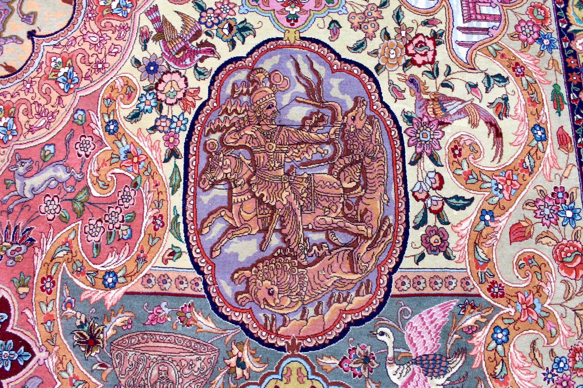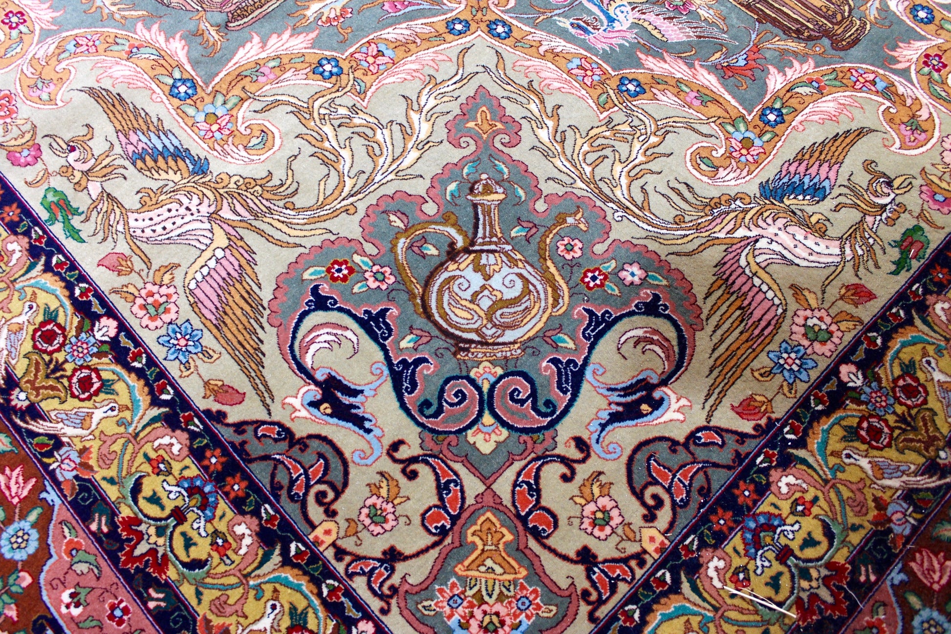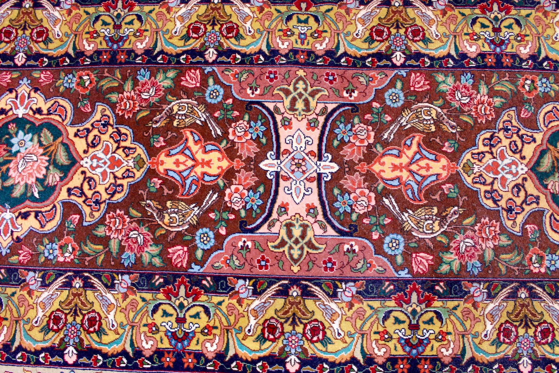 Dieser Perserteppich aus Täbriz wurde aus hochwertiger Schafwolle von Hand geknüpft. Sie ist das am häufigsten verwendete Material in der Teppichknüpfkunst und bringt eine Reihe beeindruckender Eigenschaften mit sich: