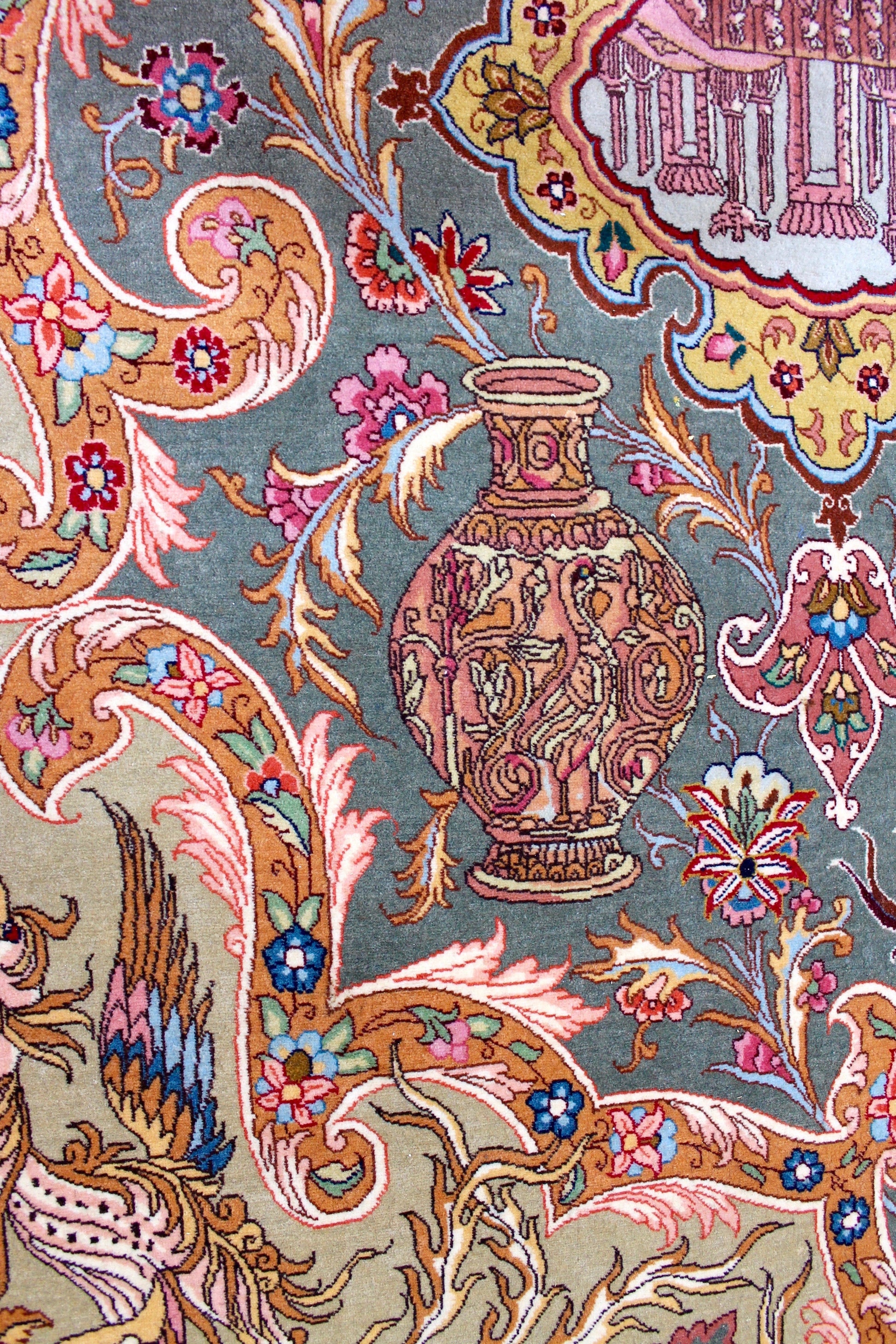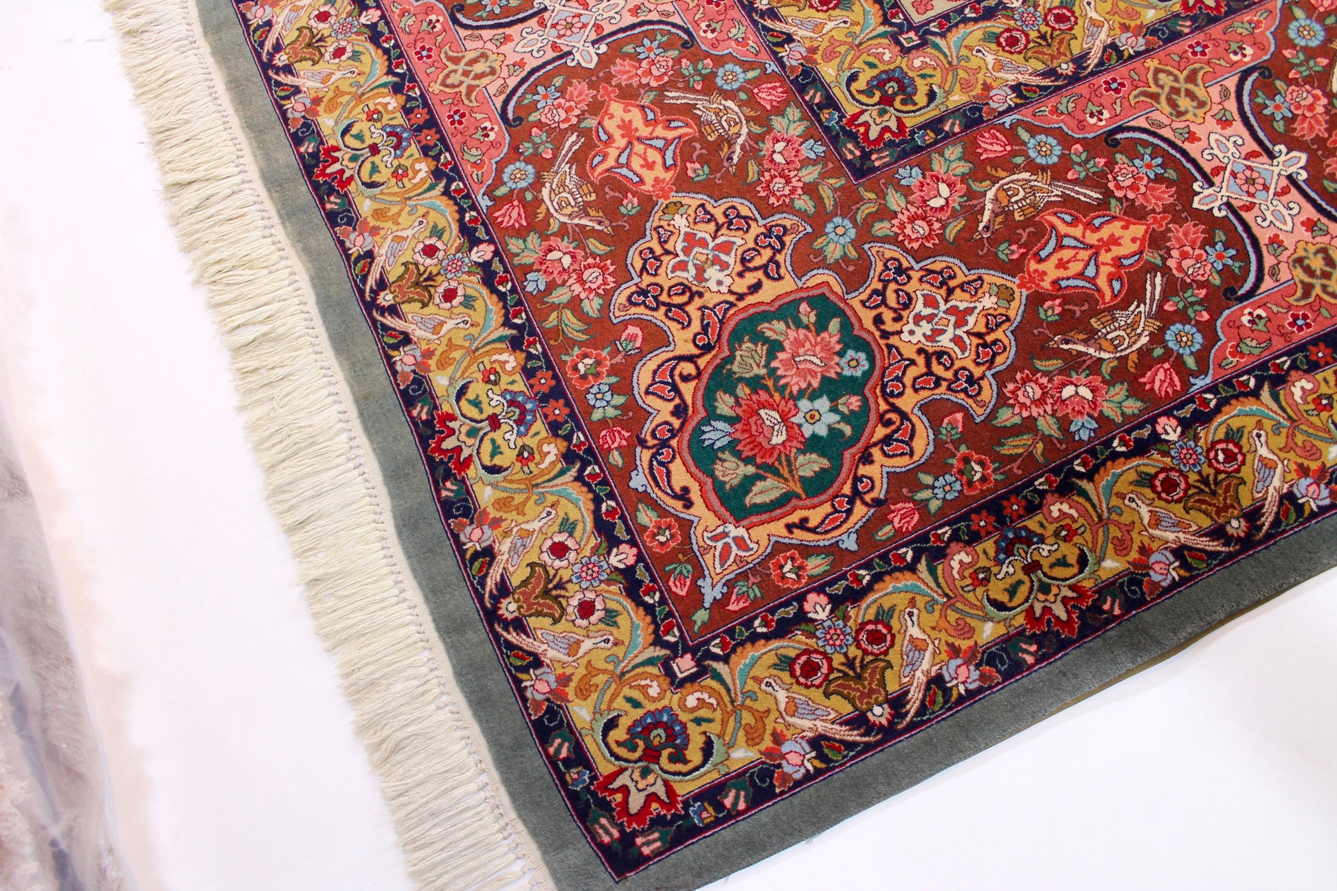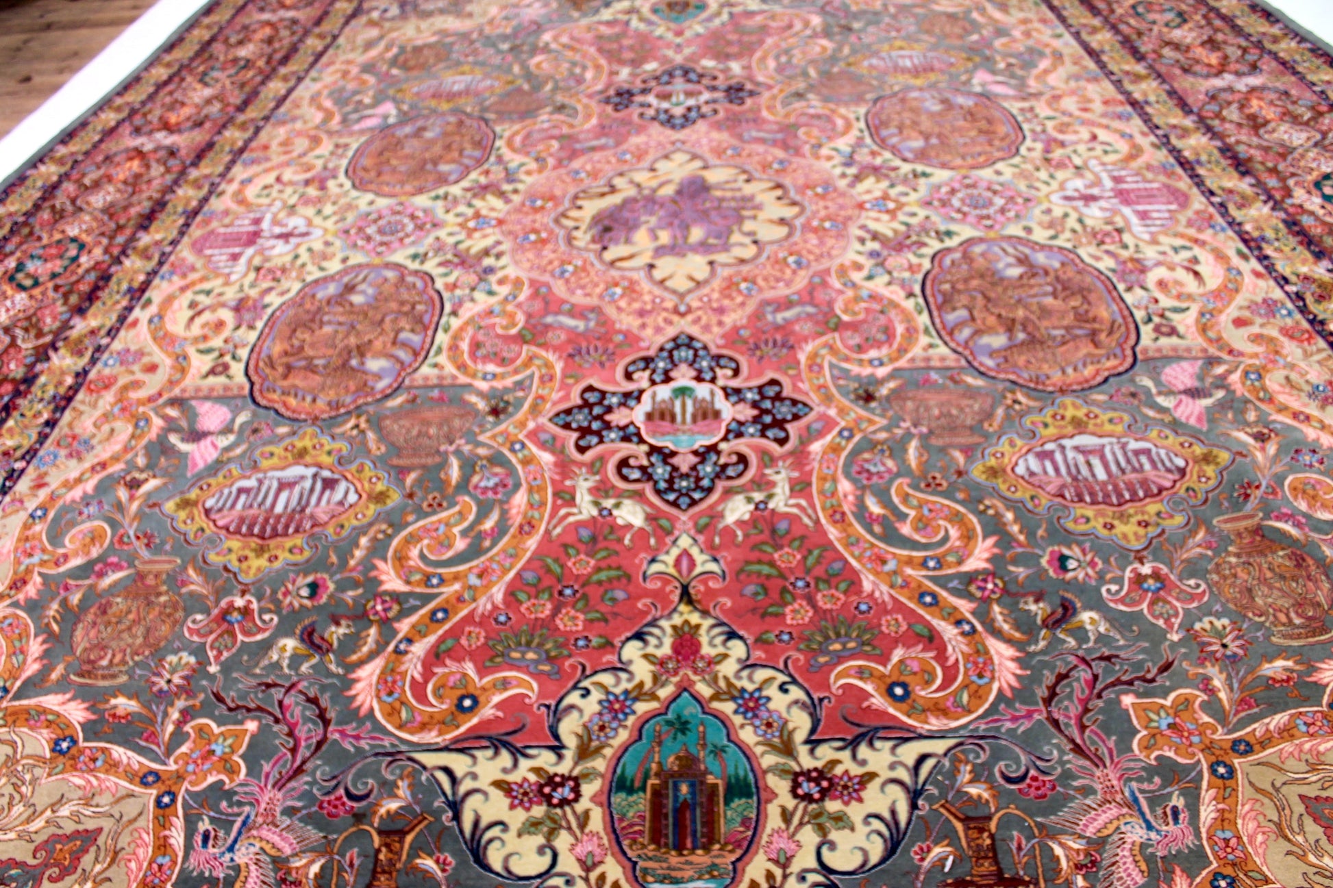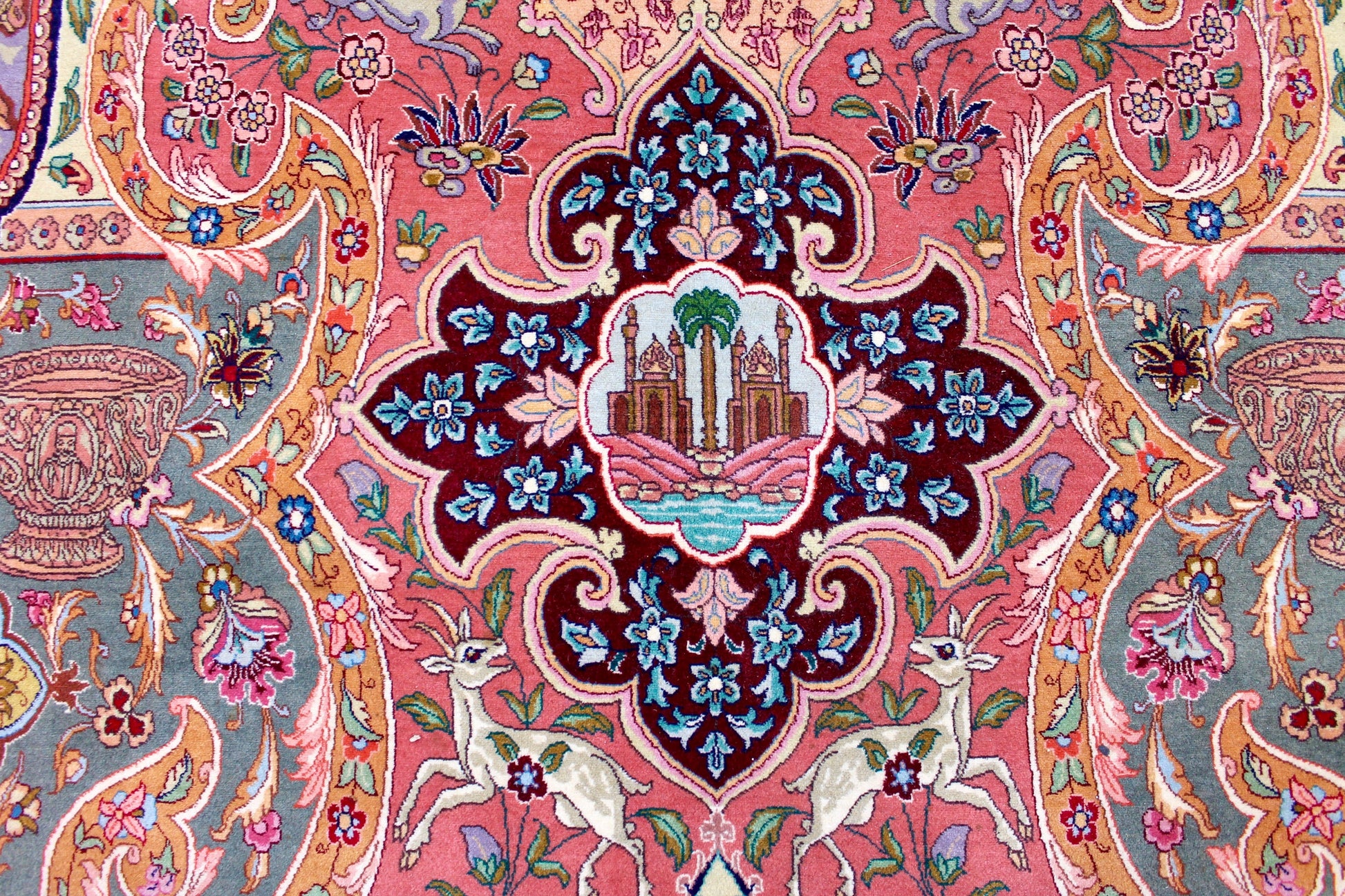 Dieser Perserteppich aus Täbriz wurde aus hochwertiger Schafwolle von Hand geknüpft. Sie ist das am häufigsten verwendete Material in der Teppichknüpfkunst und bringt eine Reihe beeindruckender Eigenschaften mit sich: