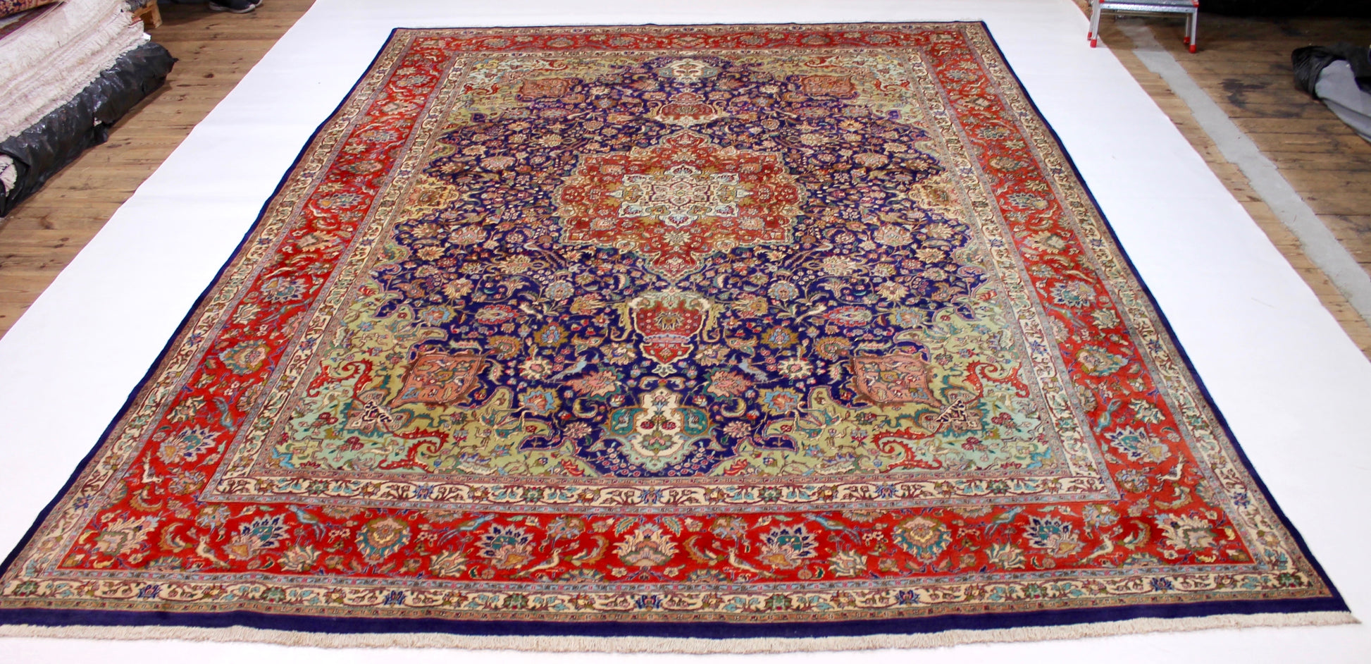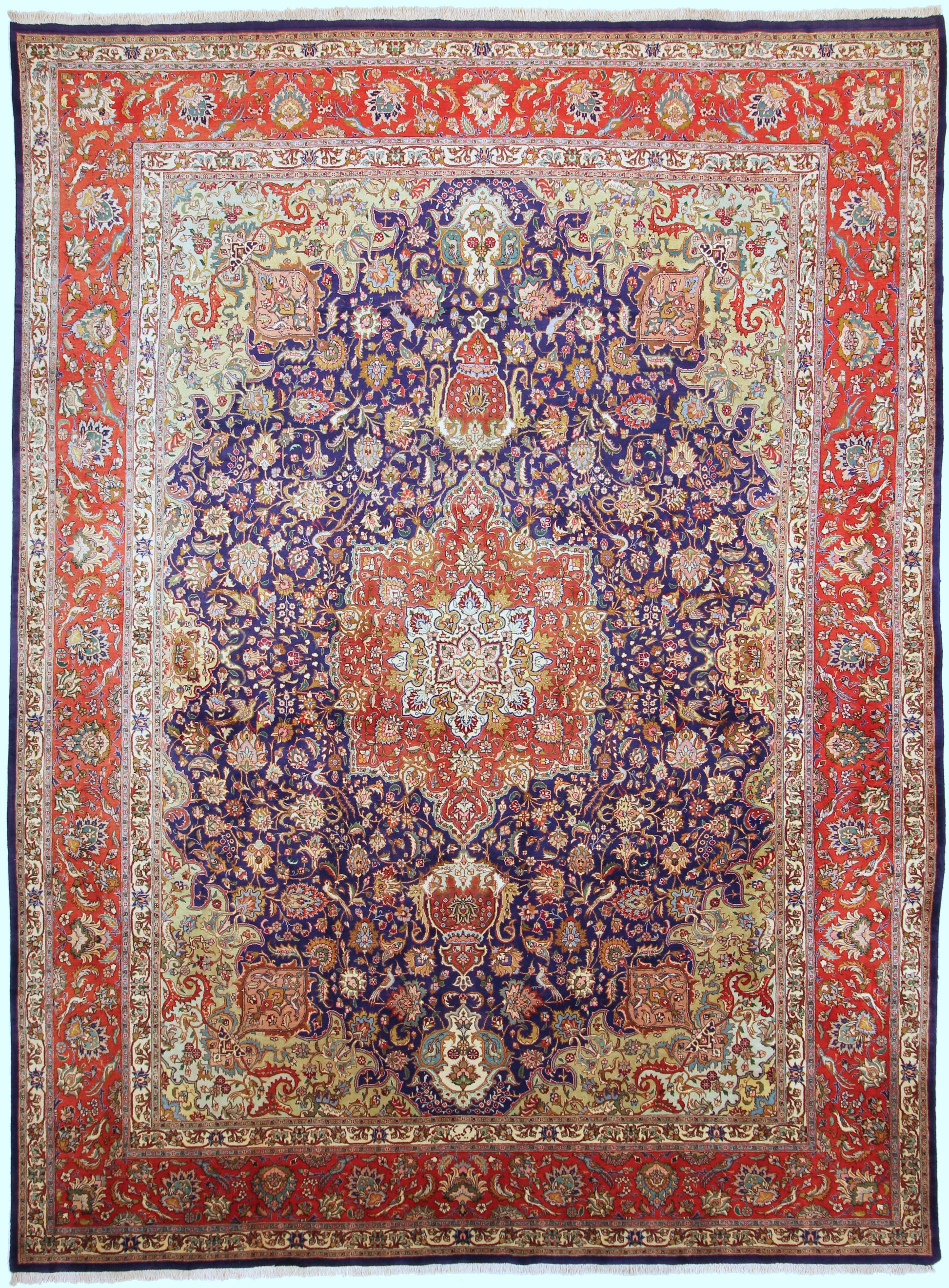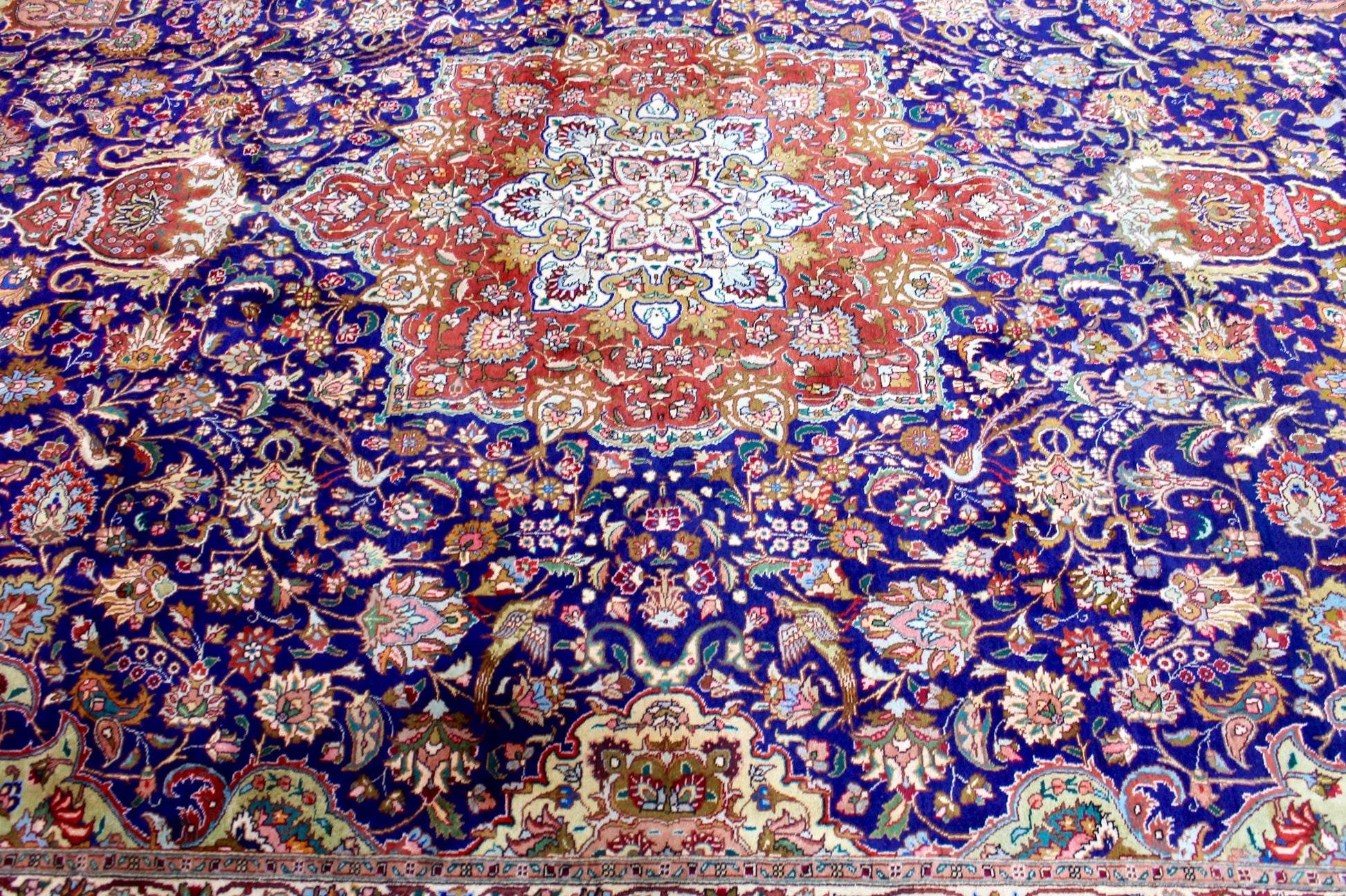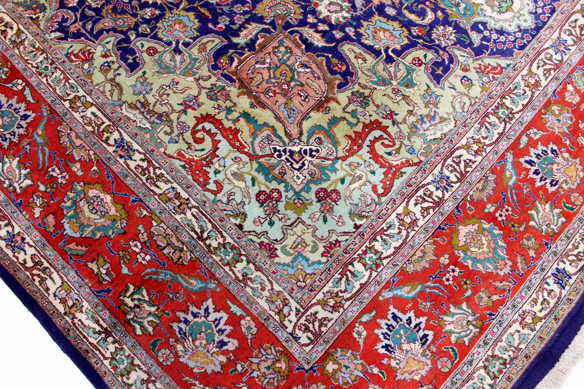 Dieser Perserteppich aus Täbriz wurde aus hochwertiger Schafwolle von Hand geknüpft. Sie ist das am häufigsten verwendete Material in der Teppichknüpfkunst und bringt eine Reihe beeindruckender Eigenschaften mit sich: