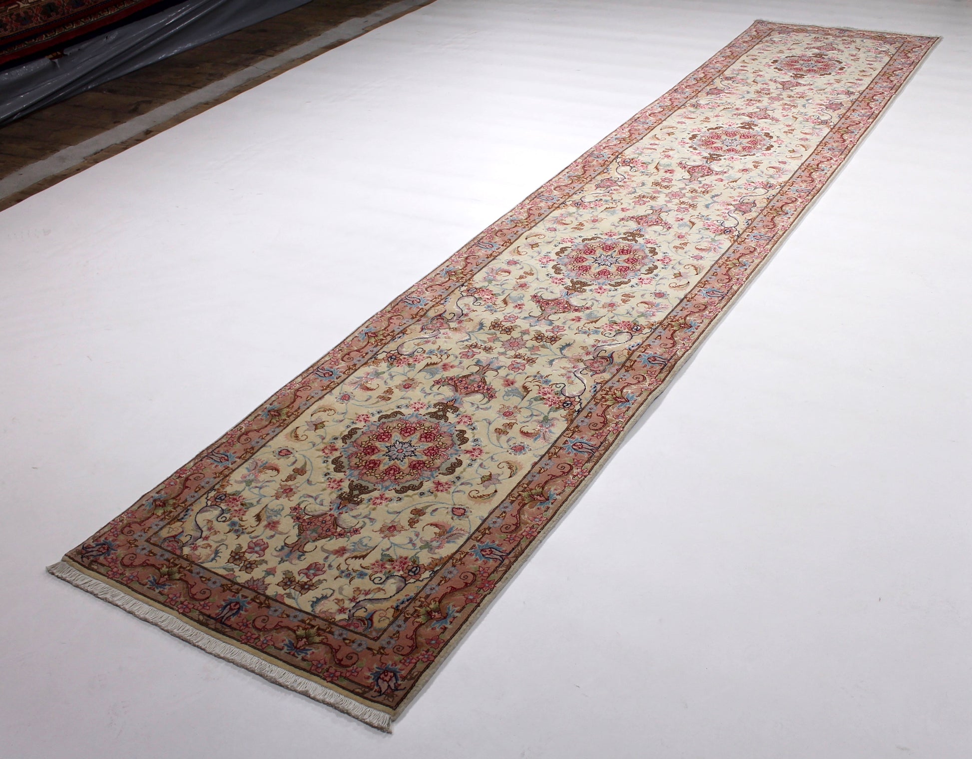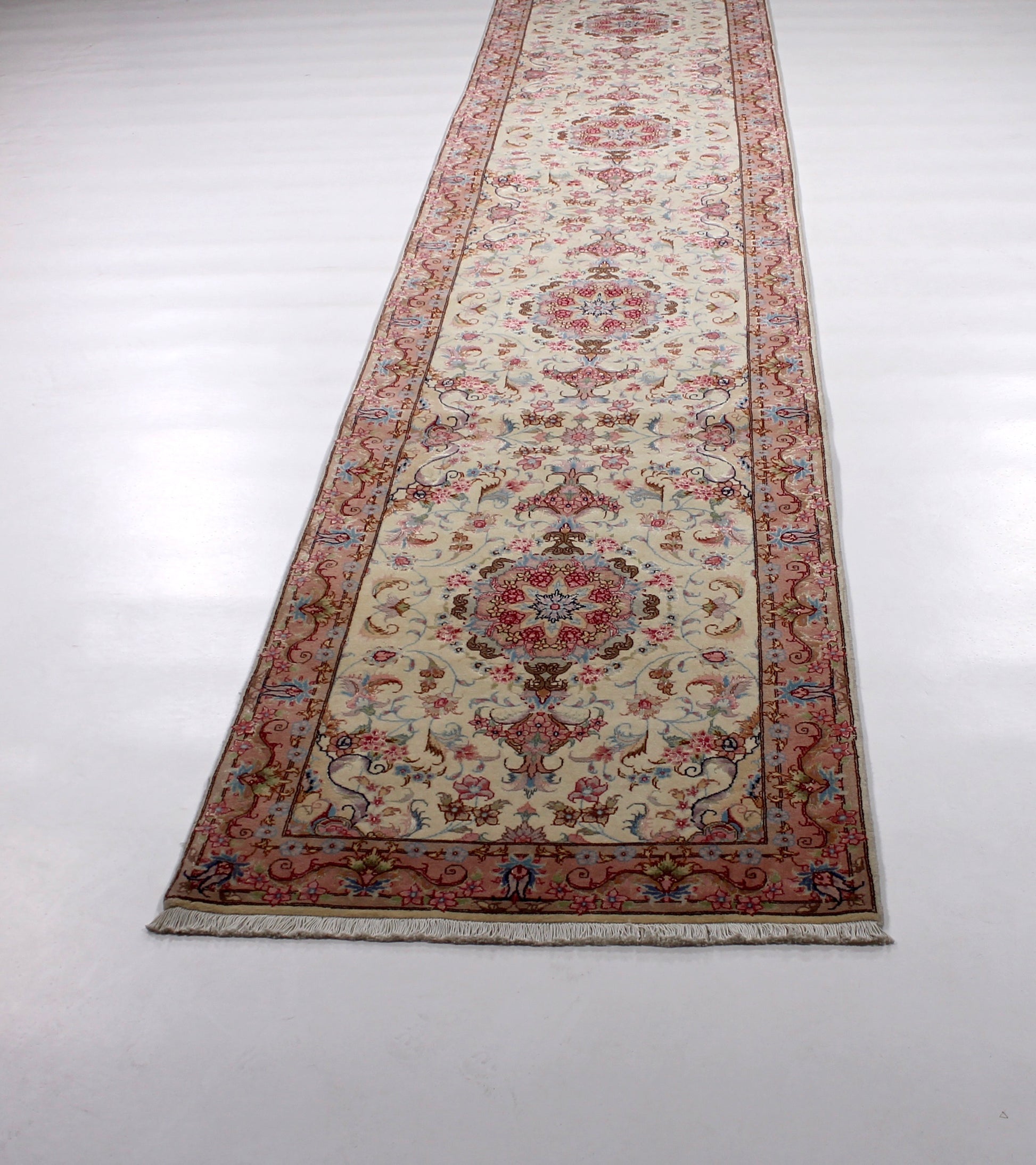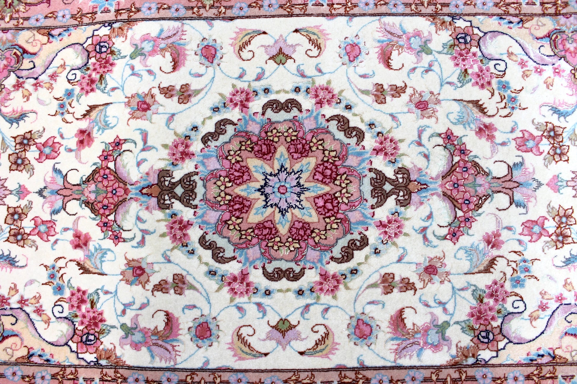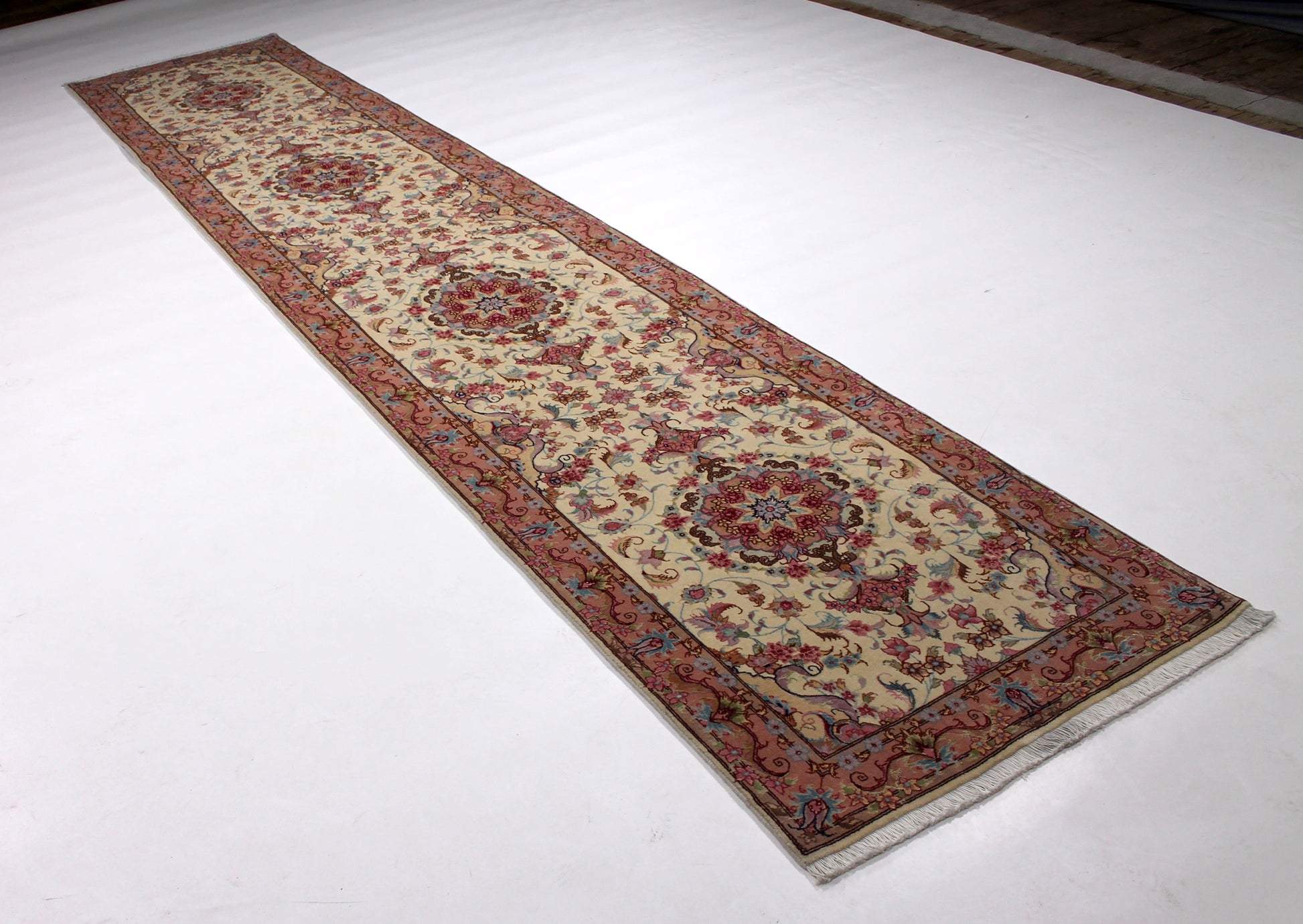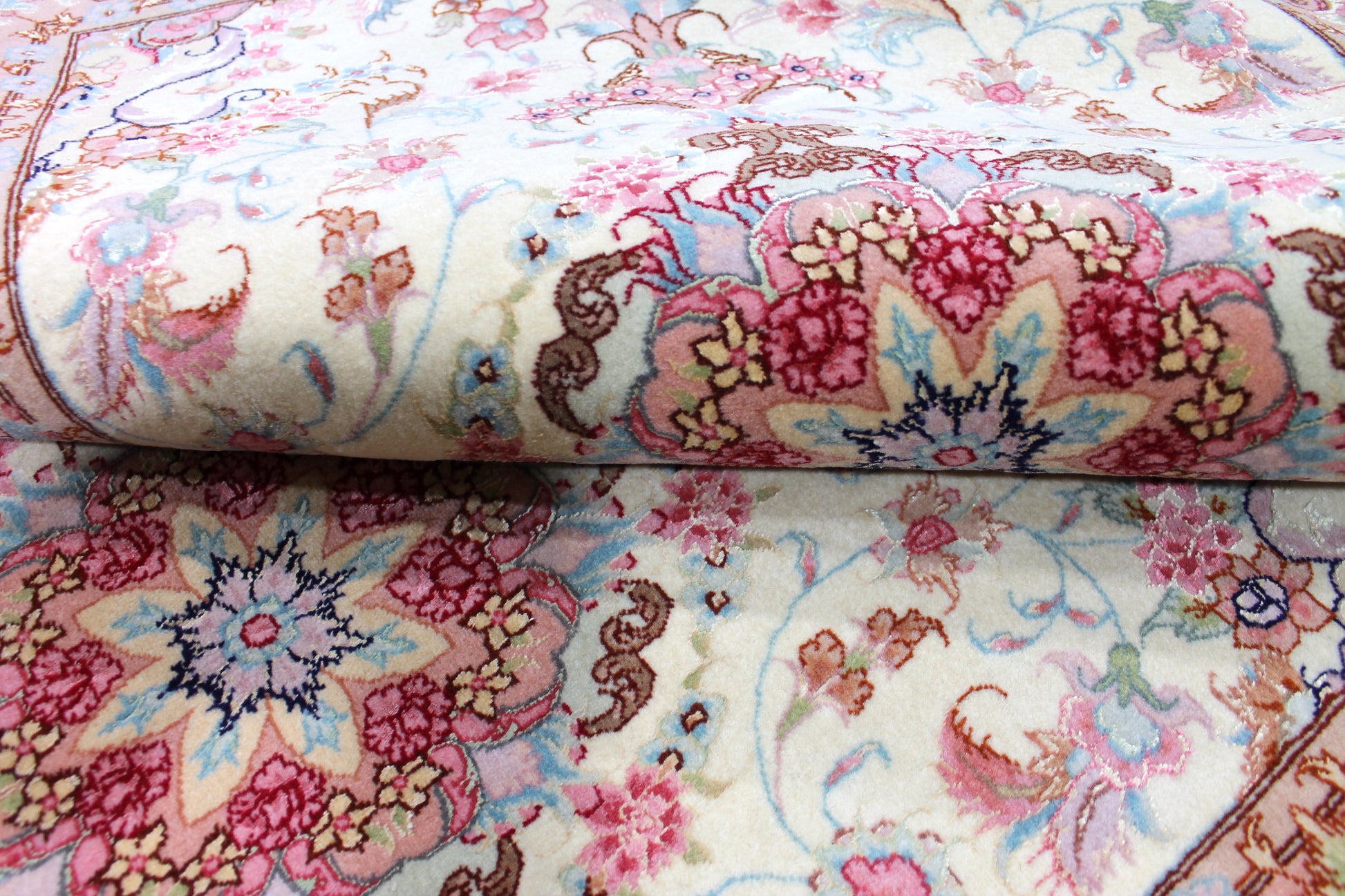 Die Helligkeit der Farben des Teppichs ist abhängig vom Blickwinkel.