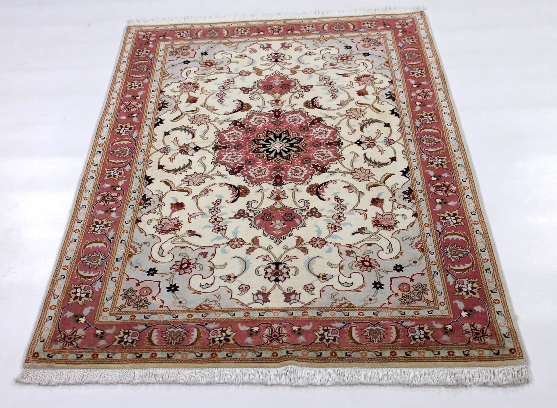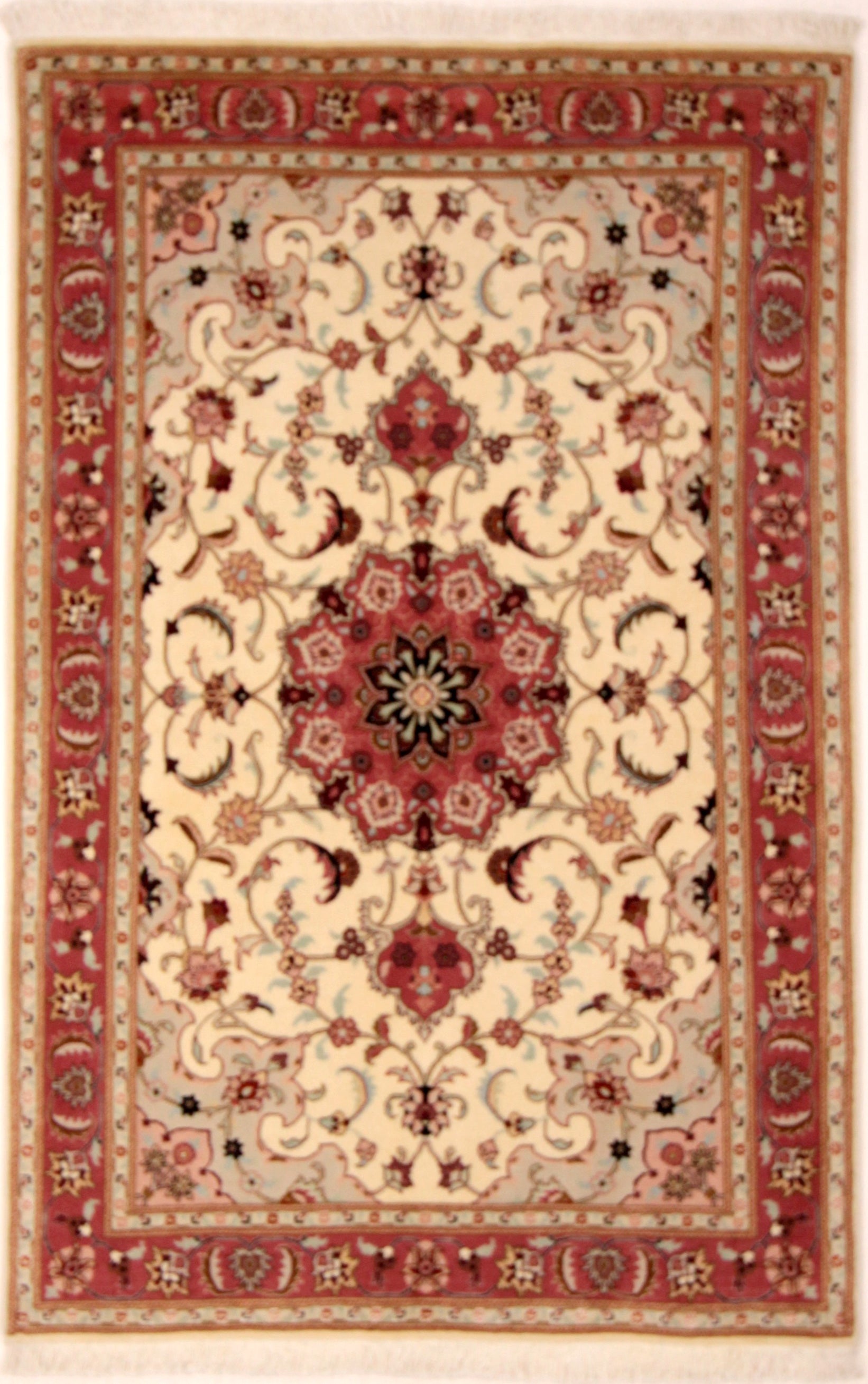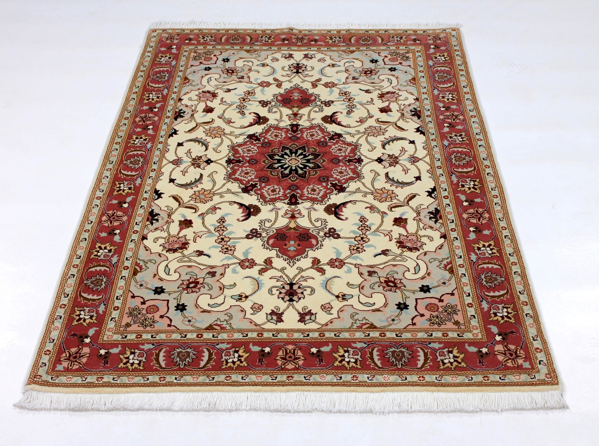 Dieser Perserteppich aus Täbriz wurde aus hochwertiger Schafwolle von Hand geknüpft. Sie ist das am häufigsten verwendete Material in der Teppichknüpfkunst und bringt eine Reihe beeindruckender Eigenschaften mit sich: